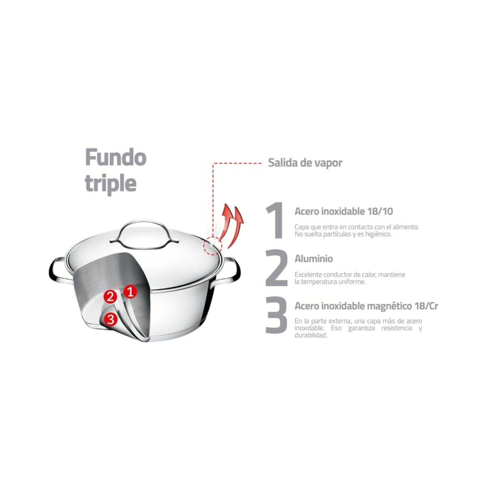 Fondo difusor triple: Distribuye el calor de forma homogénea, mejorando el rendimiento energético y evitando puntos calientes.