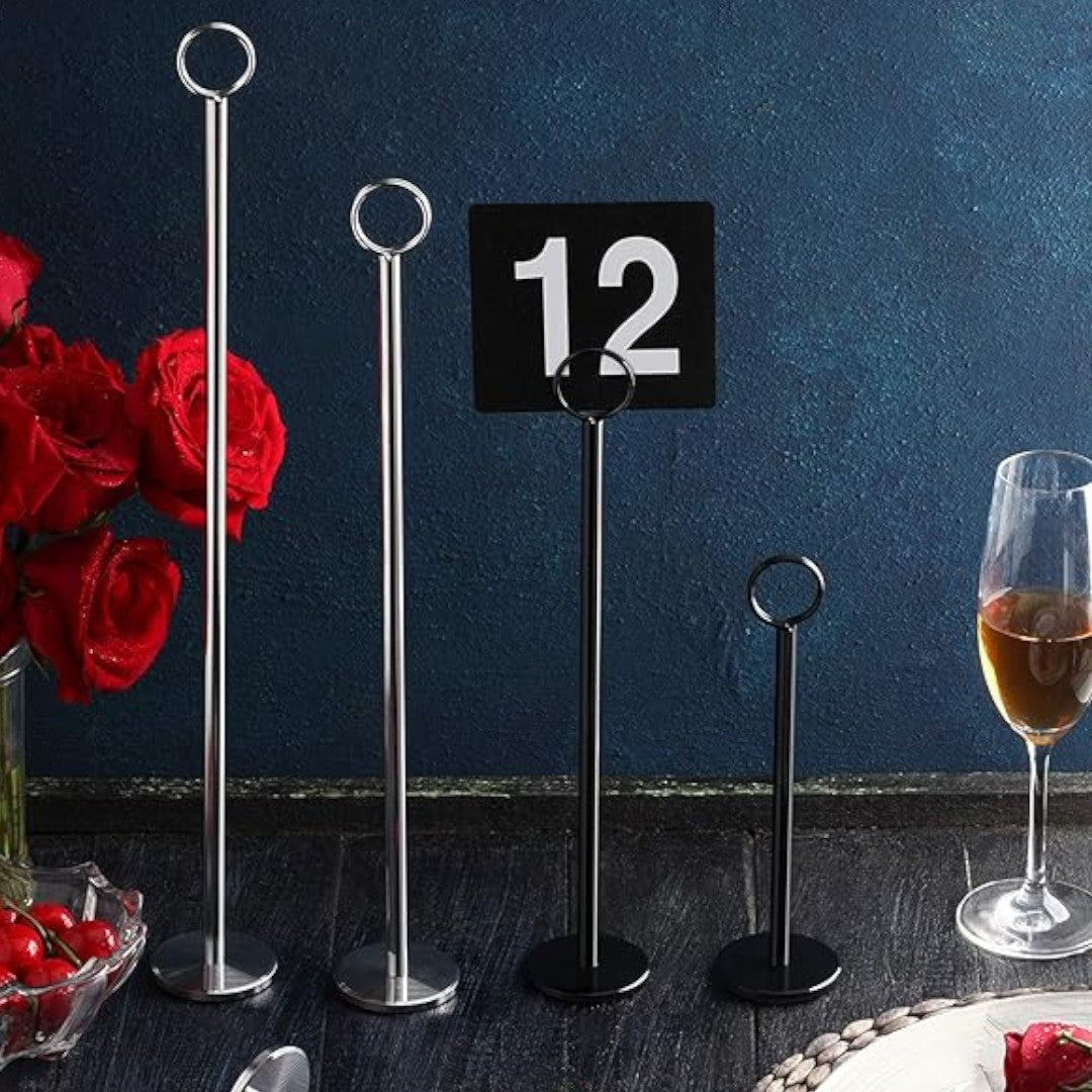 Con nuestras bases cromadas, puede realzar la presentación de sus números de mesa y hacer que destaquen en cualquier ambiente de su restaurante. Ya sea que esté organizando una cena formal, un evento corporativo o simplemente deseando añadir un toque de clase a su restaurante, nuestras bases cromadas para números de mesa son la opción ideal.