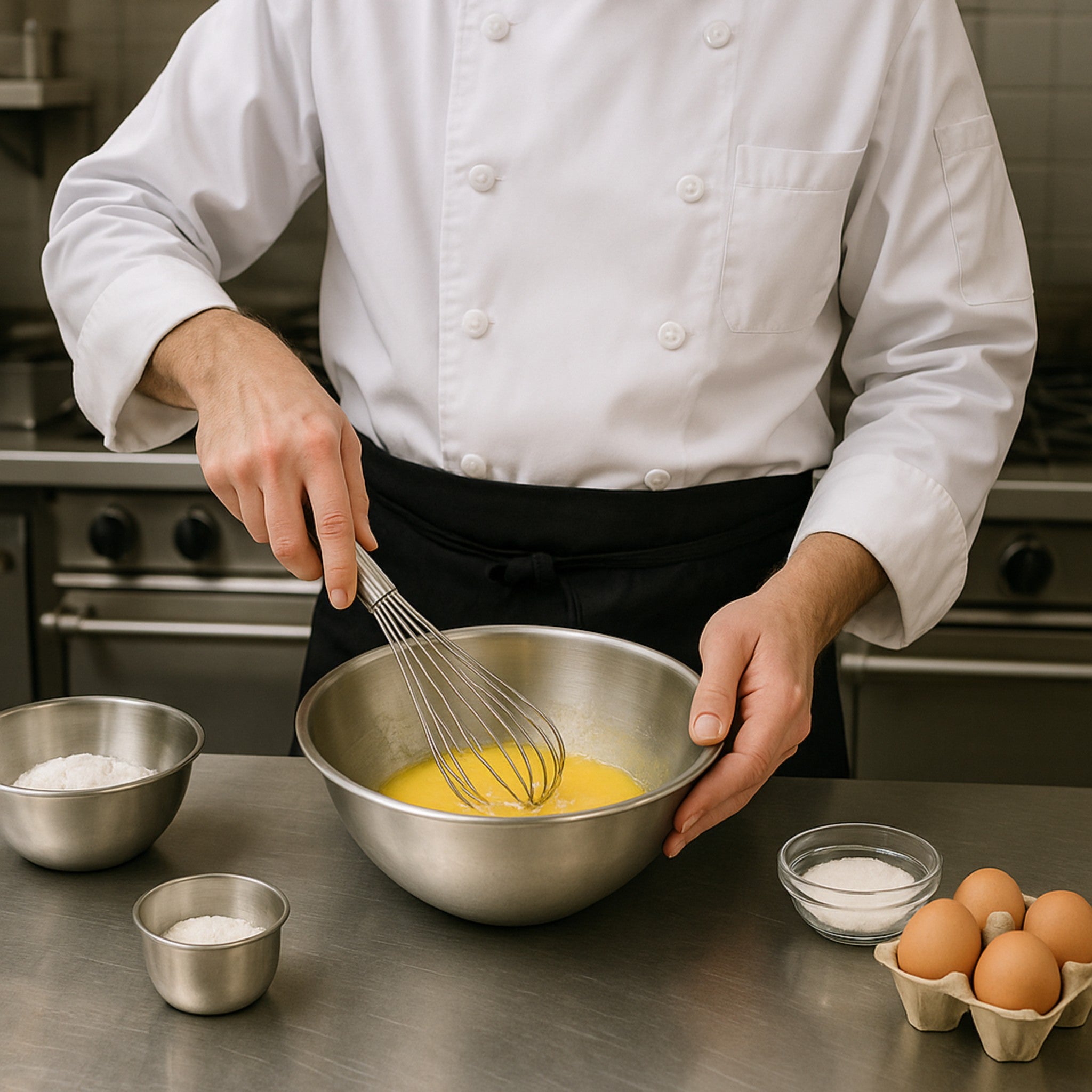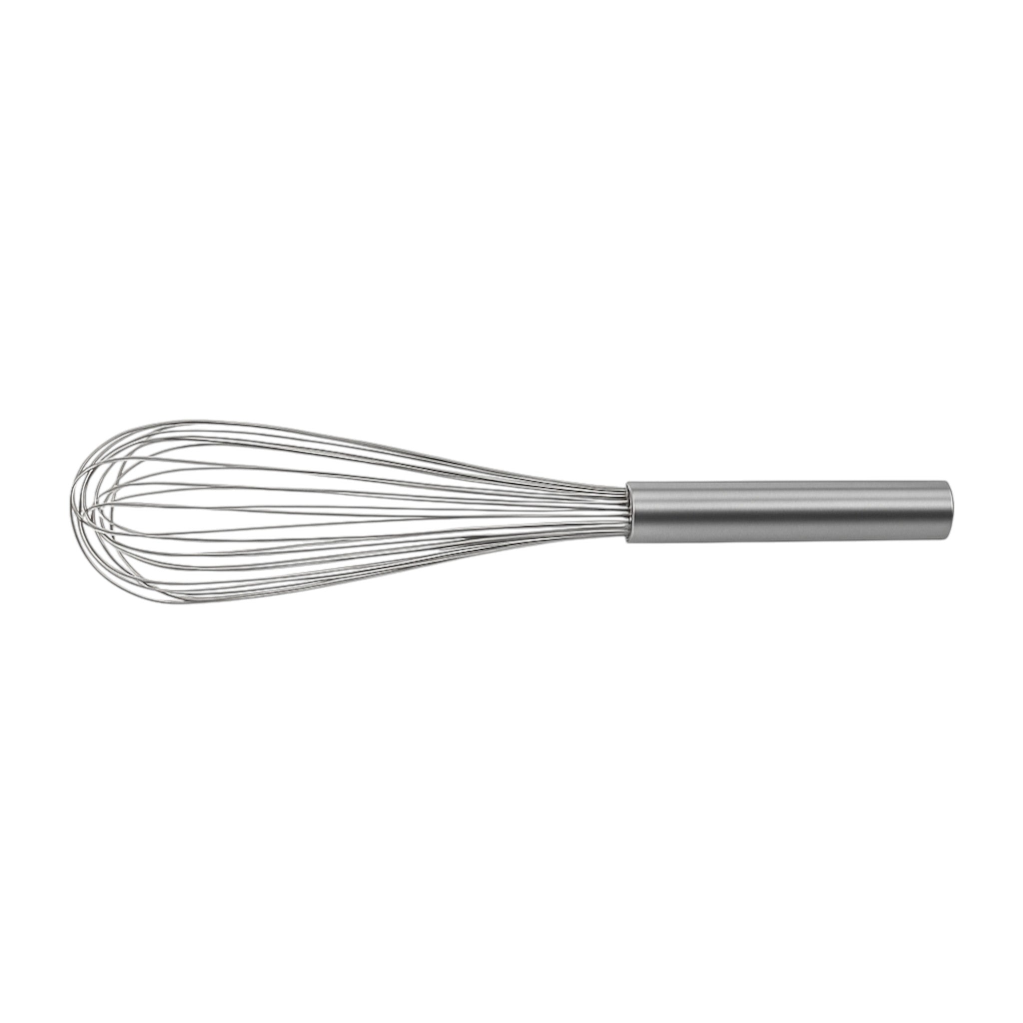 Batidor de acero inoxidable de 14 pulgadas diseñado para uso profesional en cocina y repostería. Su estructura tipo piano facilita incorporar aire en mezclas ligeras, logrando texturas suaves y homogéneas. Ideal para batir salsas, cremas, huevos o masas con precisión y comodidad.