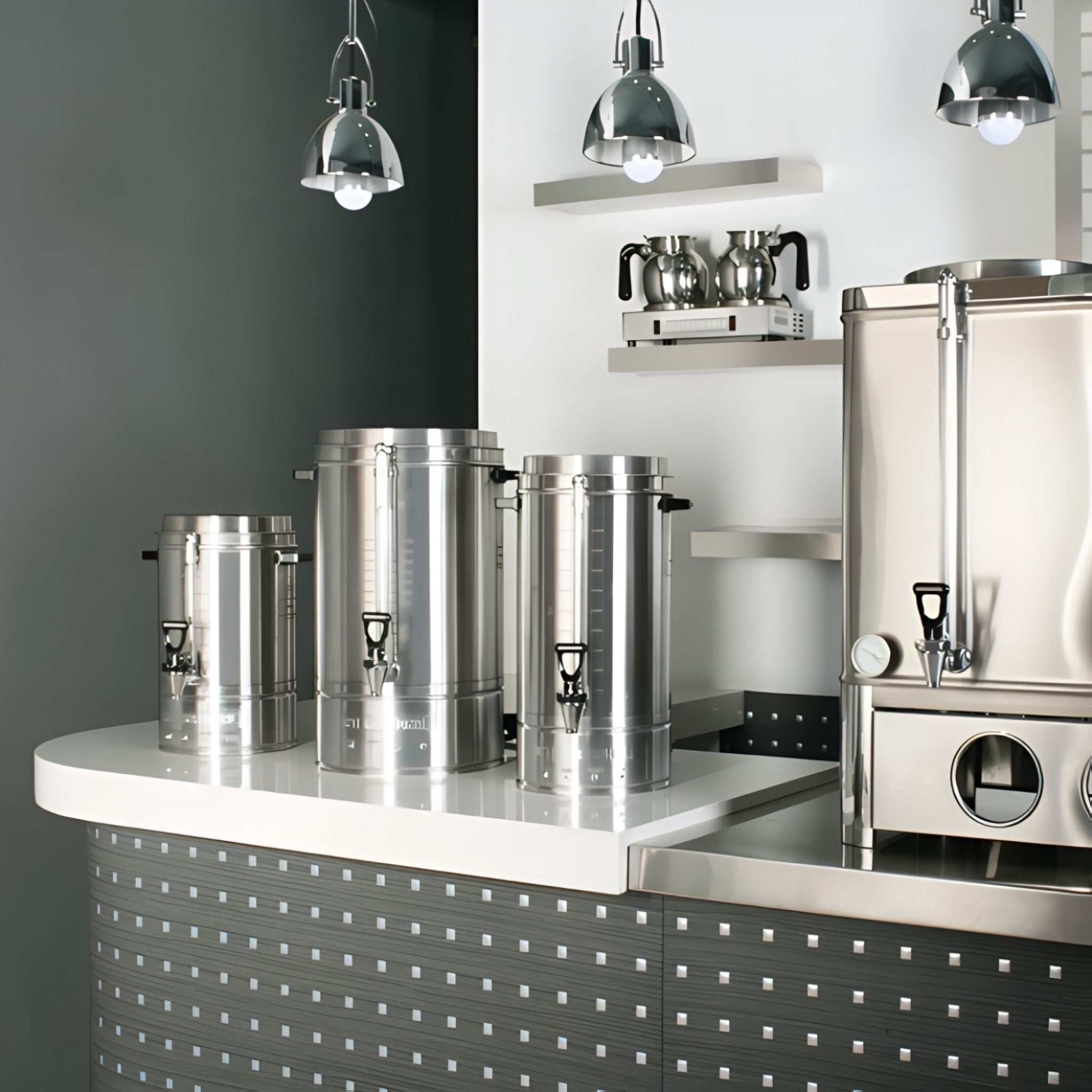 Cafetera de alto rendimiento, fabricada en México con materiales de calidad y un diseño robusto para un uso continuo. Ideal para oficinas, eventos y restaurantes, garantiza una preparación eficiente y un mantenimiento óptimo de la temperatura del café.