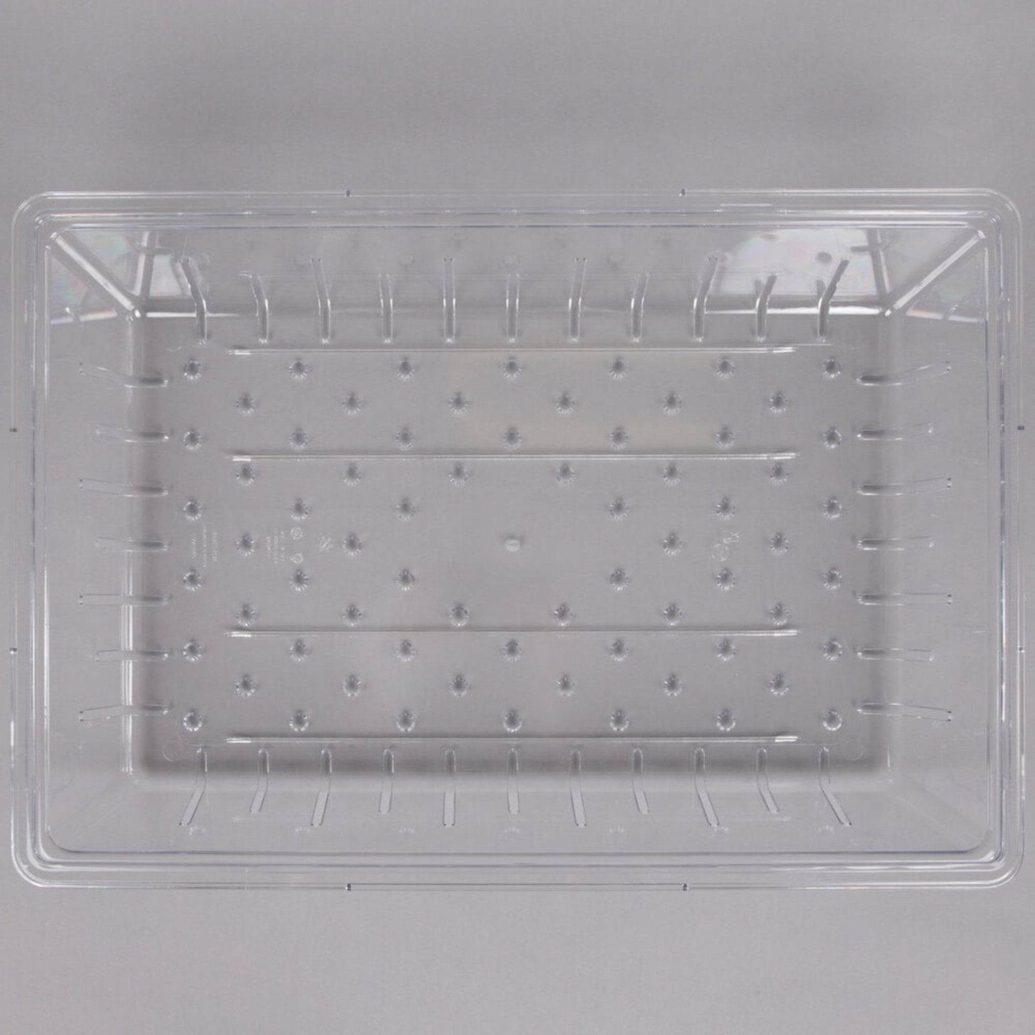 Mantén la ventilación ideal de frutas, verduras o productos húmedos con la Caja Calada 18x26" Cambro. Su diseño con perforaciones facilita el drenaje y la circulación de aire, ayudando a prolongar la frescura de los alimentos almacenados.