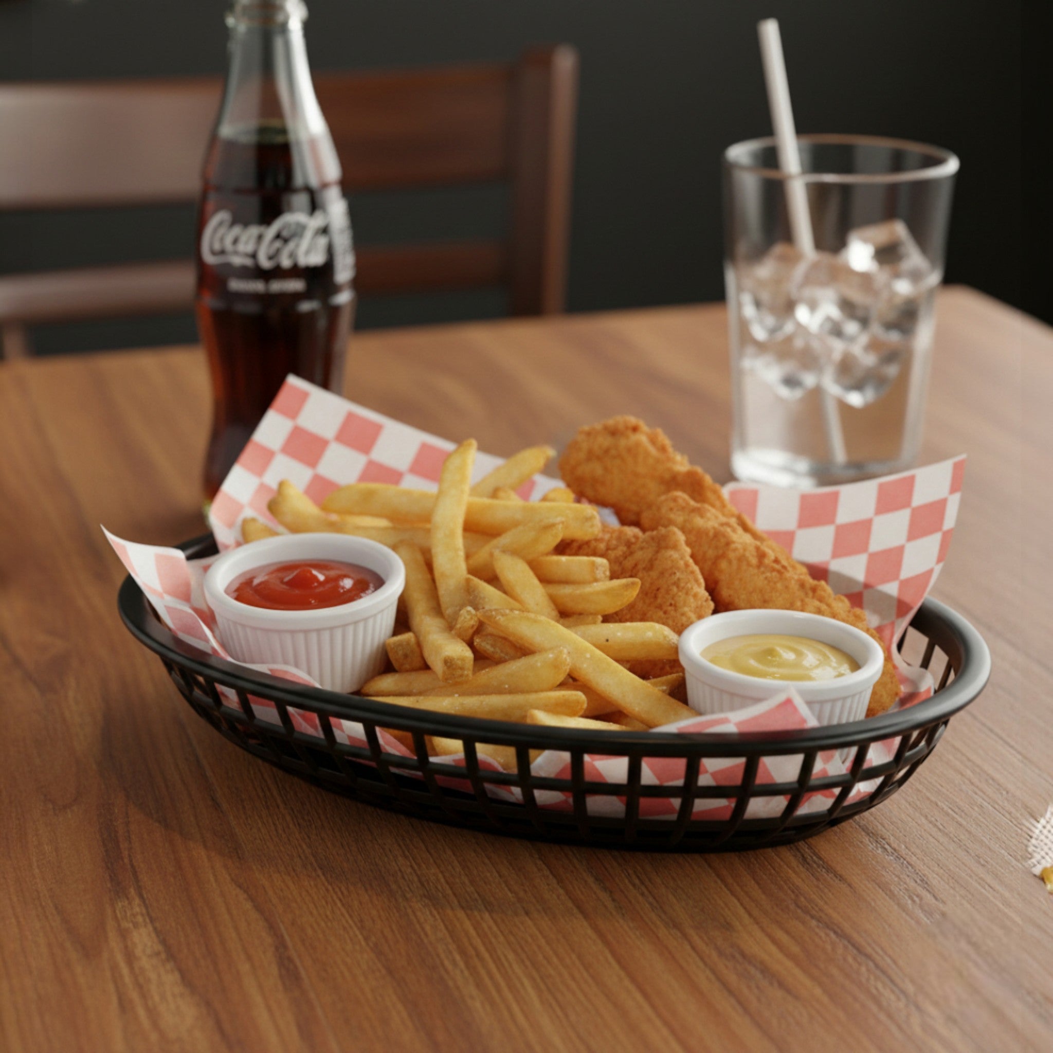 Fabricada en plástico resistente para servicio intensivo, esta canasta oval es ideal para presentar hamburguesas, hot dogs, alitas u óptimos acompañamientos en restaurantes y food trucks. Su diseño ligero y práctico permite un montaje rápido y una operación eficiente en cualquier estación de trabajo.