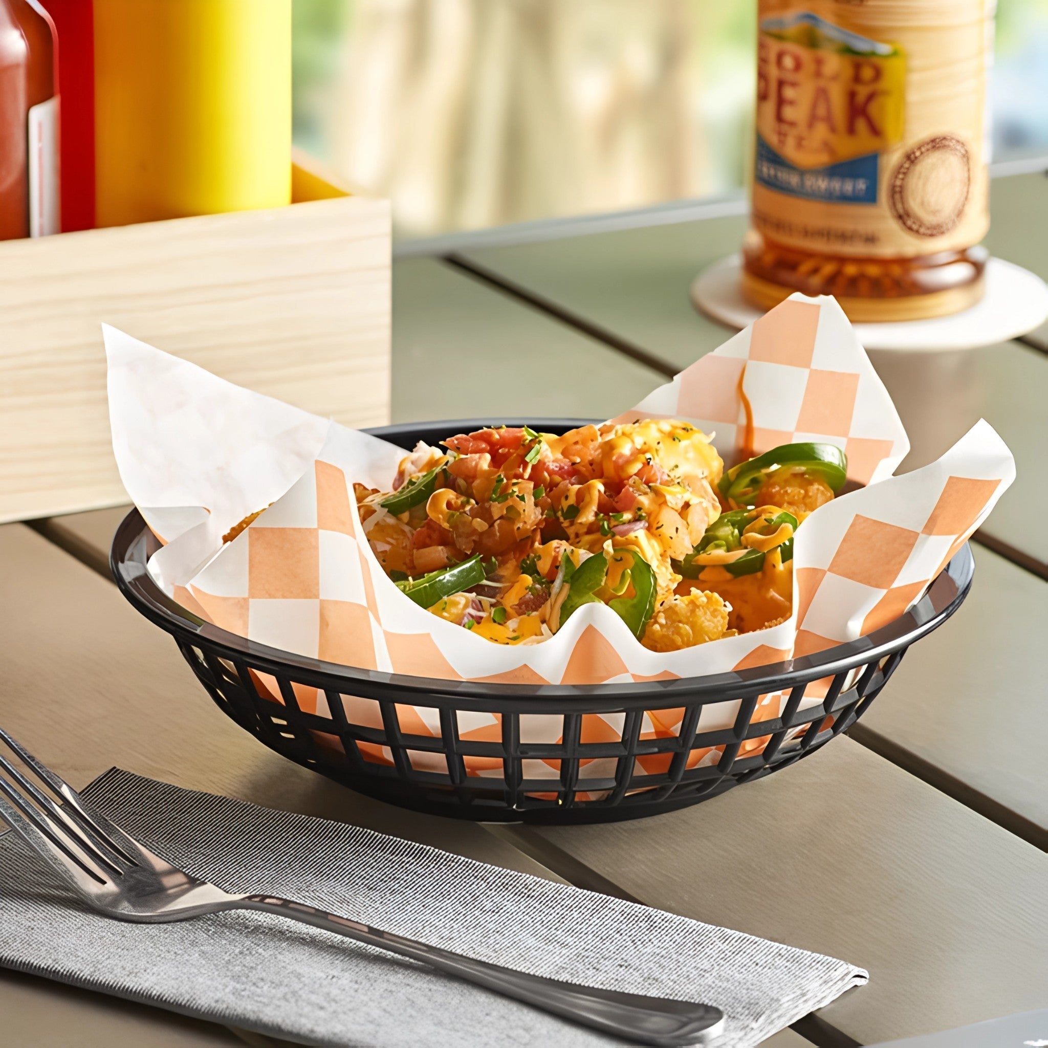 Canastilla redonda de 8.0" ideal para servir alimentos en mesa de manera práctica y vistosa. Su diseño resistente la hace perfecta para restaurantes, cafeterías o servicio casual, aportando un toque dinámico a la presentación.