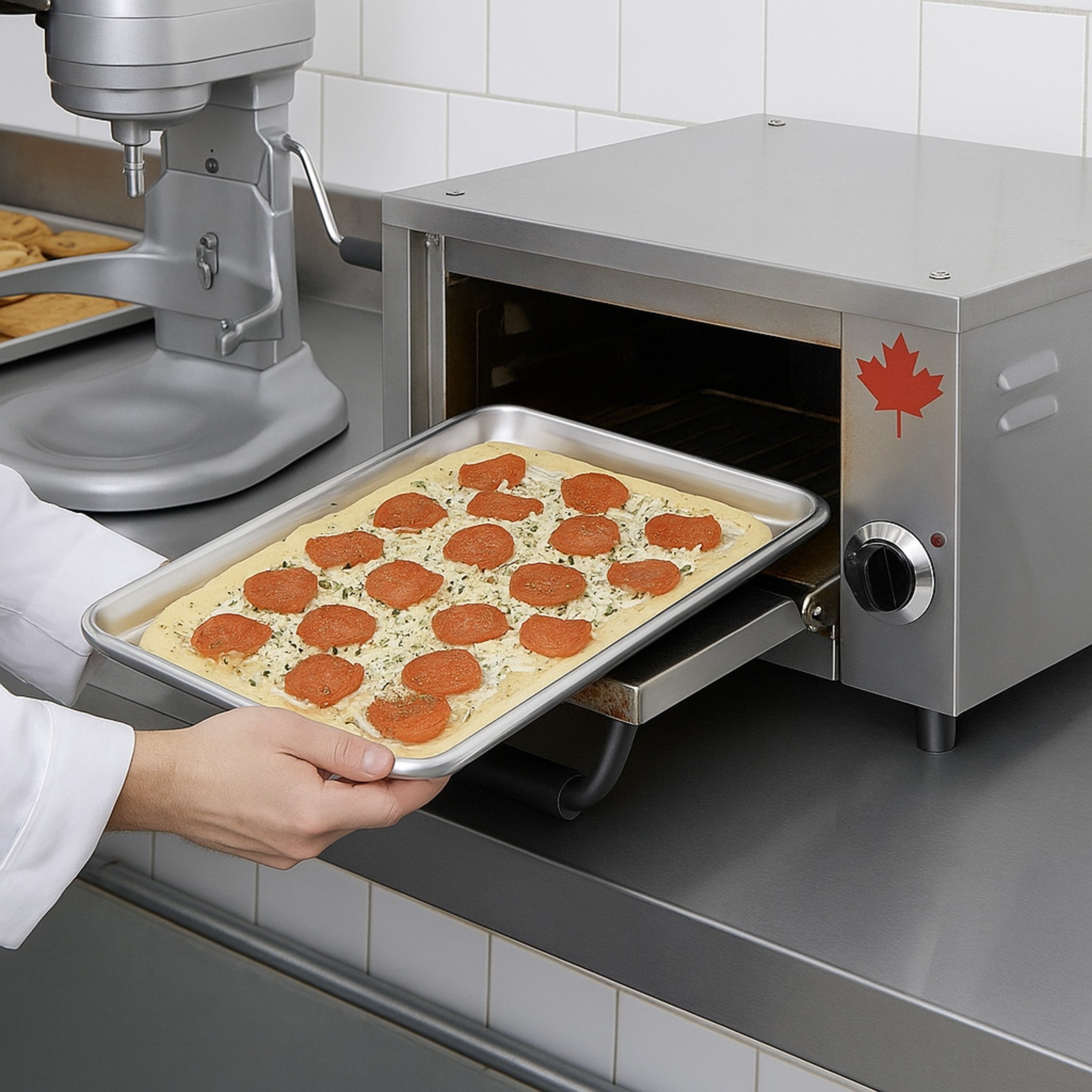 La charola de aluminio 13 x 09" es resistente y ligera, ideal para uso en cocinas profesionales, repostería y servicio de alimentos. Su material facilita la conducción del calor y asegura un rendimiento confiable en cada uso.