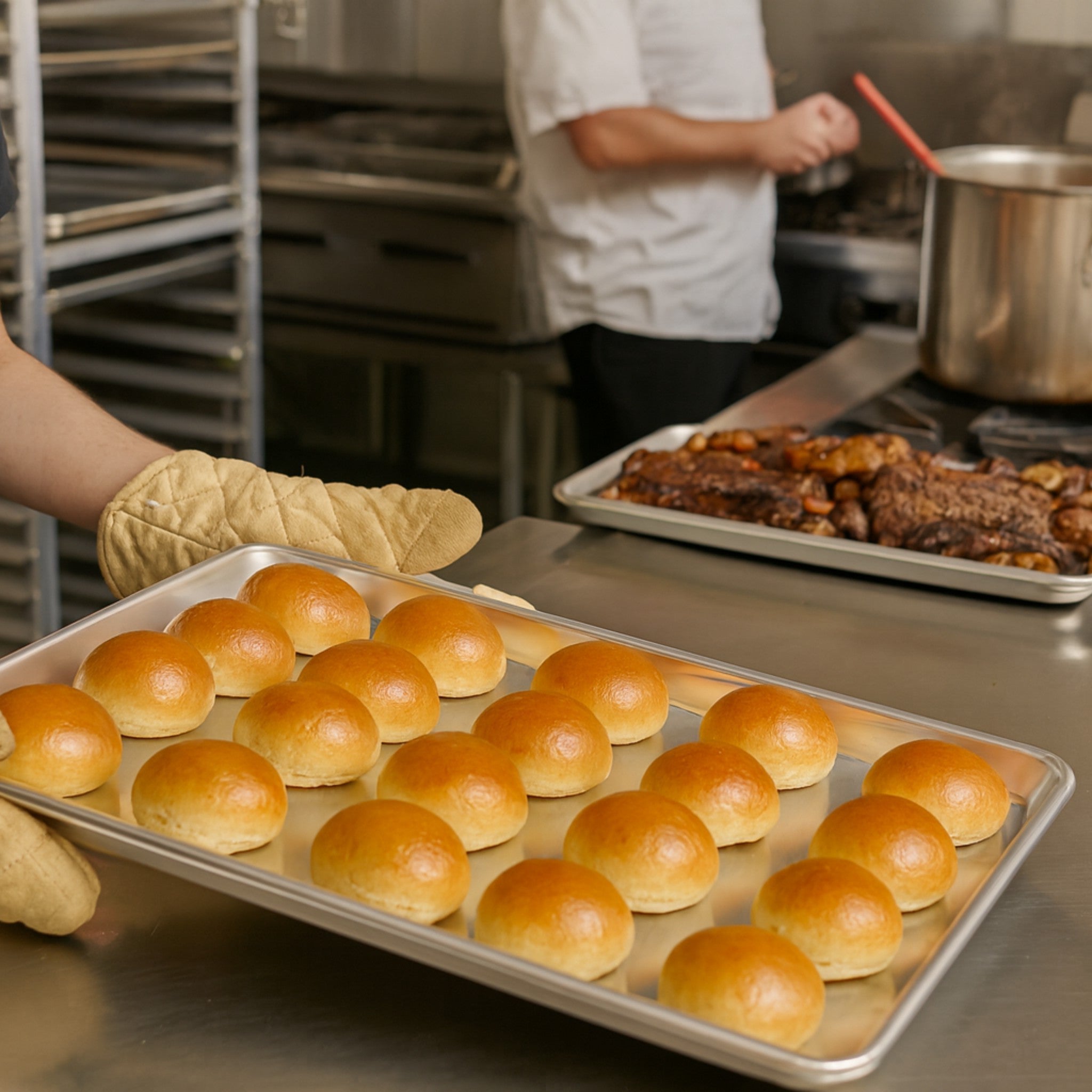 Resistente y práctica, esta charola de aluminio es ideal para hornear, asar o preparar alimentos en restaurantes, panaderías y cocinas profesionales. Su tamaño de 13 x 18" la convierte en una opción versátil para un uso intensivo.
