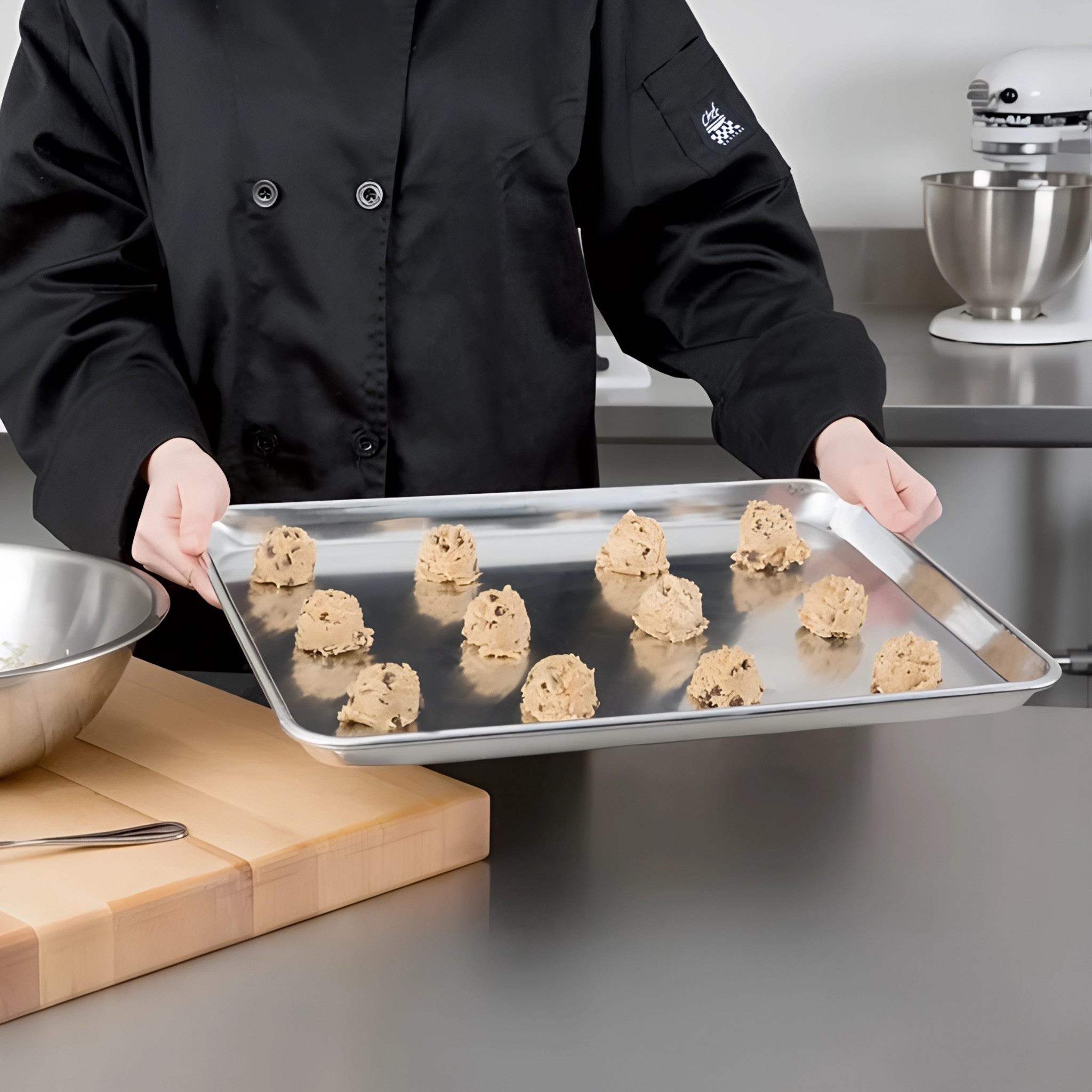 Funcional y duradera, esta charola de aluminio es ideal para hornear, asar o preparar alimentos en cocinas profesionales y panaderías. Su tamaño de 15 x 21" ofrece un área amplia para un uso intensivo y versátil.