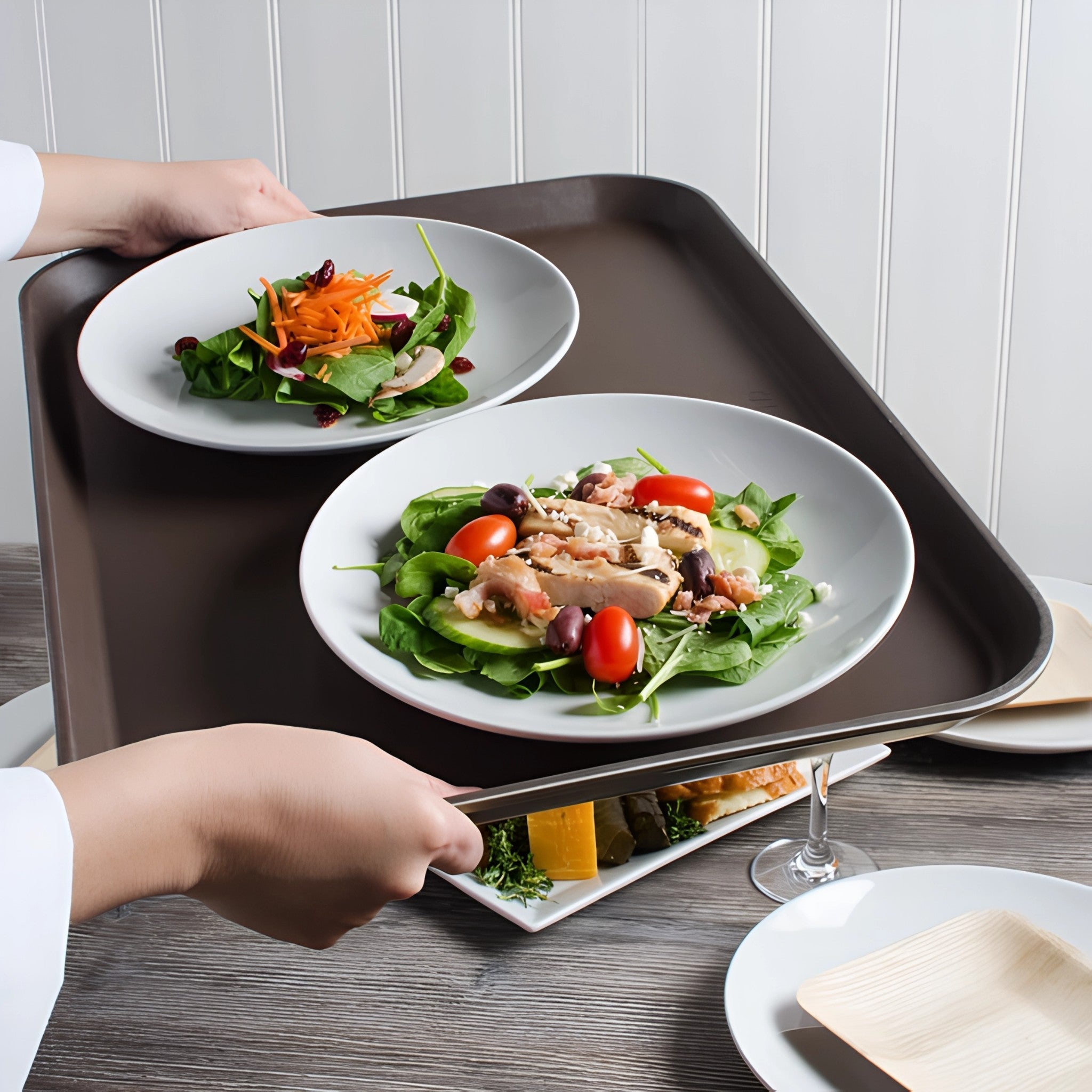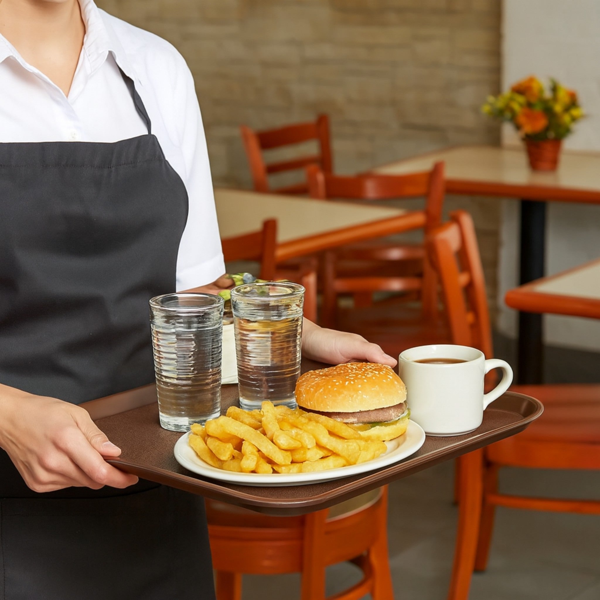 Funcional y resistente, esta charola rectangular es perfecta para el servicio profesional en restaurantes, hoteles y cafeterías. Su diseño práctico y superficie antiderrapante garantizan un transporte seguro y eficiente de alimentos y bebidas. Ideal para un uso continuo en tu negocio.
