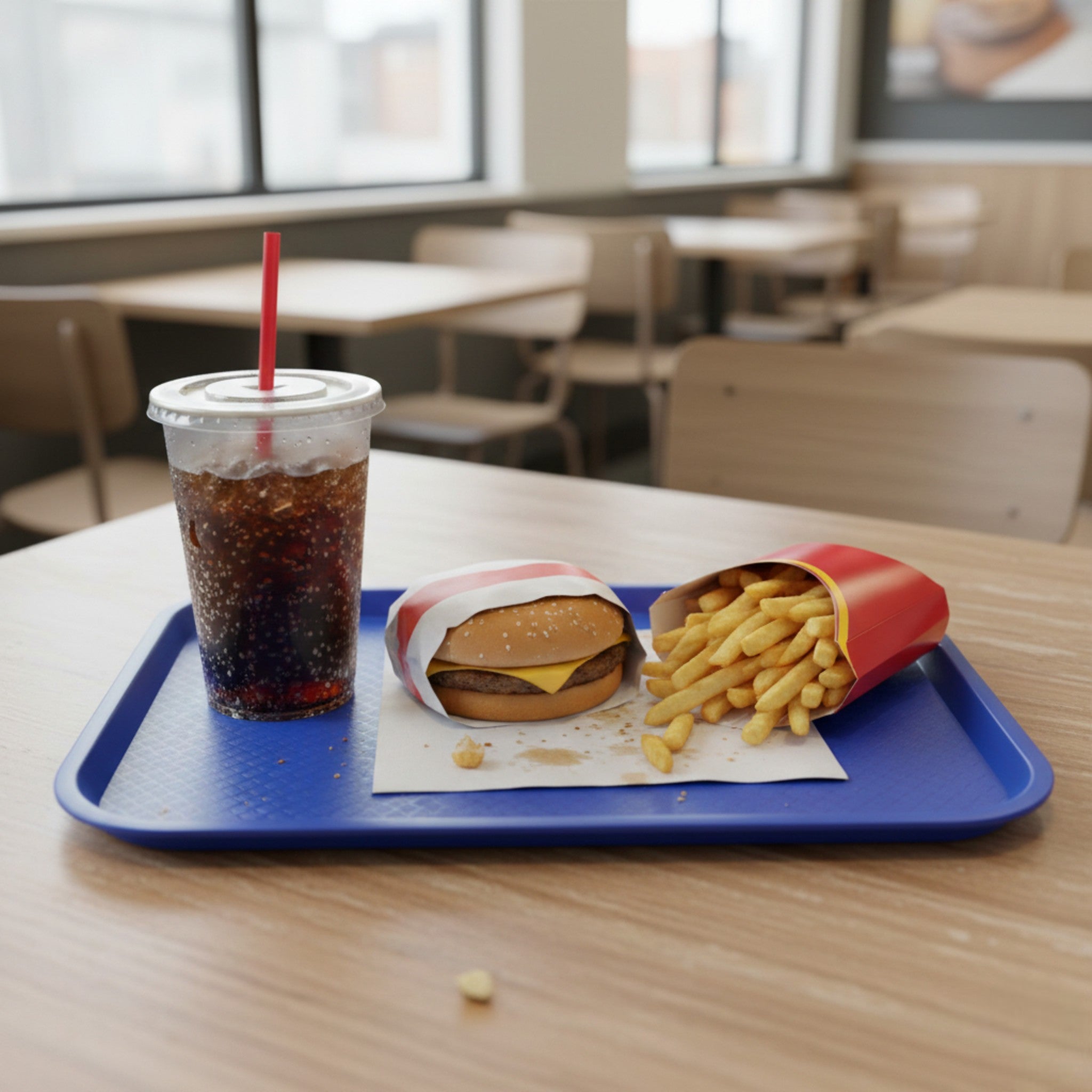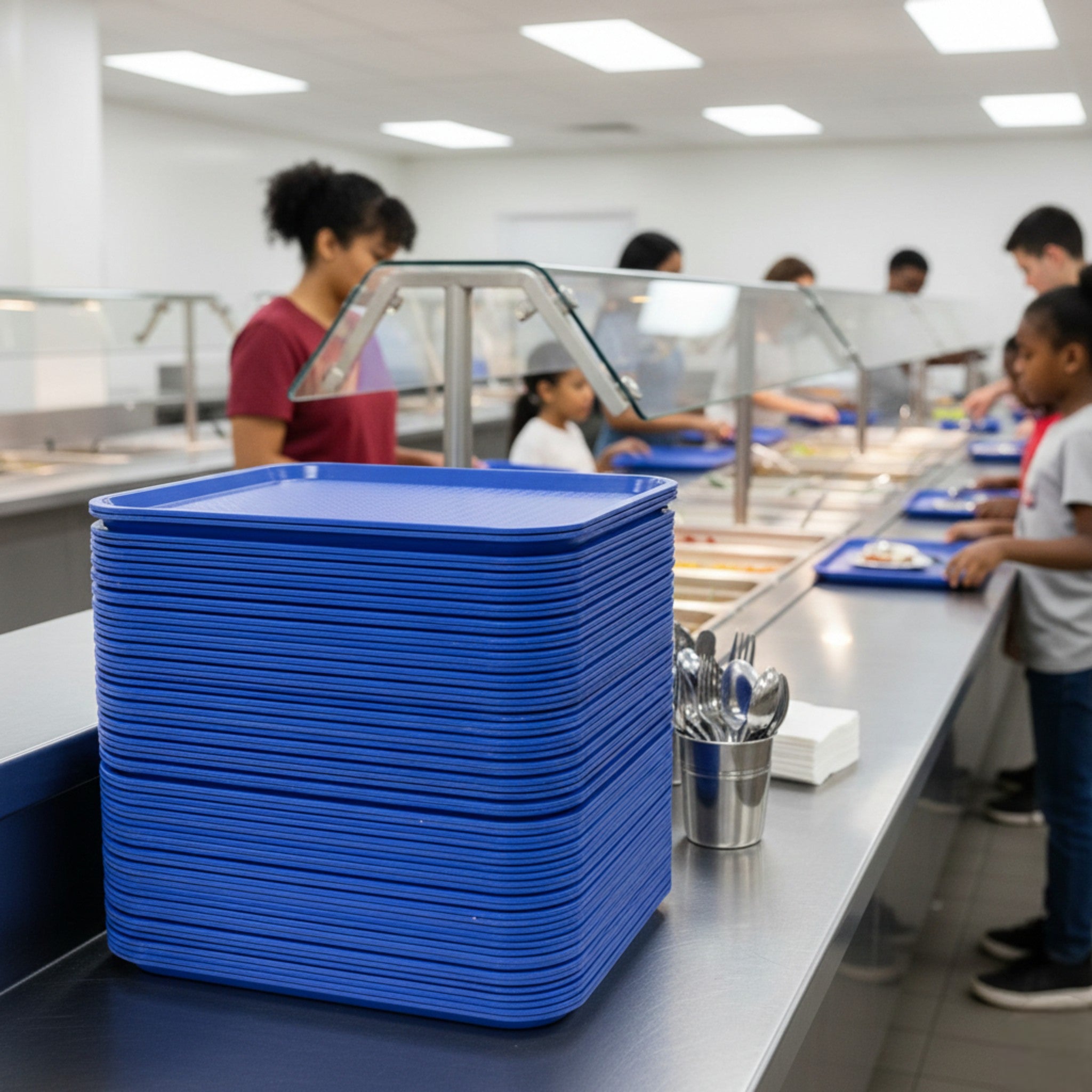 Charola de servicio fabricada en plástico de alto rendimiento, ideal para restaurantes, cafeterías y comedores con alto flujo de clientes. Diseñada para soportar uso continuo en entornos de autoservicio u barras rápidas, ofreciendo estabilidad y comodidad durante el transporte de alimentos.