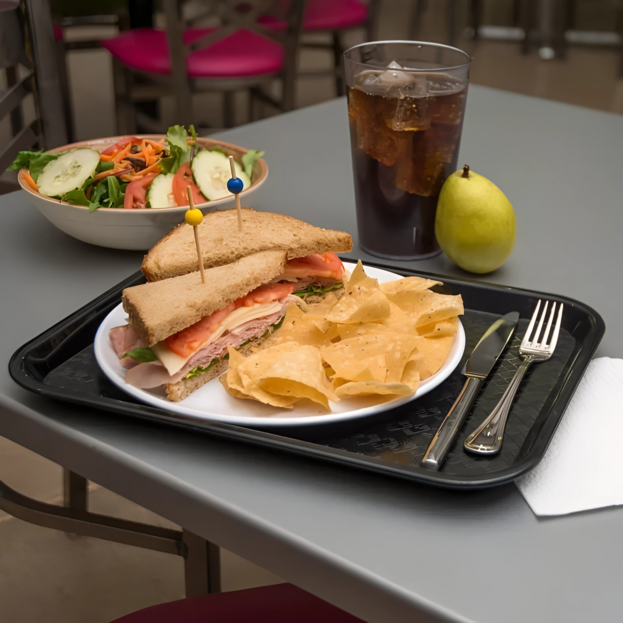 Una charola resistente y práctica, diseñada para el servicio rápido de alimentos en restaurantes, cafeterías y comedores. Su tamaño estándar 10x14" y color negro la hacen ideal para un uso versátil y profesional. Fabricada con materiales duraderos, es ligera, fácil de limpiar y apilable.