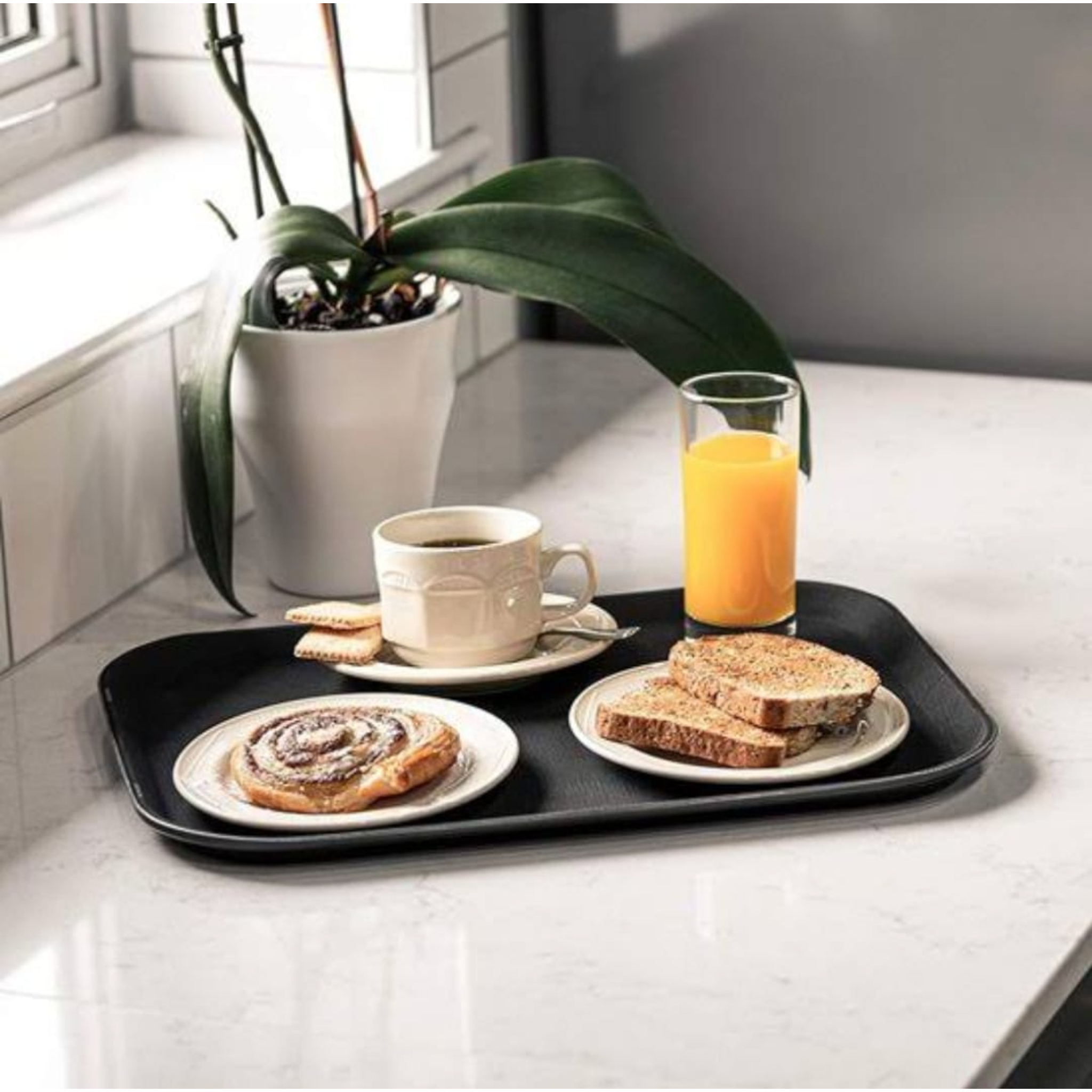 Nuestra charola está diseñada para brindar un aspecto elegante y funcionalidad en una sola pieza. Con dimensiones de 38x51 cm, esta charola rectangular es ideal para servir, transportar y presentar alimentos y bebidas de manera profesional y atractiva.
