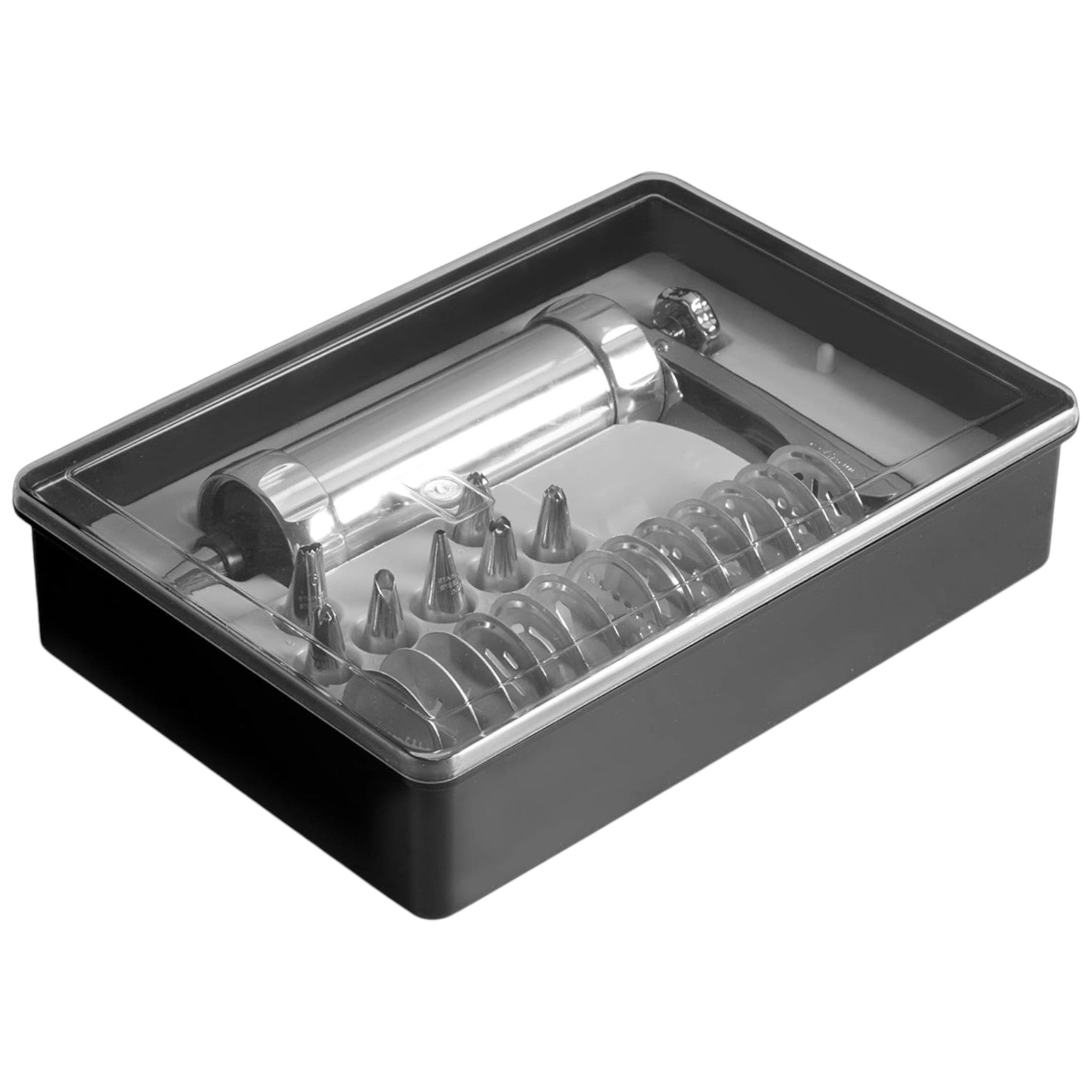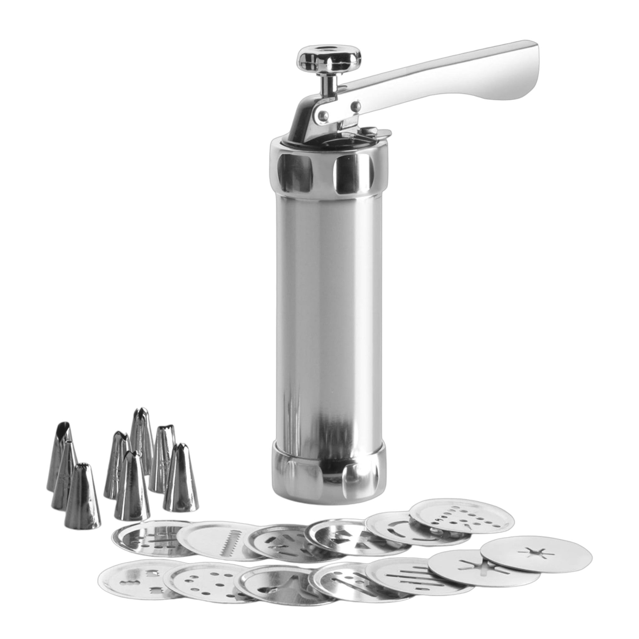 Variedad de accesorios: Incluye 13 discos y 8 boquillas intercambiables, permitiendo la creación de diferentes formas y tamaños de churros, galletas y decoraciones.