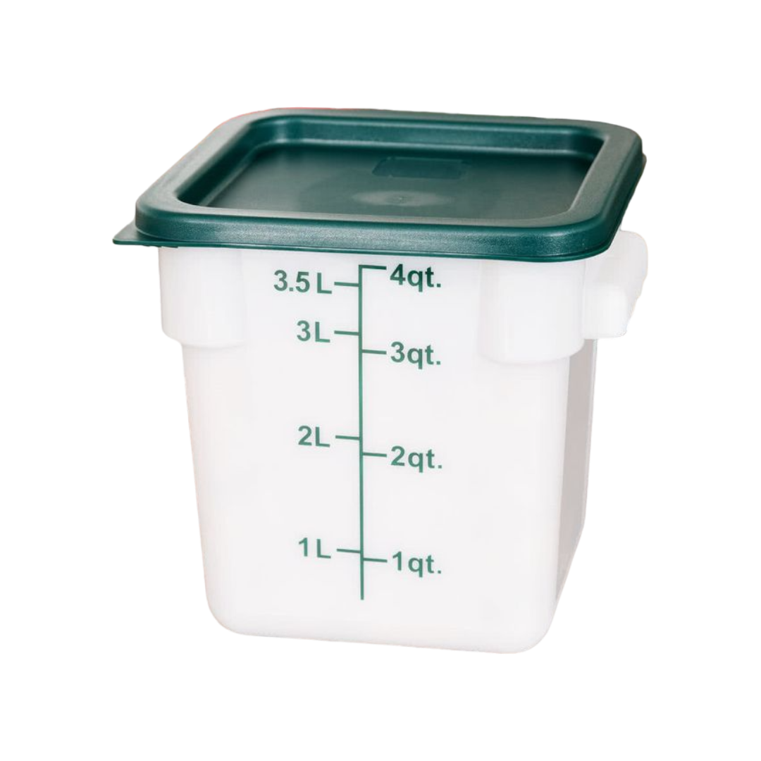 Con una capacidad de 4 cuartos de galón, este contenedor ofrece suficiente espacio para almacenar tus ingredientes esenciales sin ocupar demasiado espacio en tu cocina. Su forma cuadrada maximiza el espacio de almacenamiento en estanterías y mostradores, facilitando la organización y el acceso rápido a tus ingredientes.