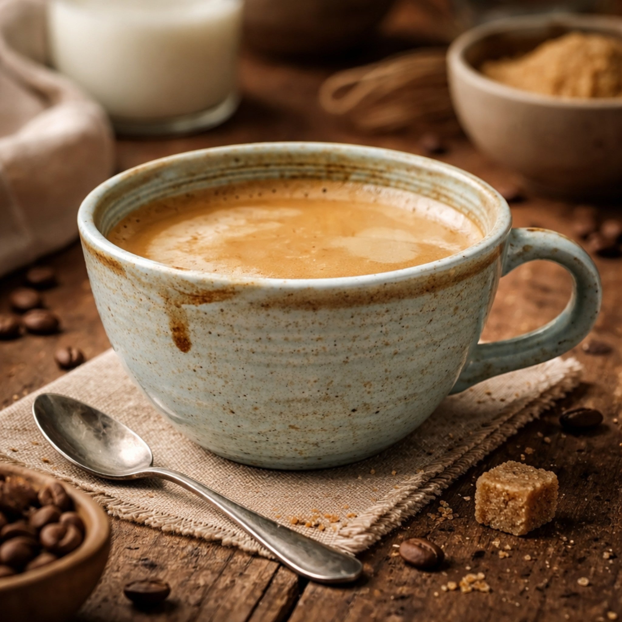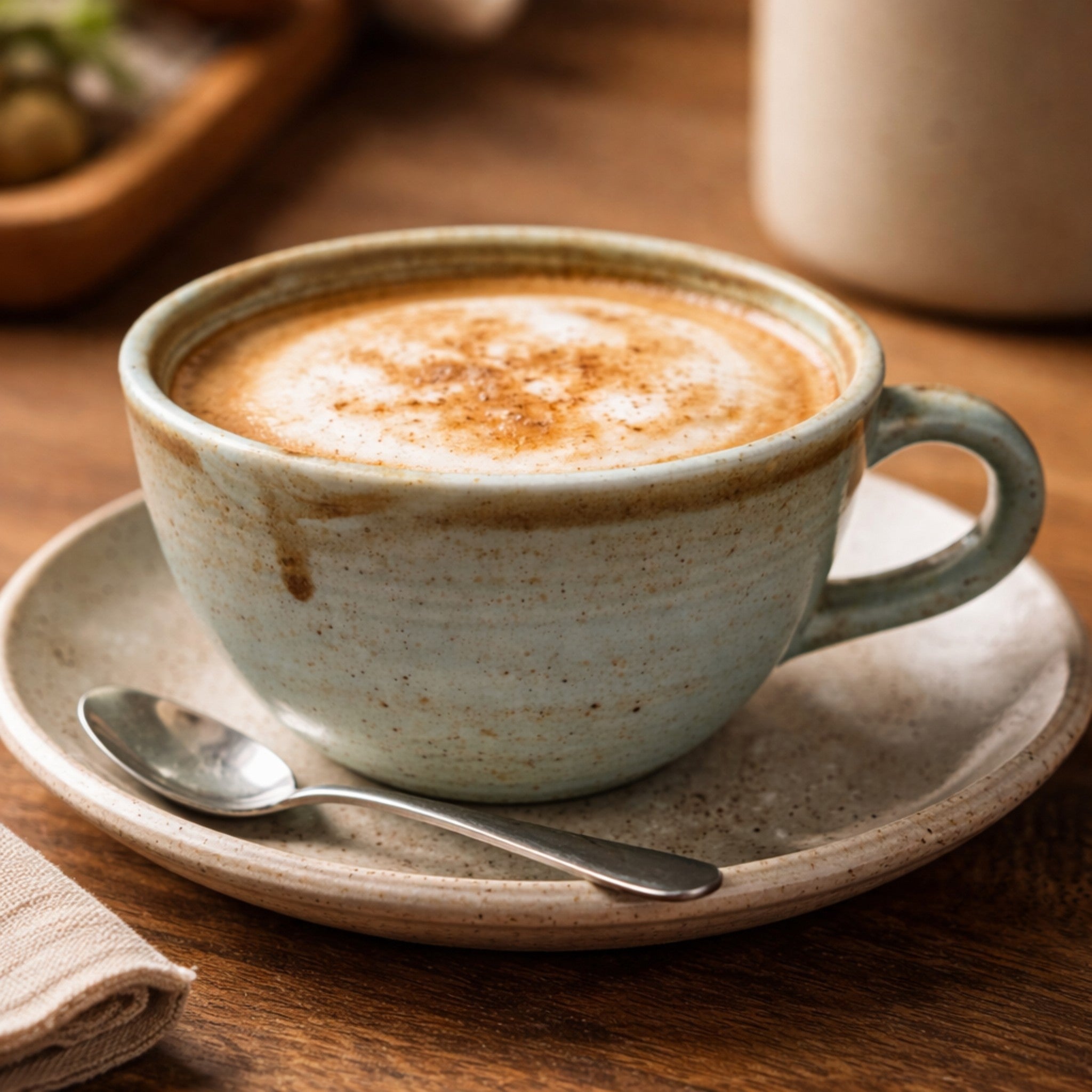 Taza de 250 ml fabricada en cerámica vitrificada, con el característico acabado moteado y tonalidad verde agua de la línea Coral. Diseñada para servicio profesional, mantiene una estética rústica controlada que aporta calidez visual sin perder funcionalidad en mesa o barra.