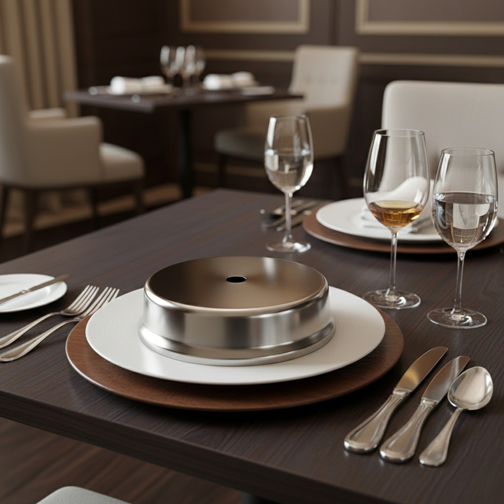 Diseñado para el servicio profesional, este cubre plato Möven protege los alimentos durante el traslado y la espera en mesa. Fabricado en acero inoxidable, ofrece resistencia, higiene y una presentación limpia en entornos de alta rotación como restaurantes u hoteles.