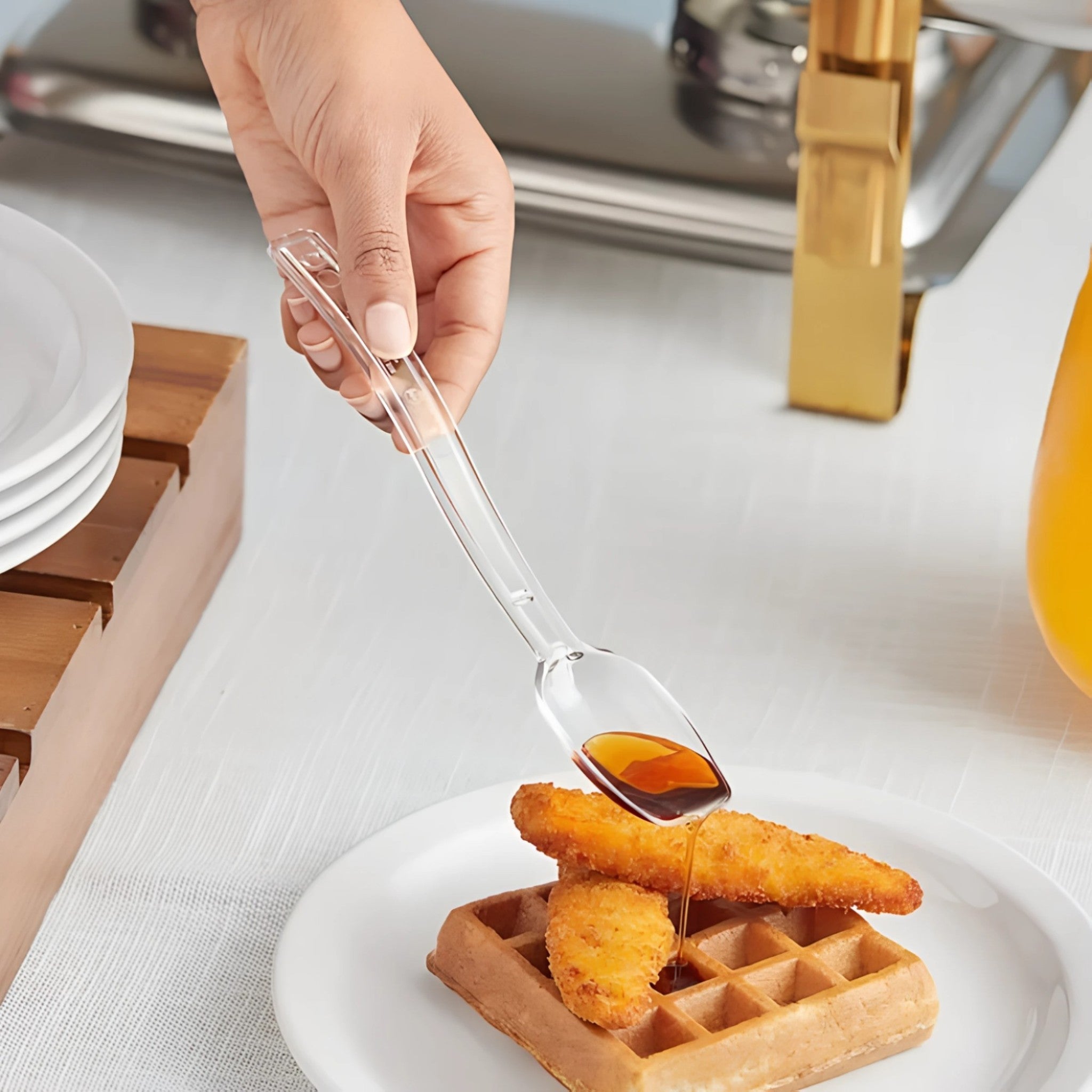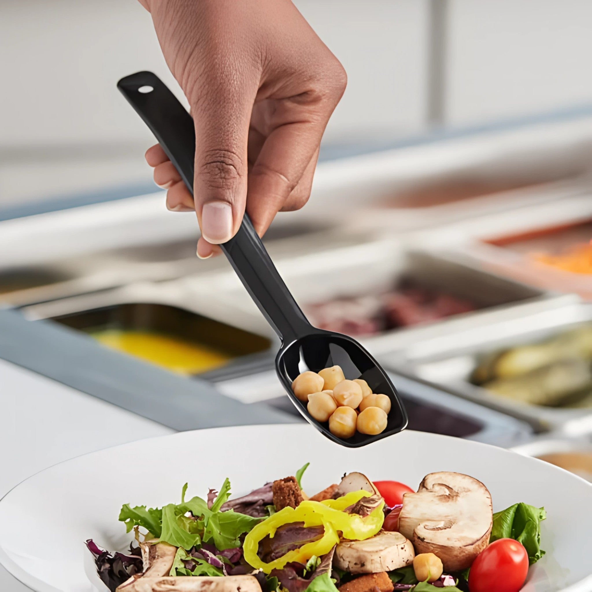 Práctica cuchara de policarbonato ideal para servicios de buffet o autoservicio.
