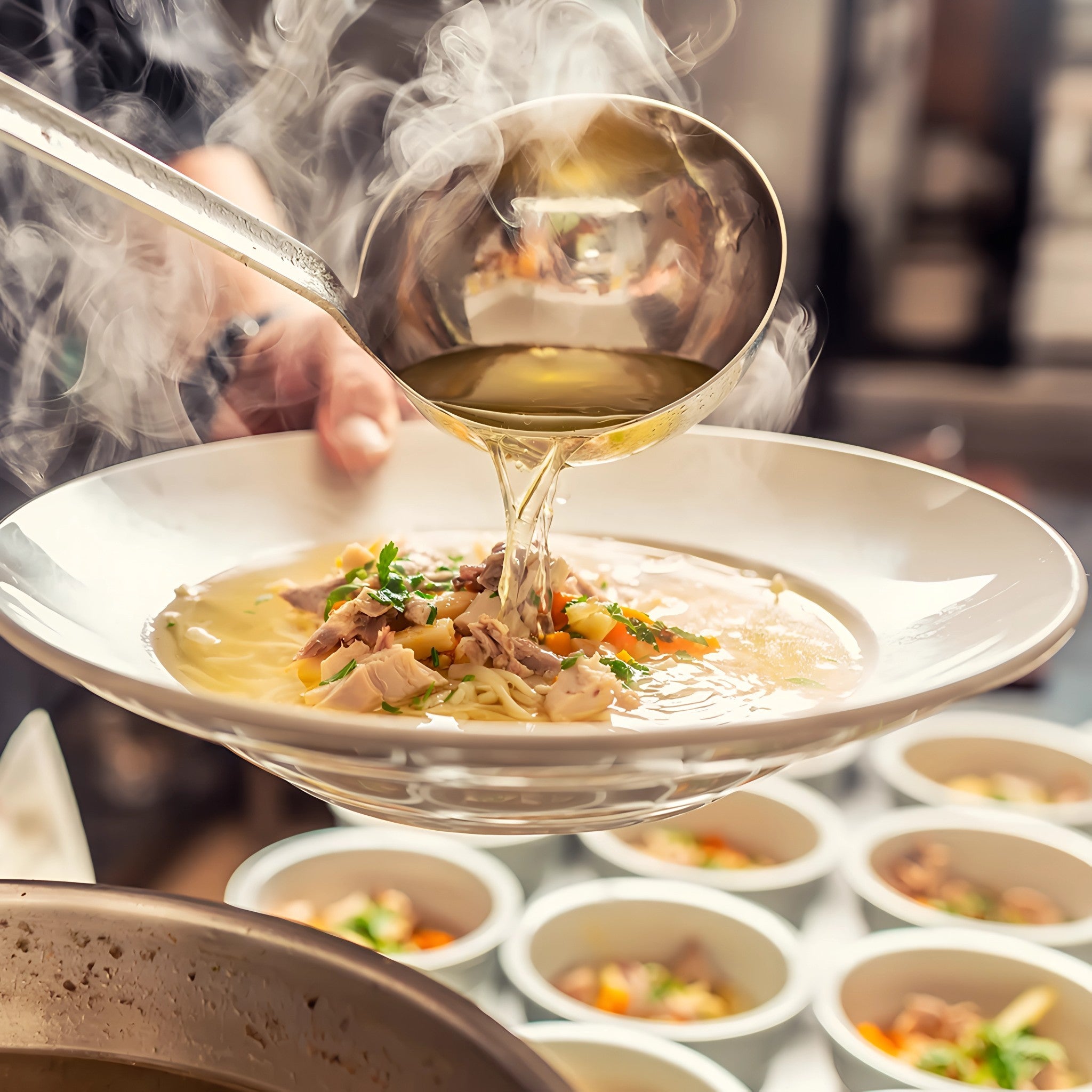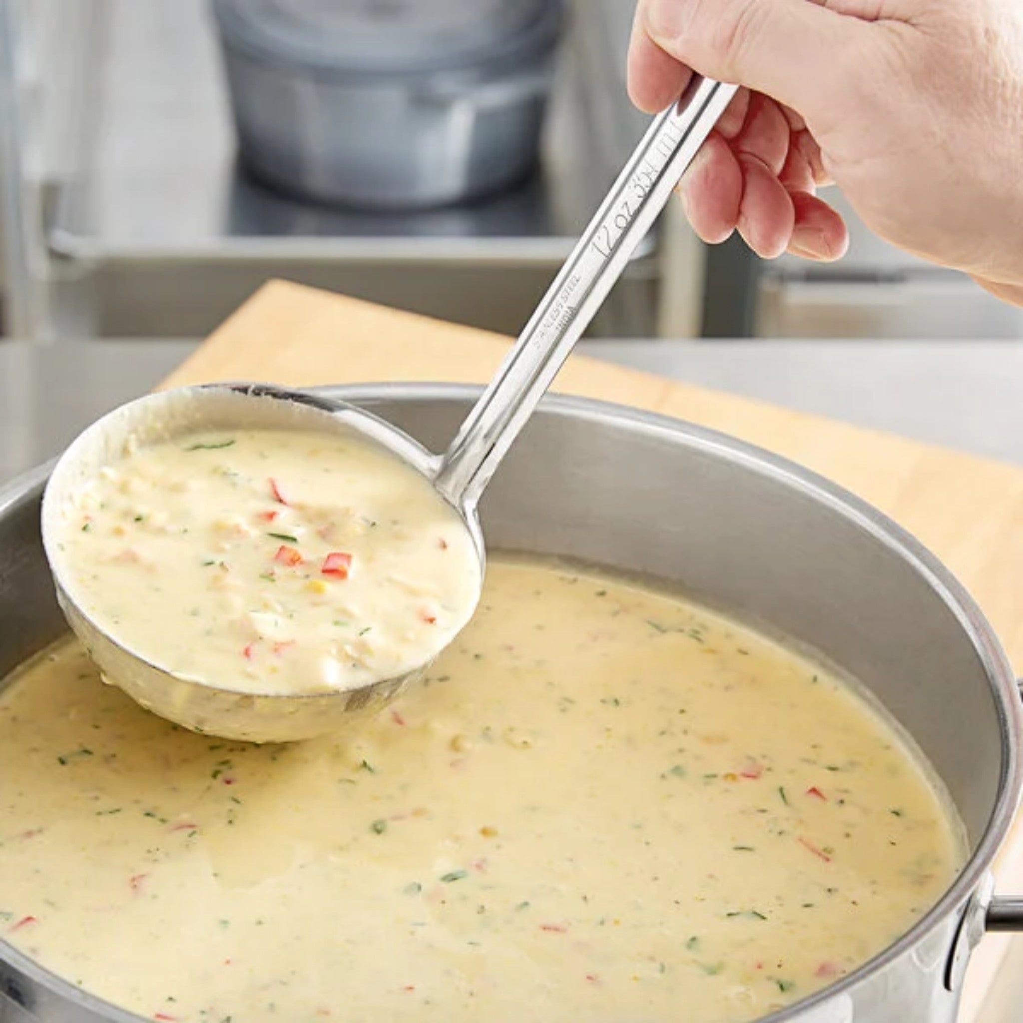 Cucharón elaborado en acero inoxidable de gran resistencia, ideal para servir sopas, caldos y salsas en cocinas profesionales o domésticas. Su diseño práctico asegura un servicio cómodo y confiable.