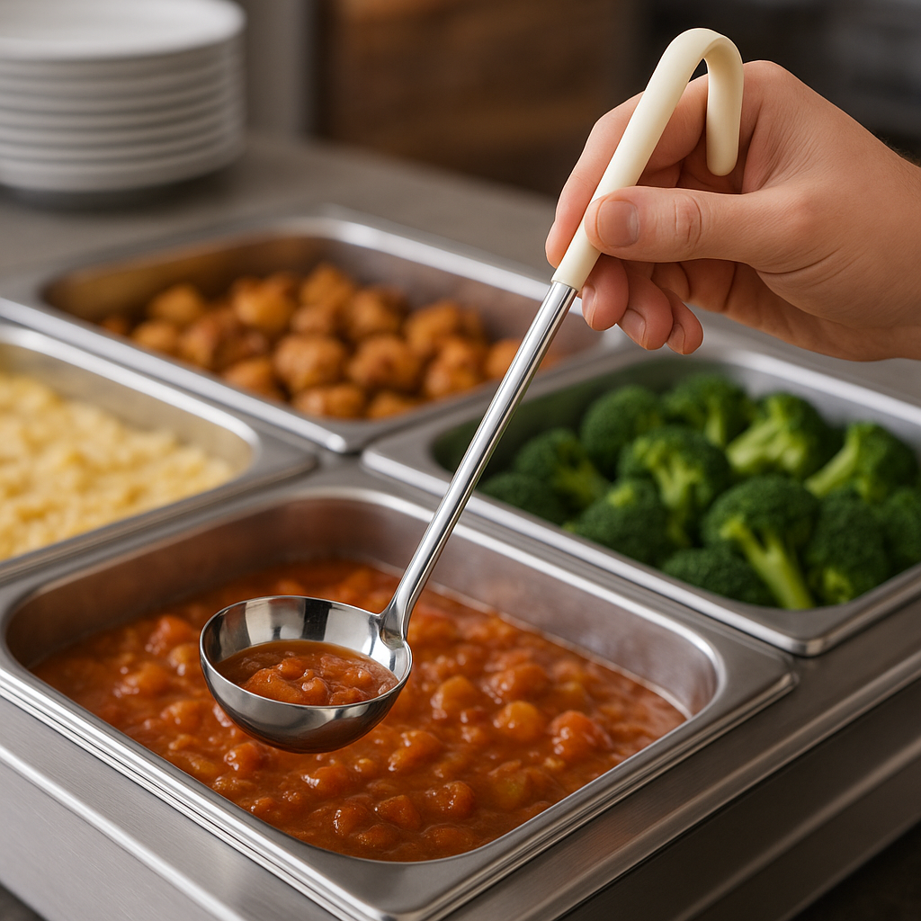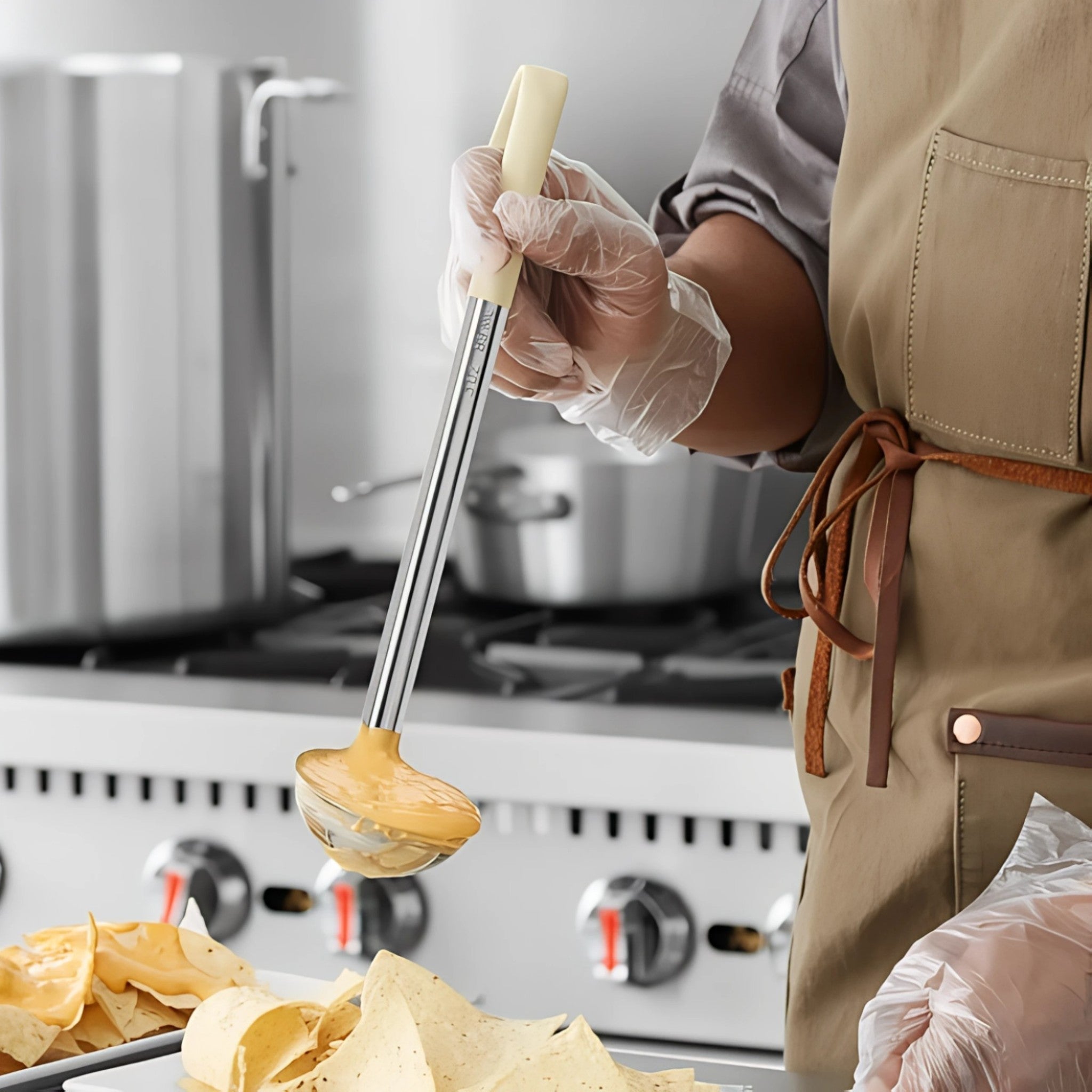 Cucharón de 3 oz ideal para servir salsas, caldos o aderezos con precisión. Fabricado en una sola pieza para mayor higiene y resistencia en entornos profesionales.