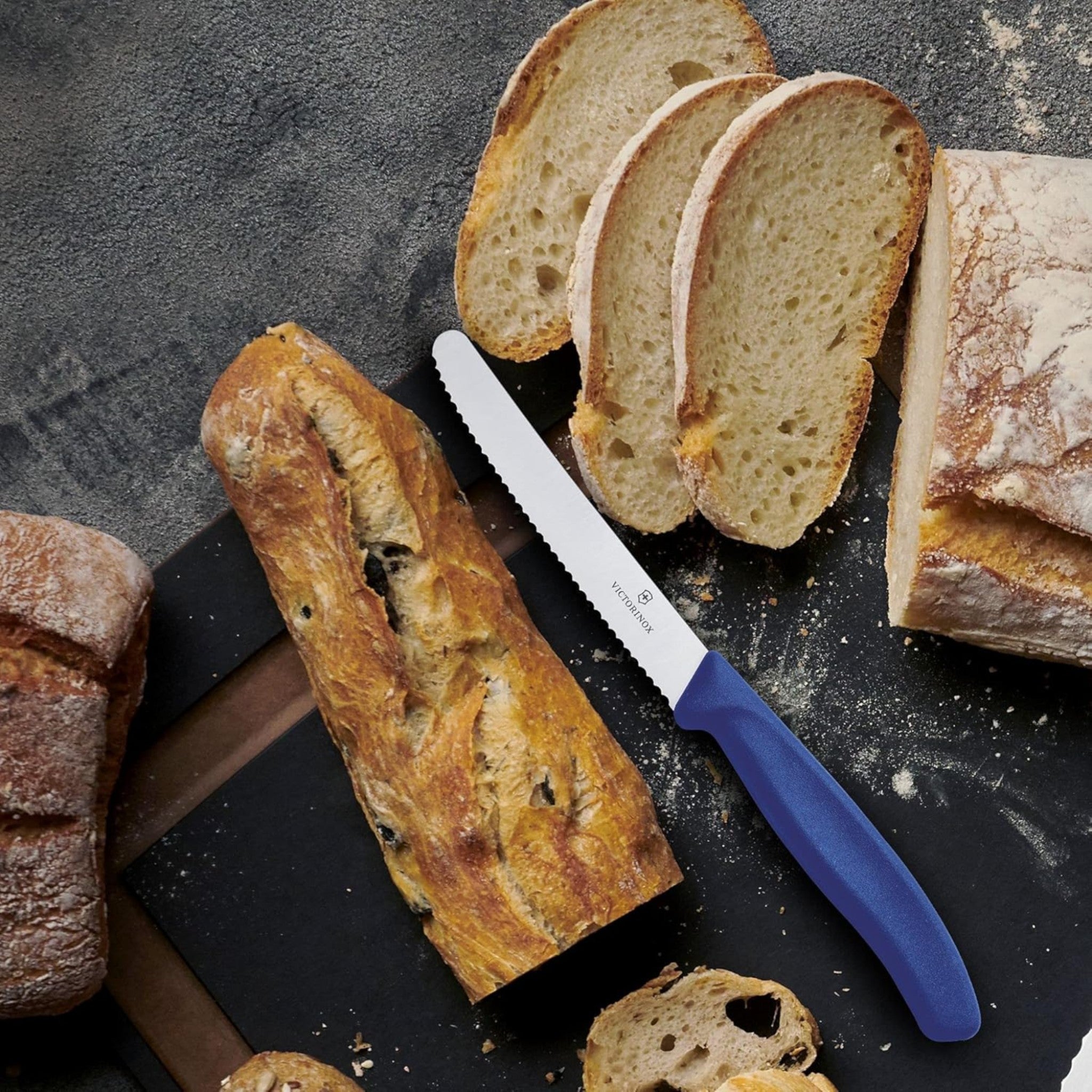 ¡Este cuchillo dentado Victorinox de 11 cm en azul es imprescindible para cualquier cocina! Fabricado con materiales de alta calidad, su afilada hoja dentada permite cortar fácilmente frutas, verduras y carnes. ¡Ahorra tiempo y esfuerzo en la cocina con este cuchillo duradero y eficiente!