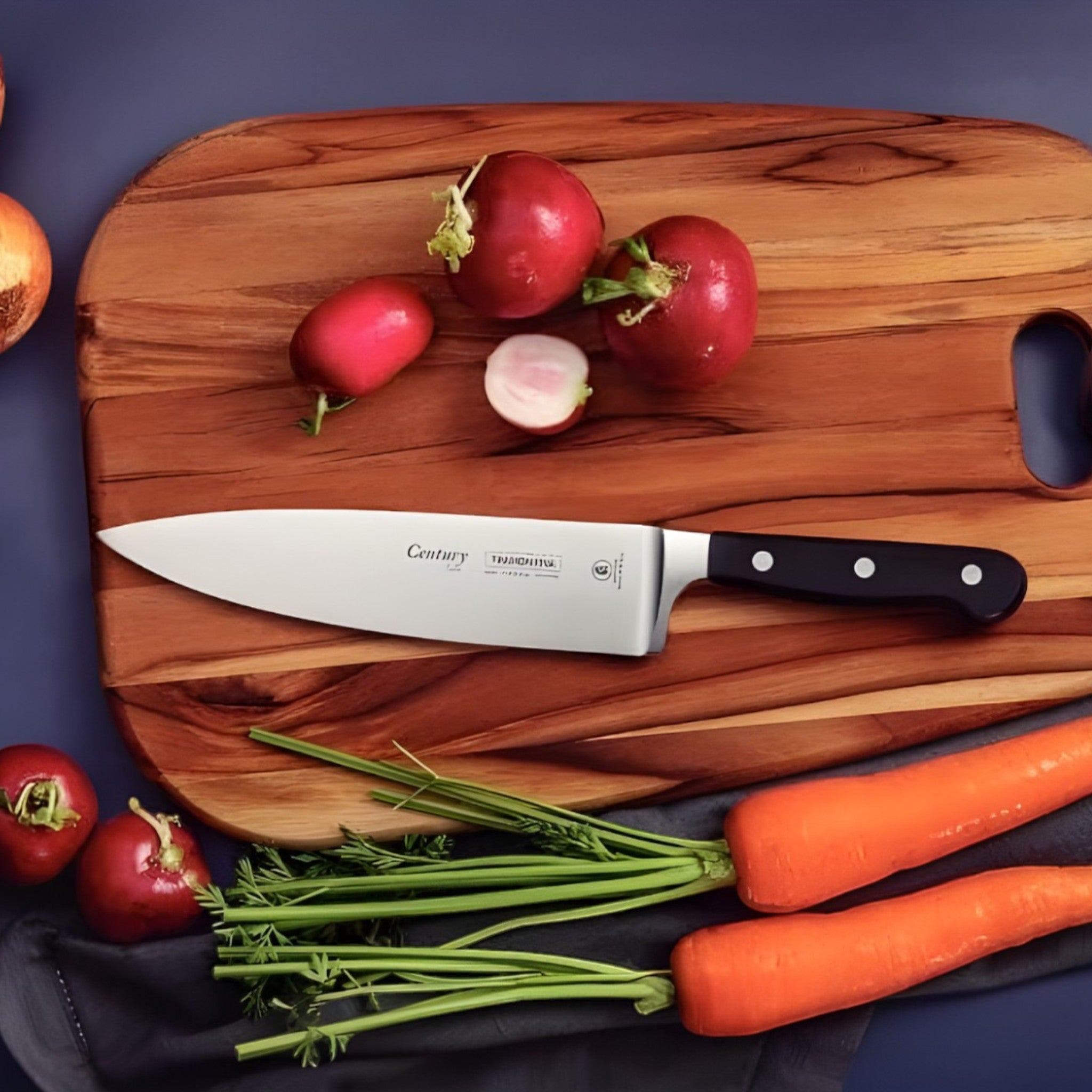El cuchillo de 8 pulgadas de la línea Century ofrece un rendimiento superior para cortes exigentes en cocina profesional. Su estructura forjada en una sola pieza de acero inoxidable garantiza un uso intensivo con excelente control, precisión y durabilidad.