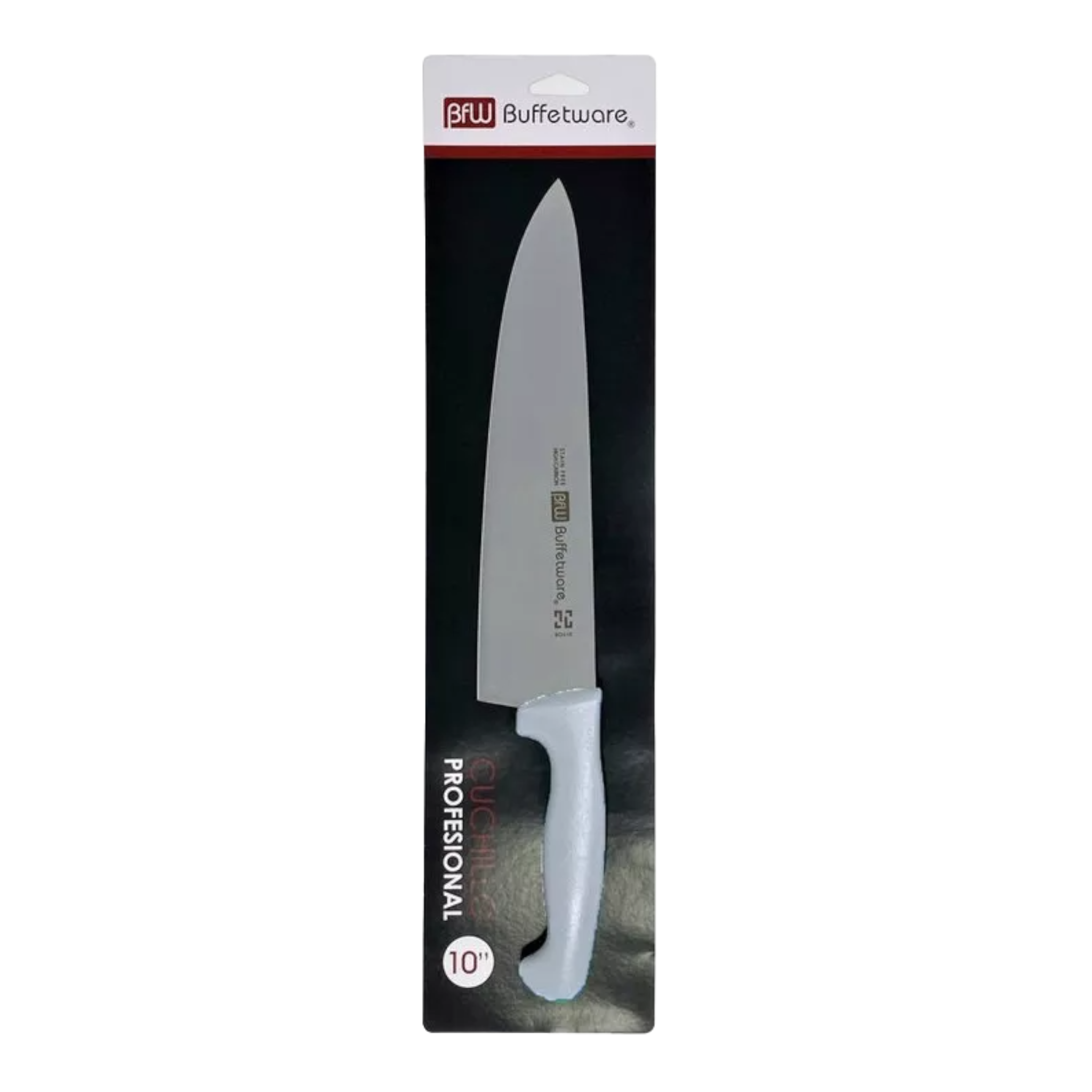 El Cuchillo Chef de 10” es una herramienta esencial en cualquier cocina profesional o doméstica. Su diseño equilibrado y su filo preciso garantizan cortes limpios y eficientes en una gran variedad de ingredientes.