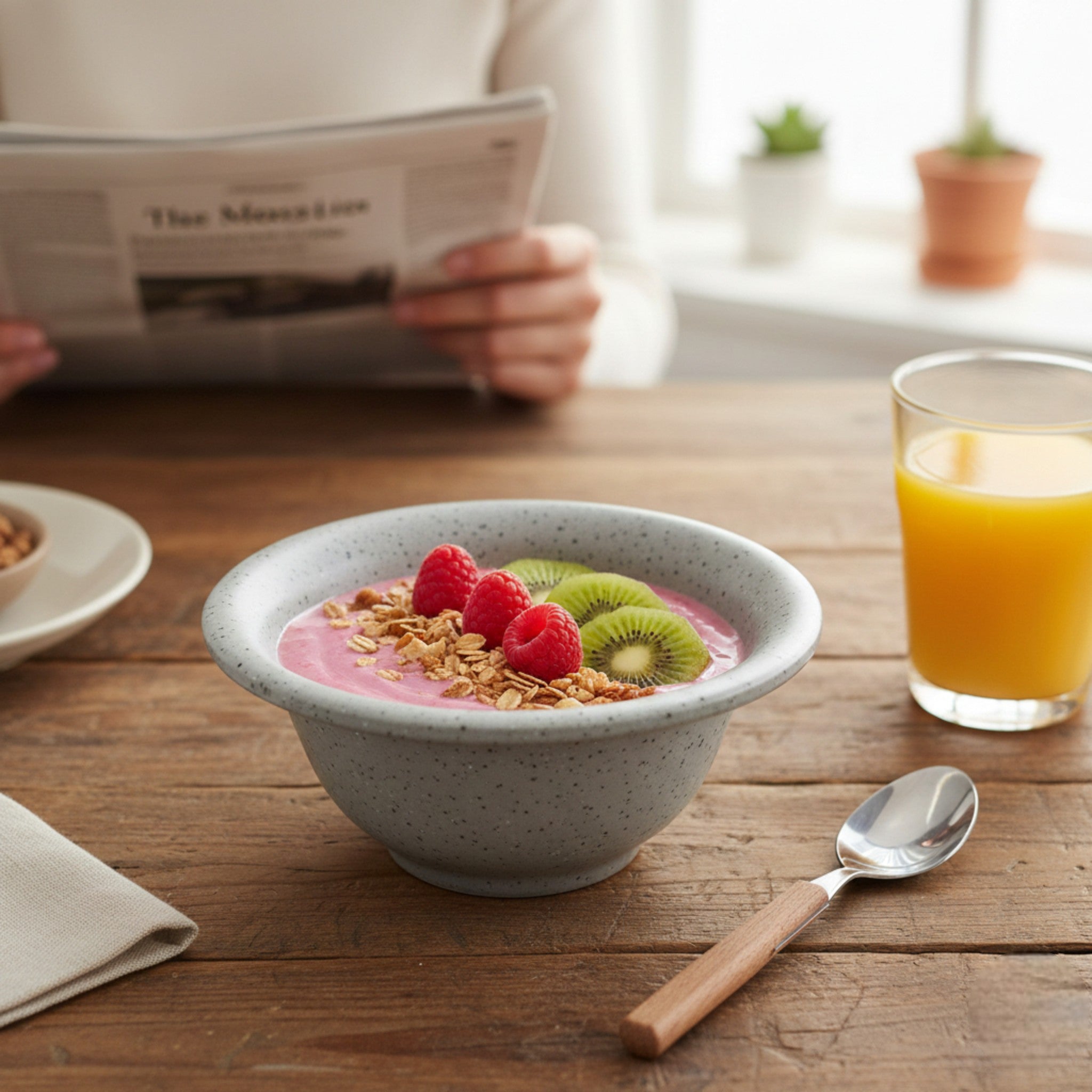 Resalta tus preparaciones con el Tazón de 13.5" Eco Gray con borde ancho, ideal para platillos abundantes o presentaciones compartidas. Su diseño elegante y resistente lo hace perfecto para servicios profesionales de alto nivel.