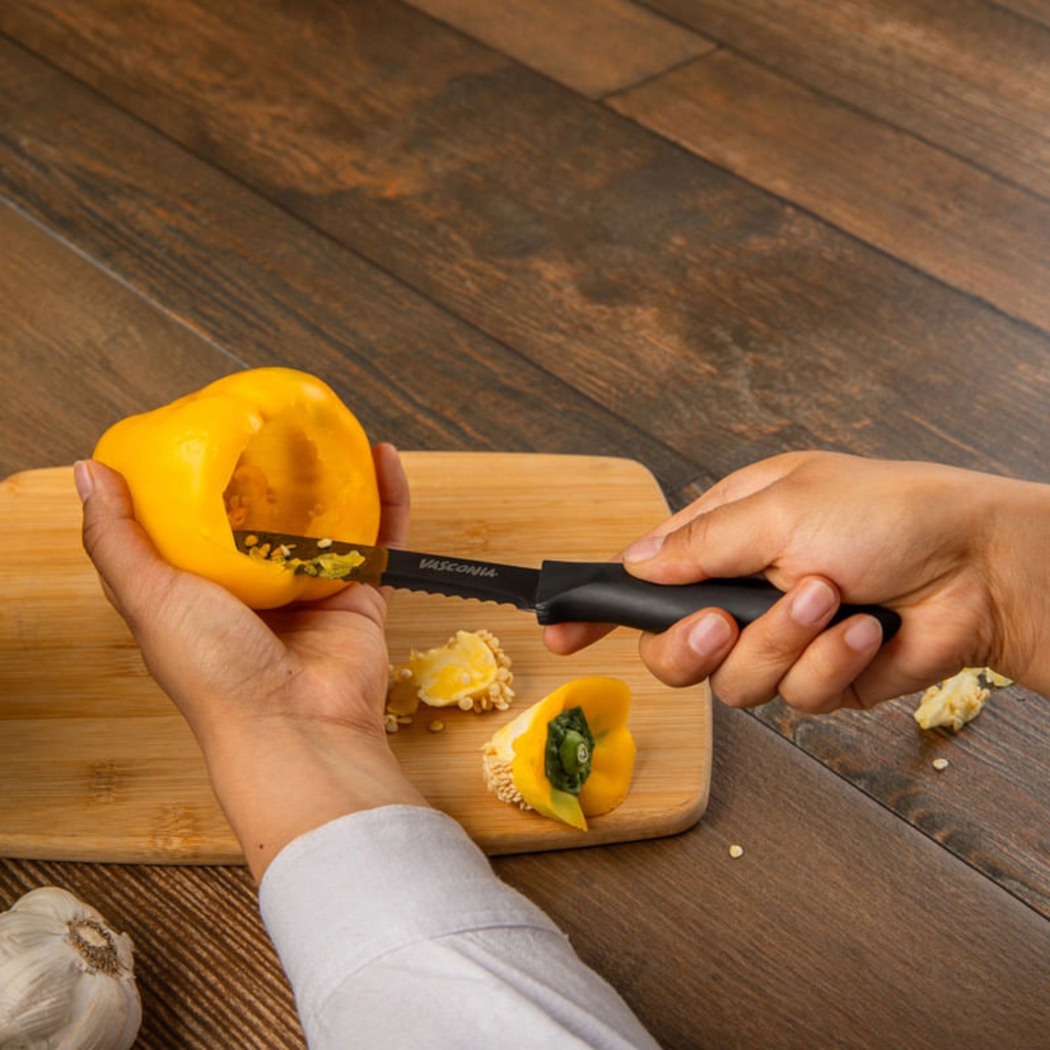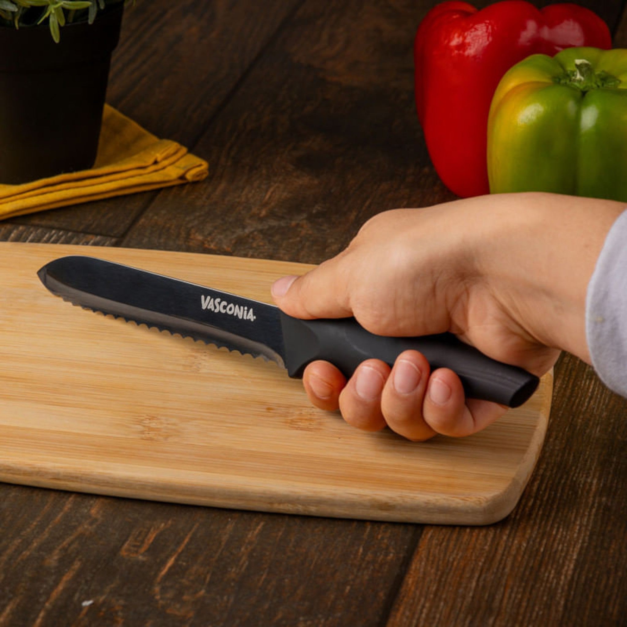 ¡Domina tu cocina con el cuchillo chef de la marca Vasconia! Este cuchillo de 8 pulgadas es esencial para cualquier chef valiente y apasionado. Corta y pica con facilidad gracias a su hoja afilada y agarre cómodo. ¡Conviértete en un maestro de la cocina con este increíble cuchillo!
