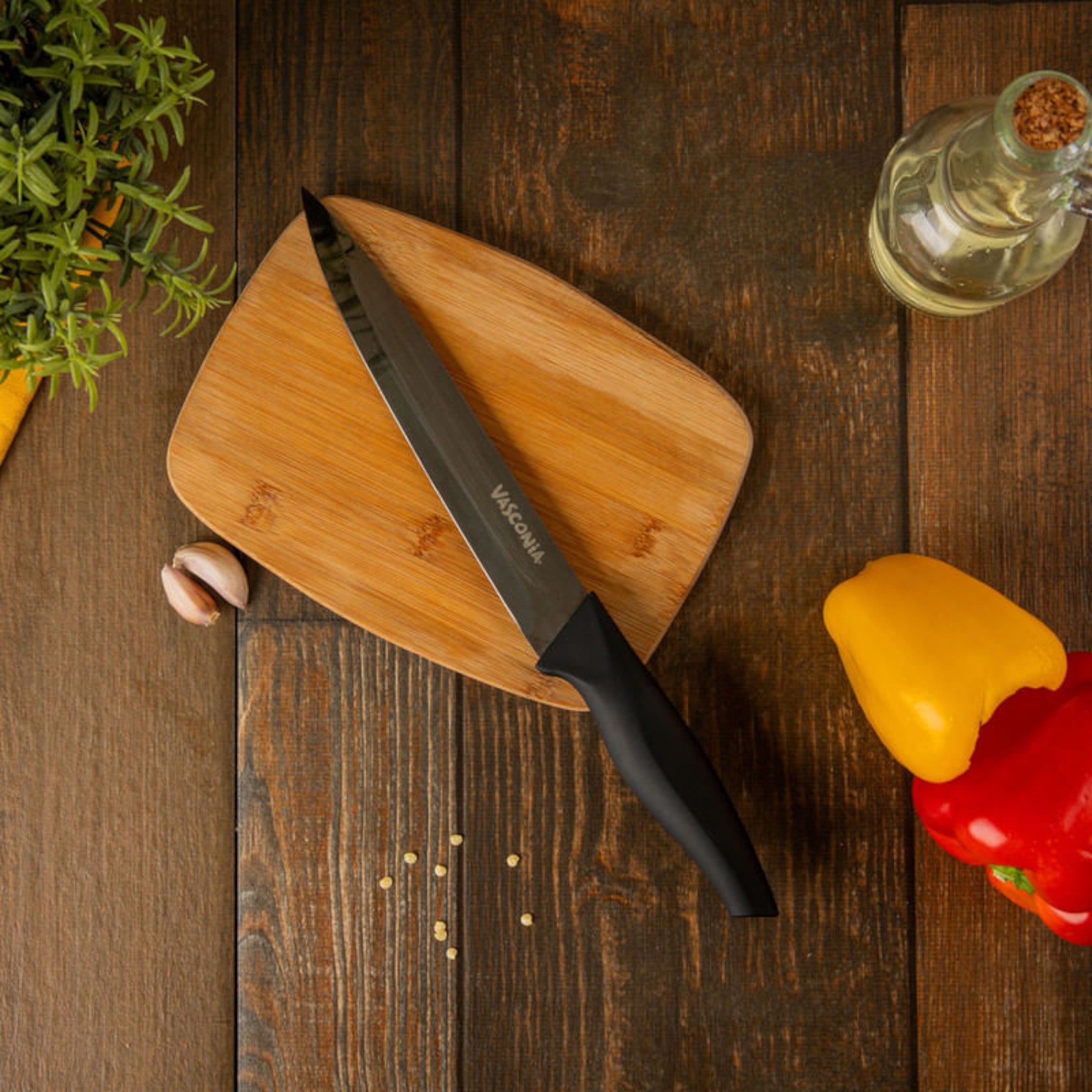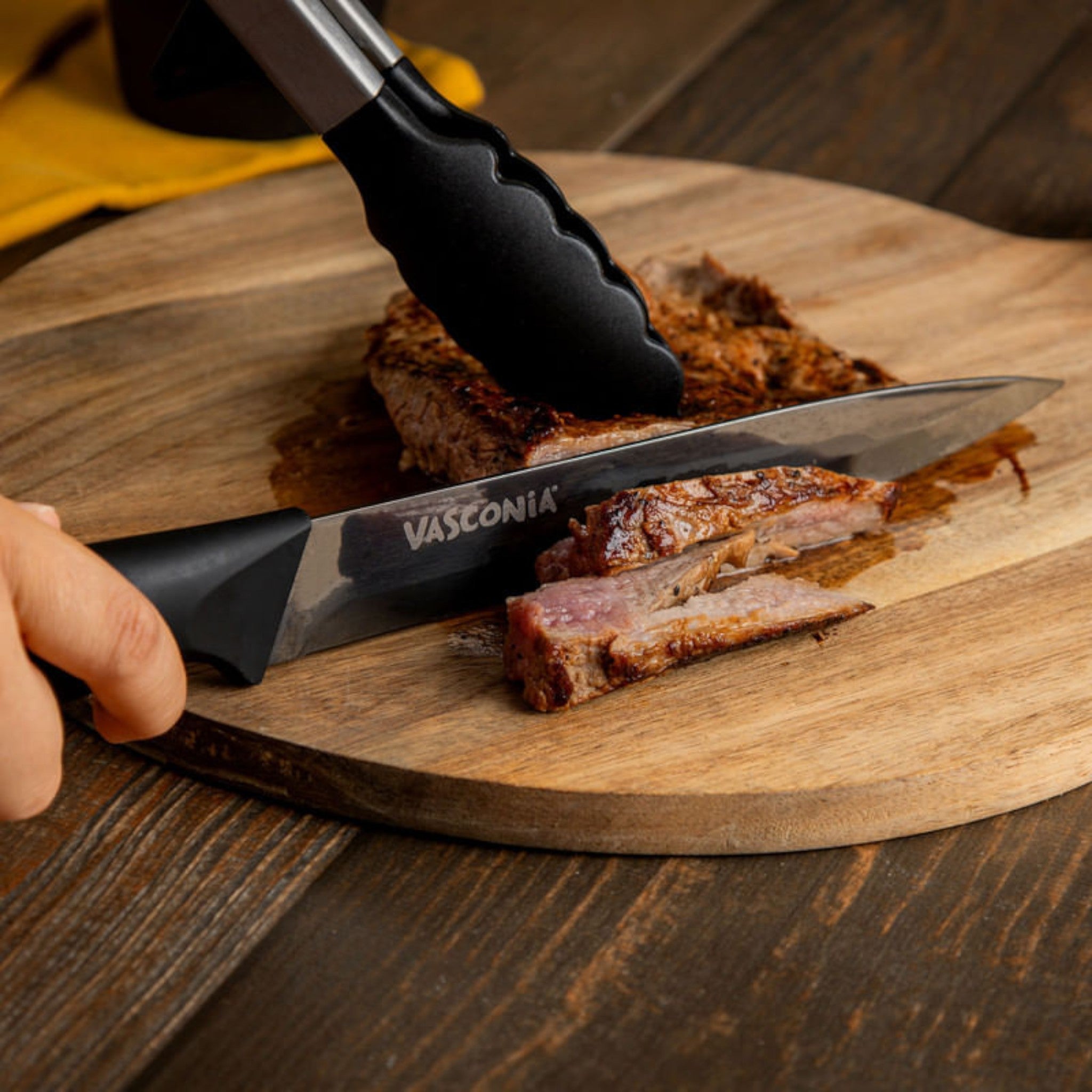 ¡Domina tu cocina con el cuchillo chef de la marca Vasconia! Este cuchillo de 8 pulgadas es esencial para cualquier chef valiente y apasionado. Corta y pica con facilidad gracias a su hoja afilada y agarre cómodo. ¡Conviértete en un maestro de la cocina con este increíble cuchillo!