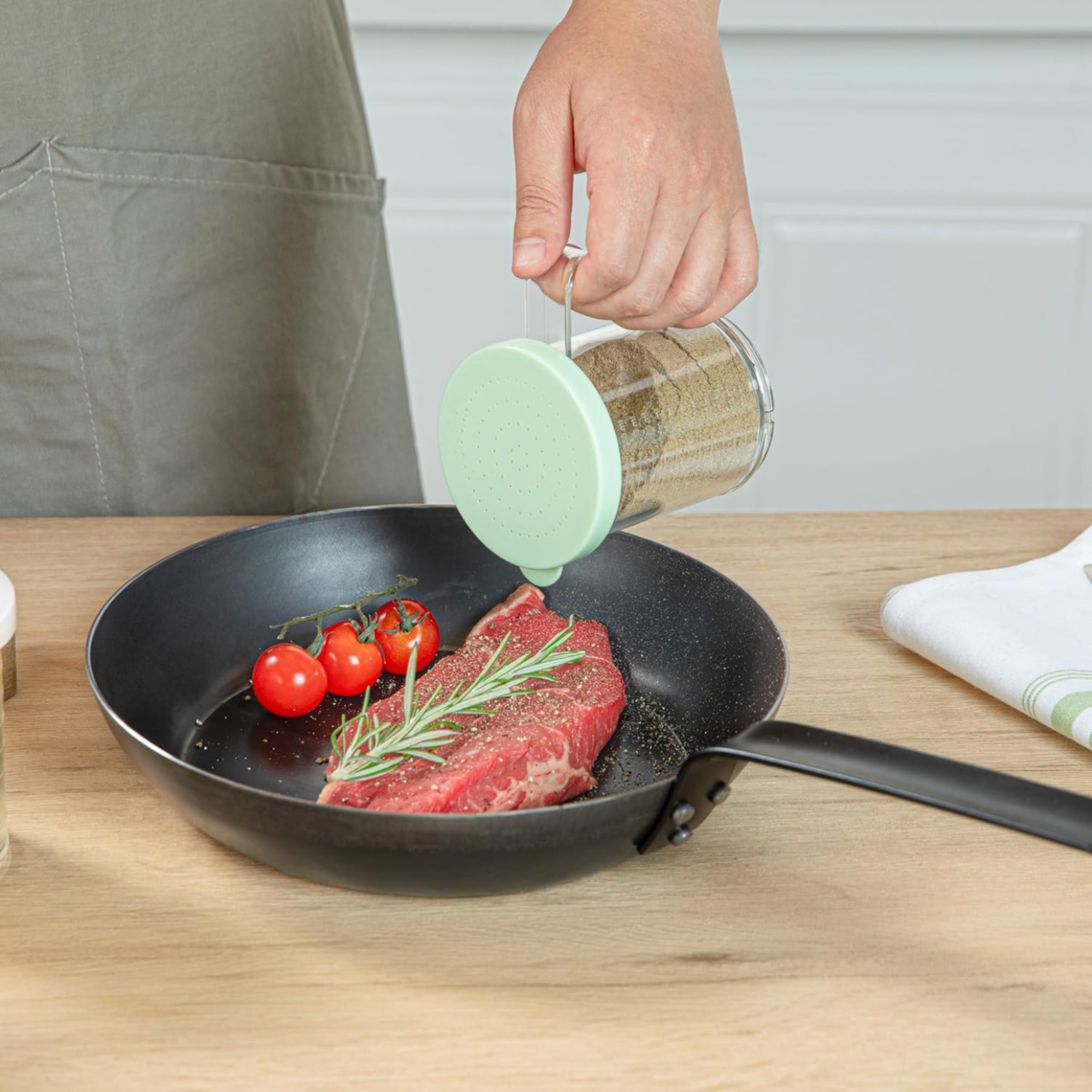 Un accesorio esencial para la cocina profesional, diseñado para espolvorear ingredientes con precisión. El Espolvoreador PC Grano Fino Verde de Concassé es ideal para aplicar azúcar glass, cacao, harina y otros ingredientes en polvo de manera uniforme.