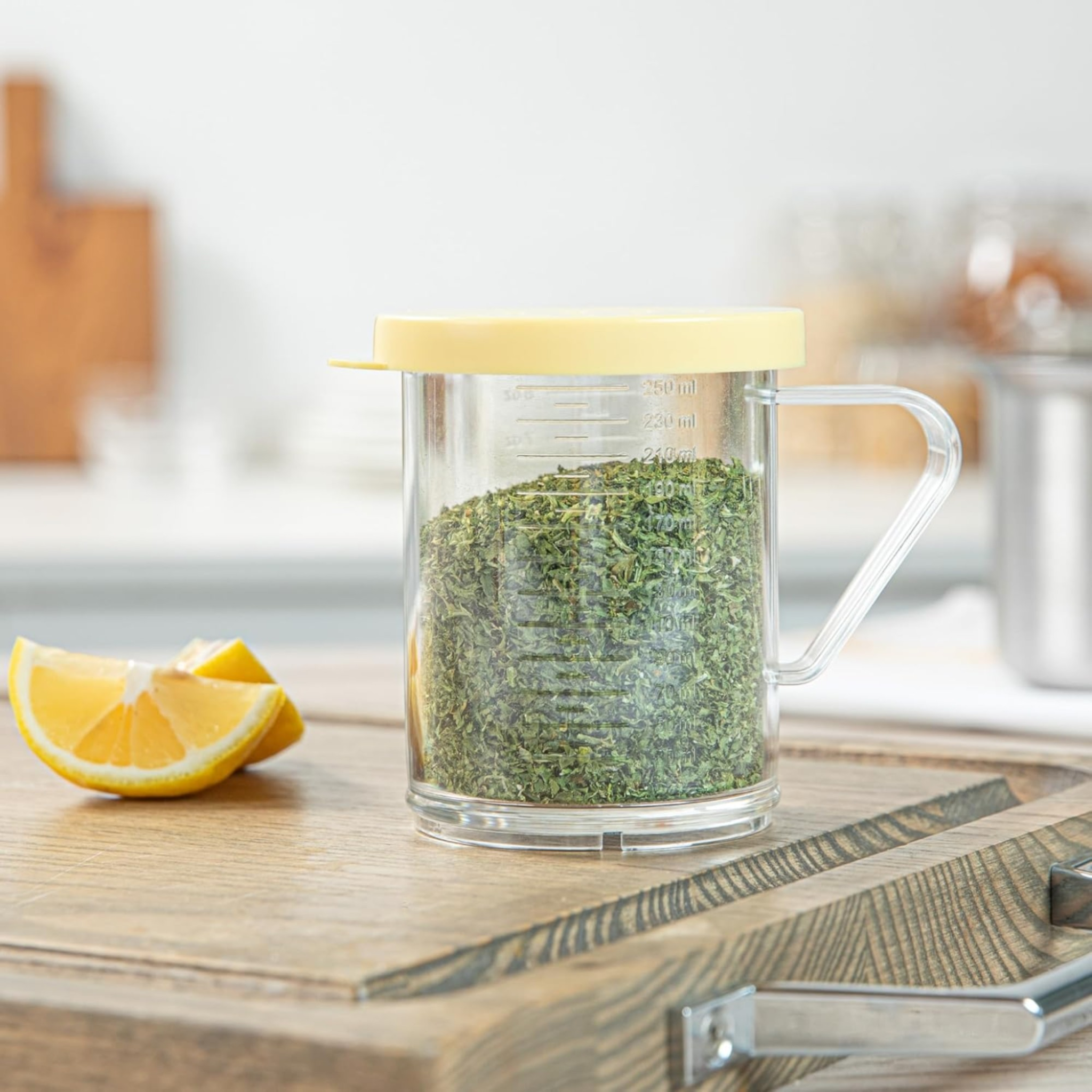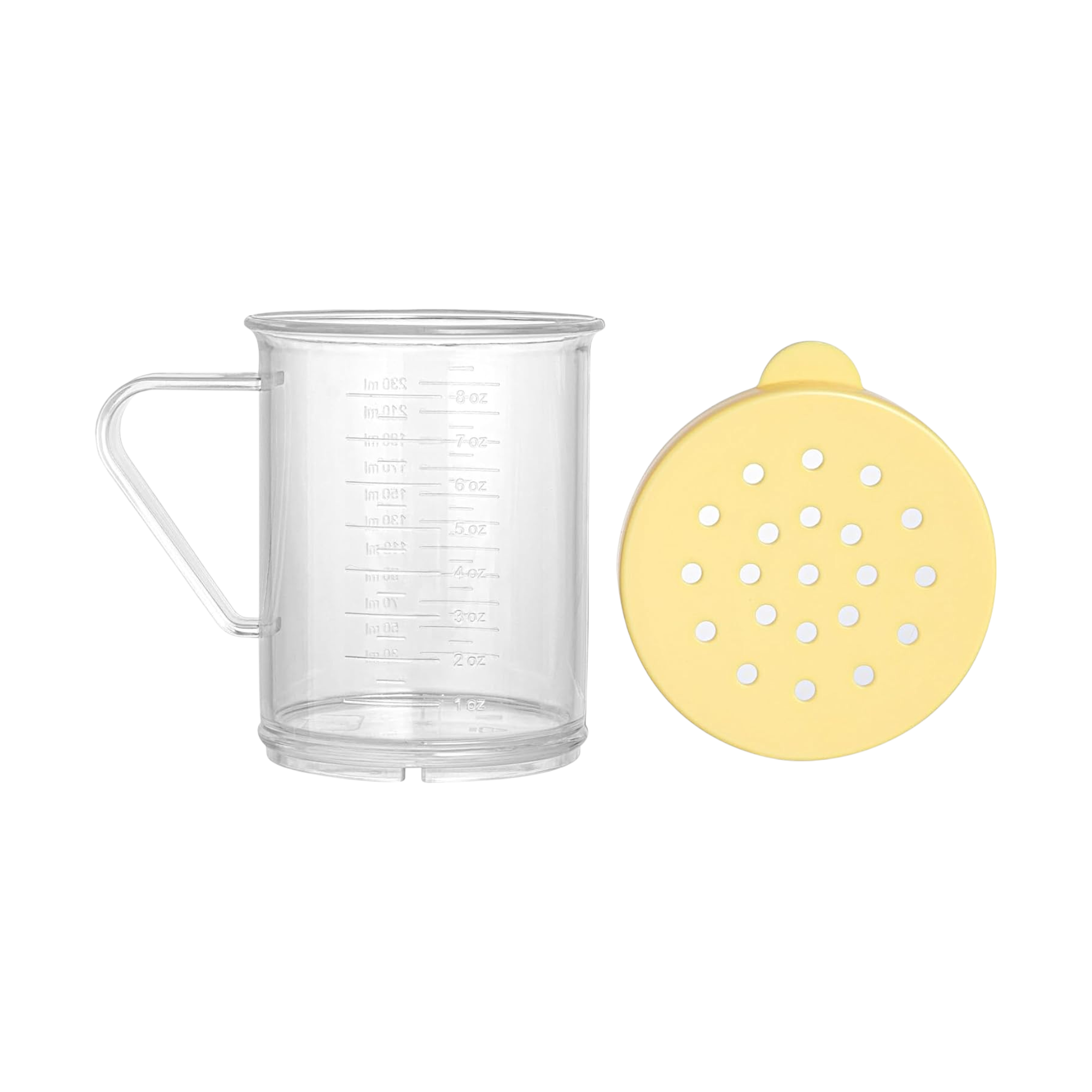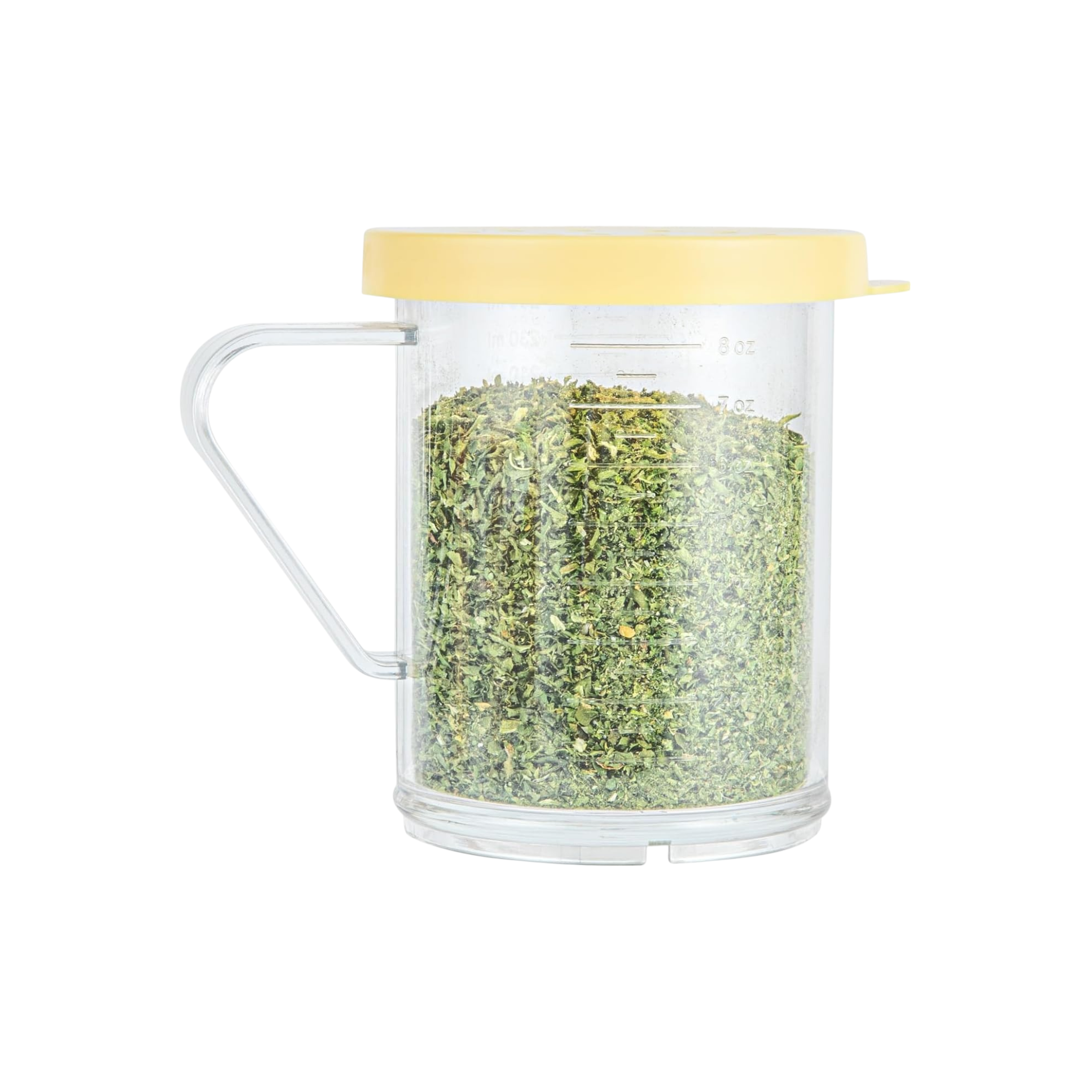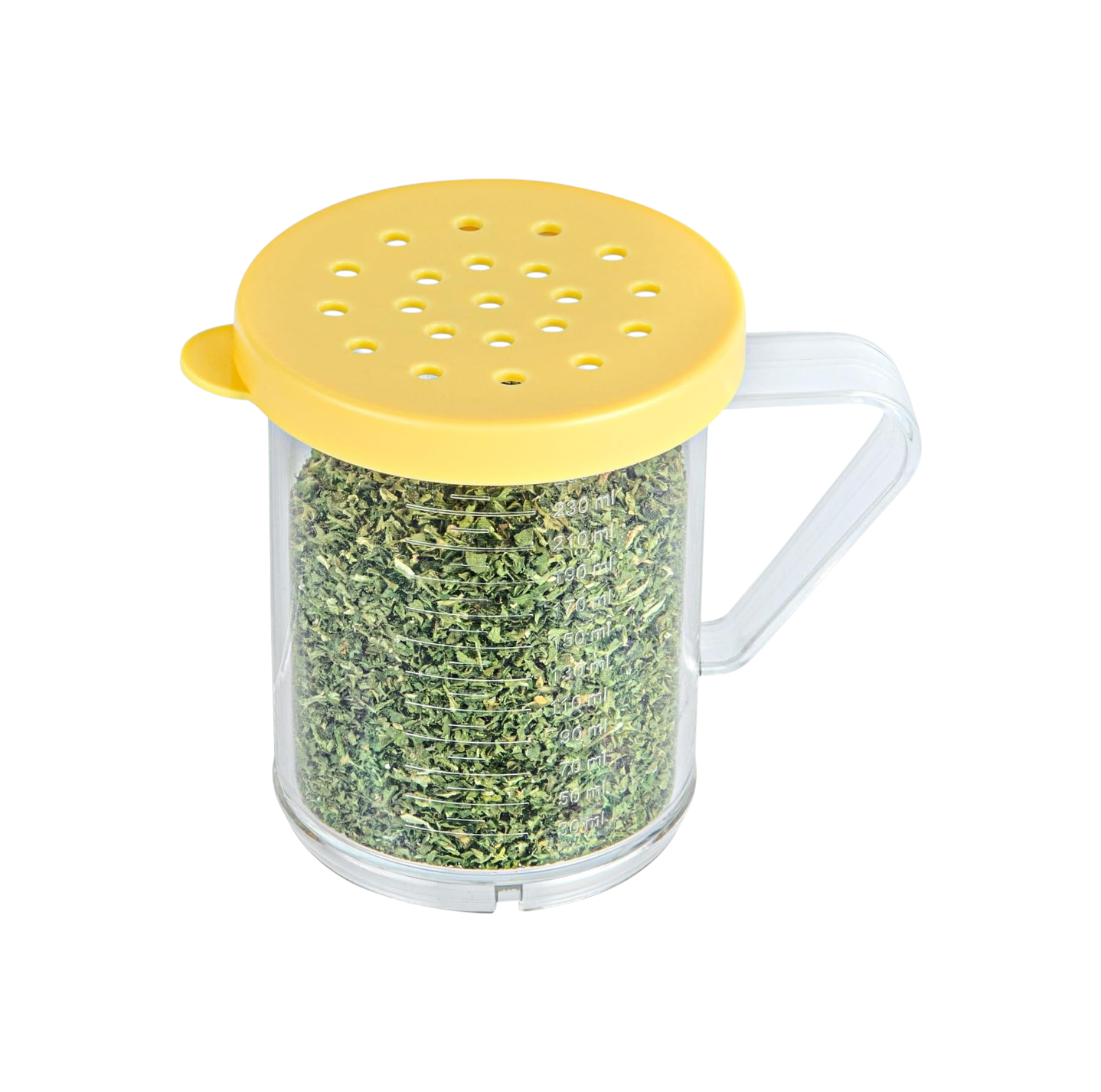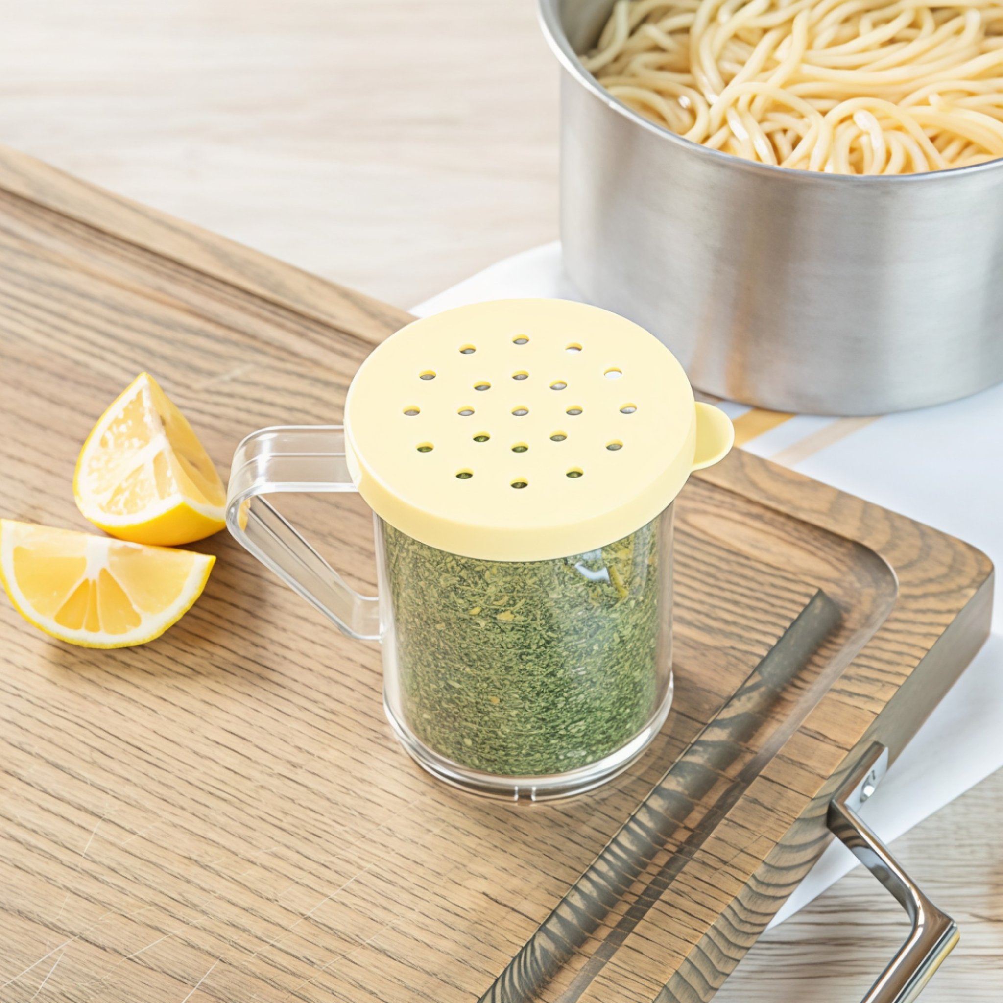 El espolvoreador de queso amarillo está fabricado con material de policarbonato resistente y duradero. Su tapa amarilla y recipiente transparente permiten ver fácilmente el contenido y su dosificación. Ideal para espolvorear queso amarillo en tus comidas favoritas de manera precisa y uniforme.