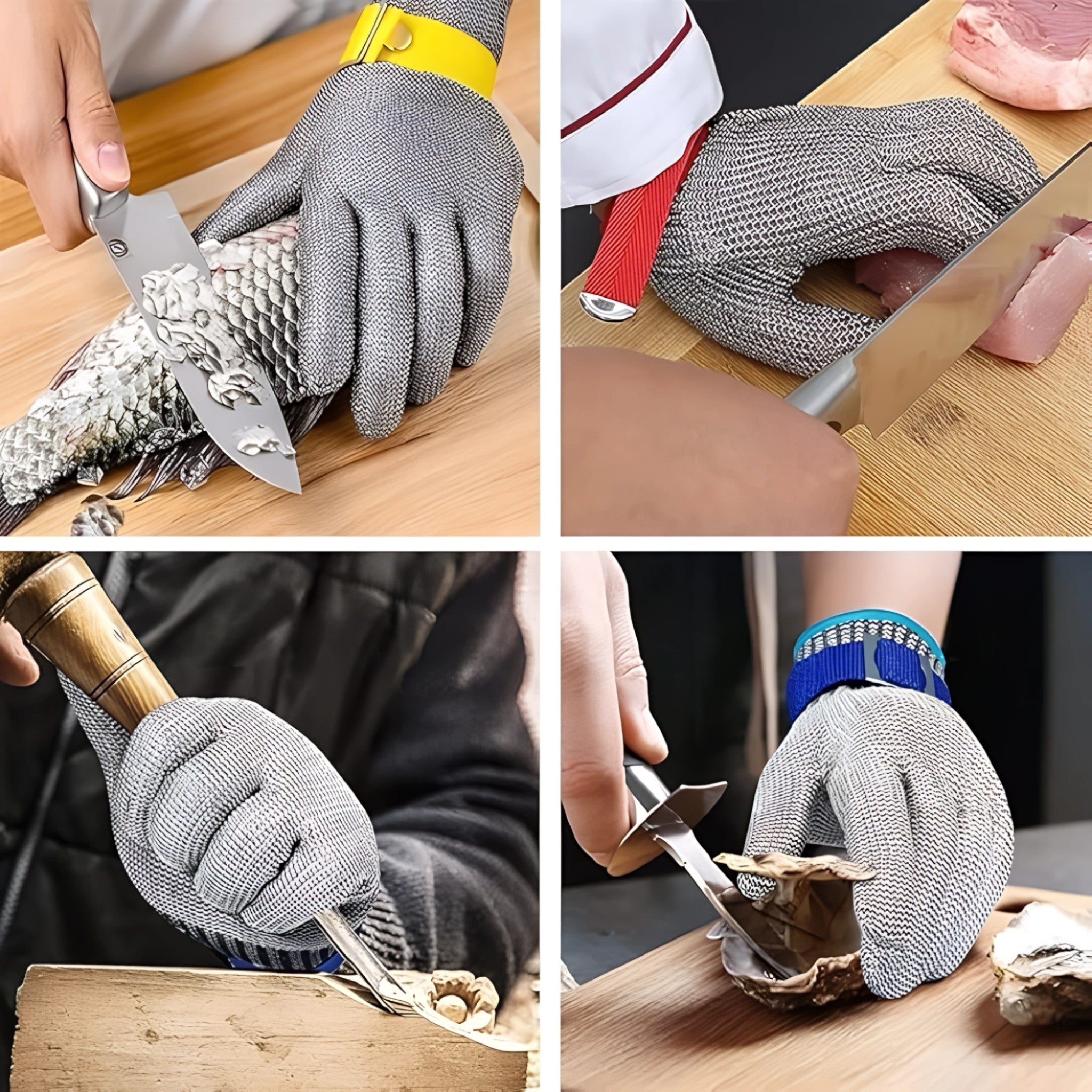 Máxima resistencia al corte: Fabricado con malla de acero inoxidable de grado alimenticio, resistente a cortes y pinchazos.