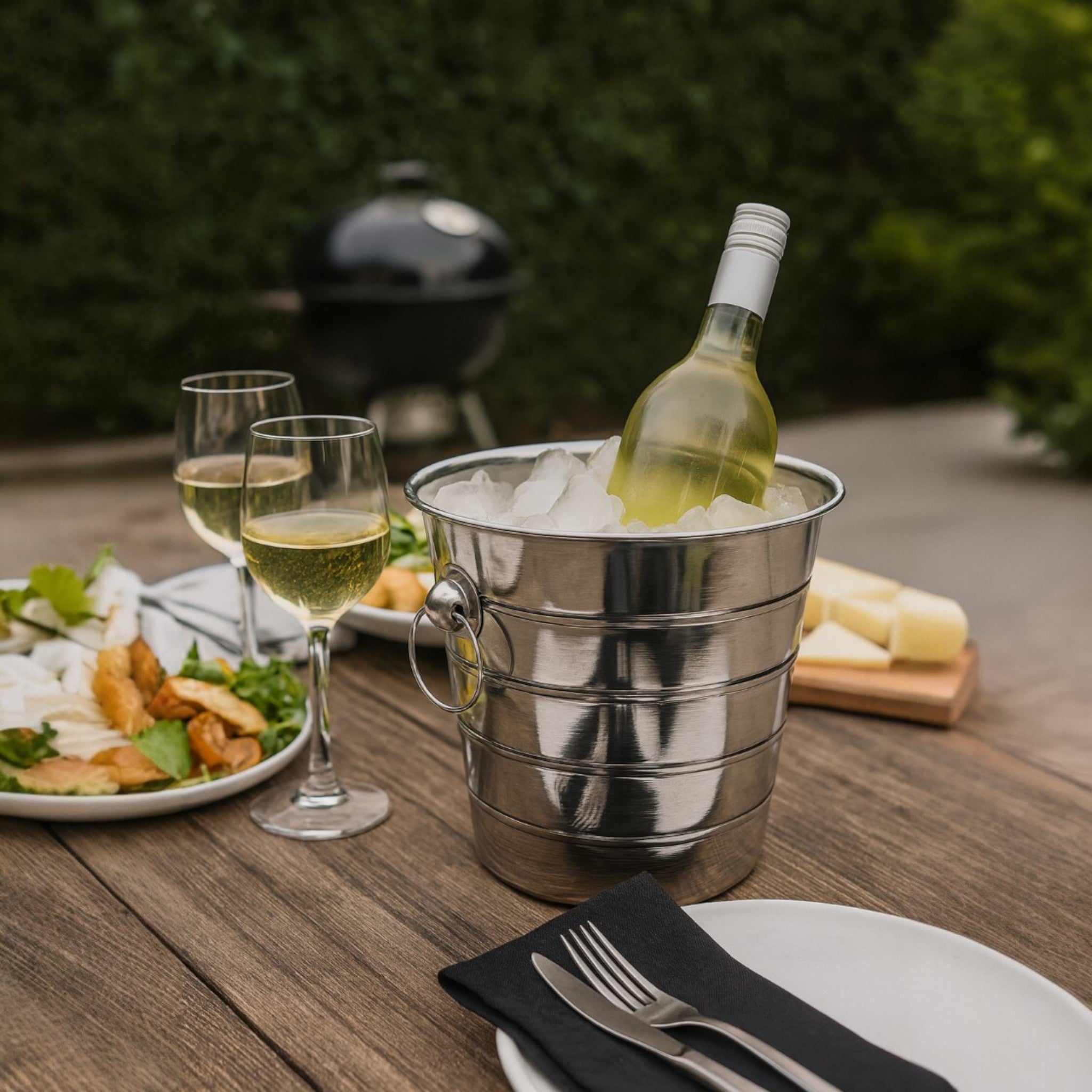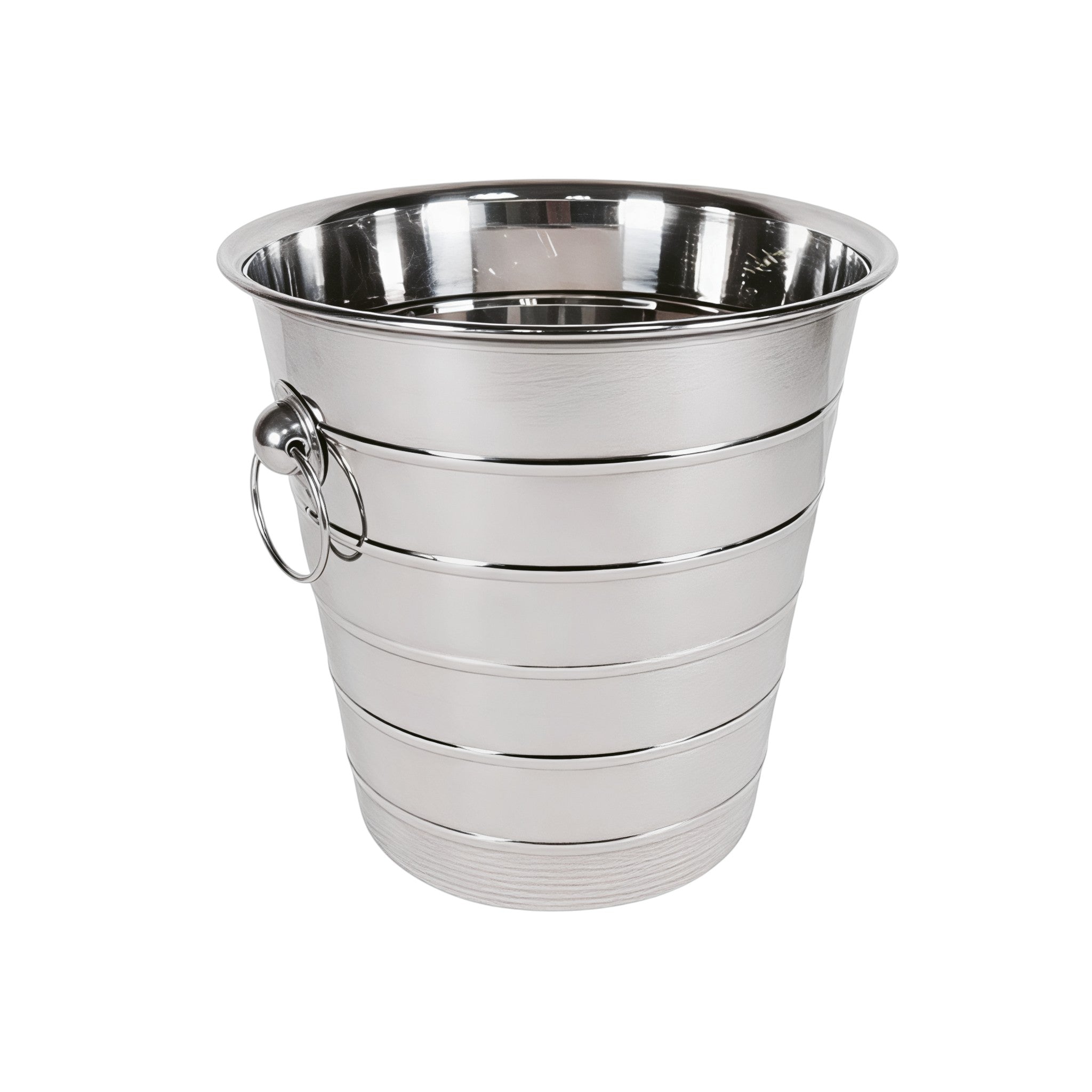 Hielera de acero inoxidable para champagne, elegante y resistente, ideal para mantener tus botellas frías. Su diseño moderno aporta un toque sofisticado en restaurantes, bares o reuniones especiales. Perfecta para resaltar la presentación de vinos y espumosos con estilo profesional.