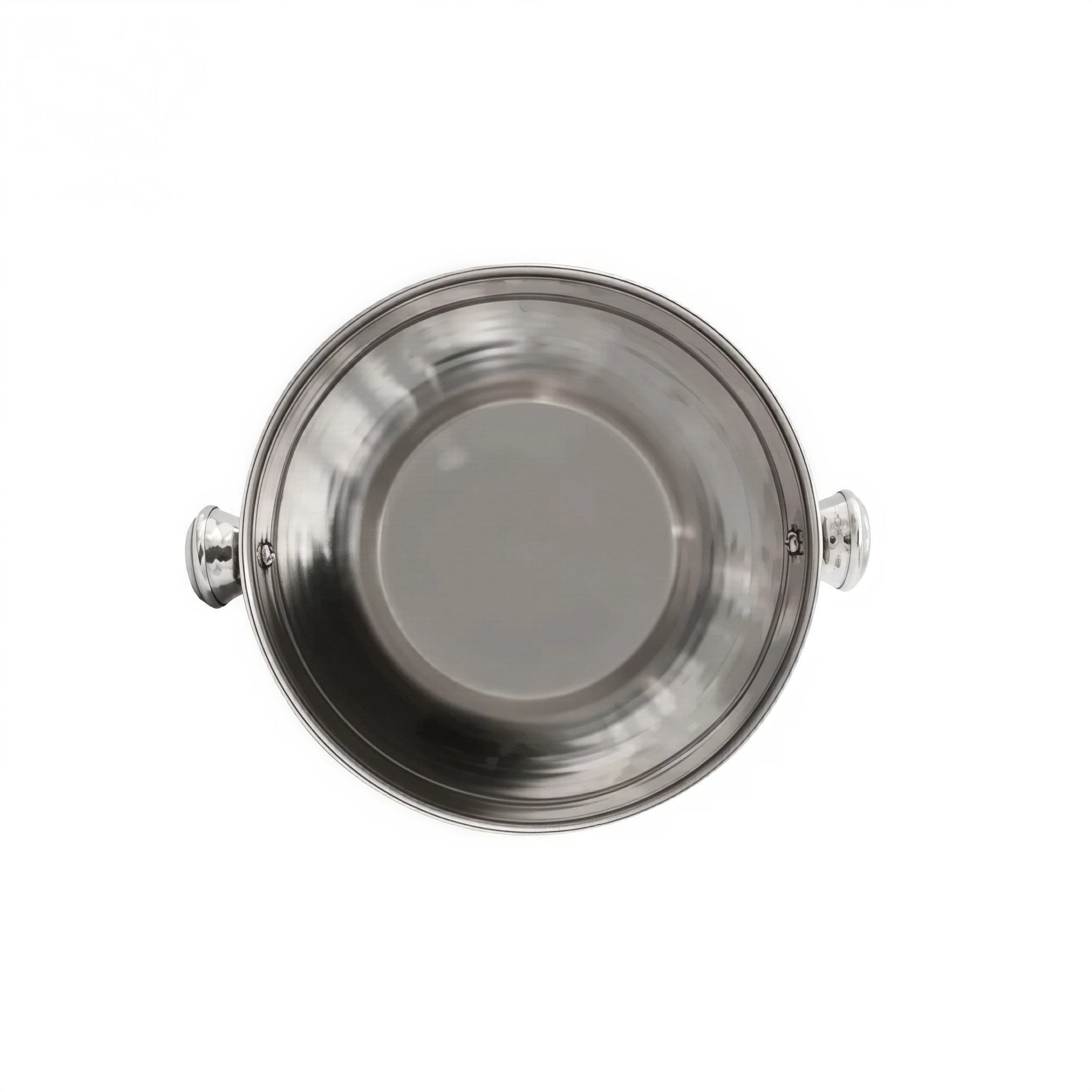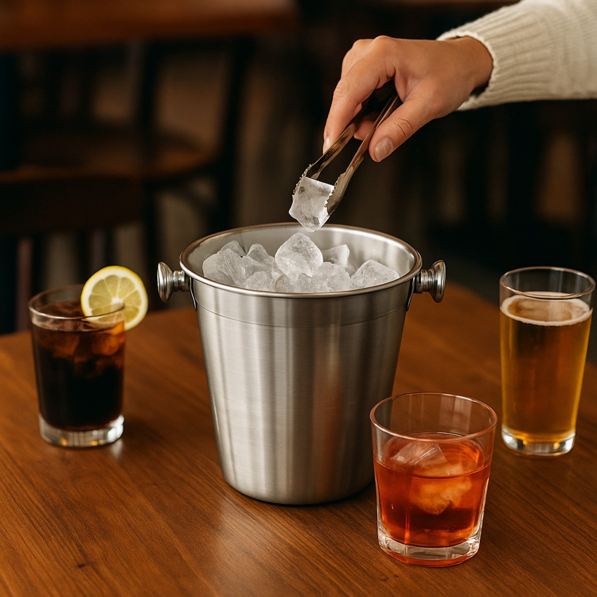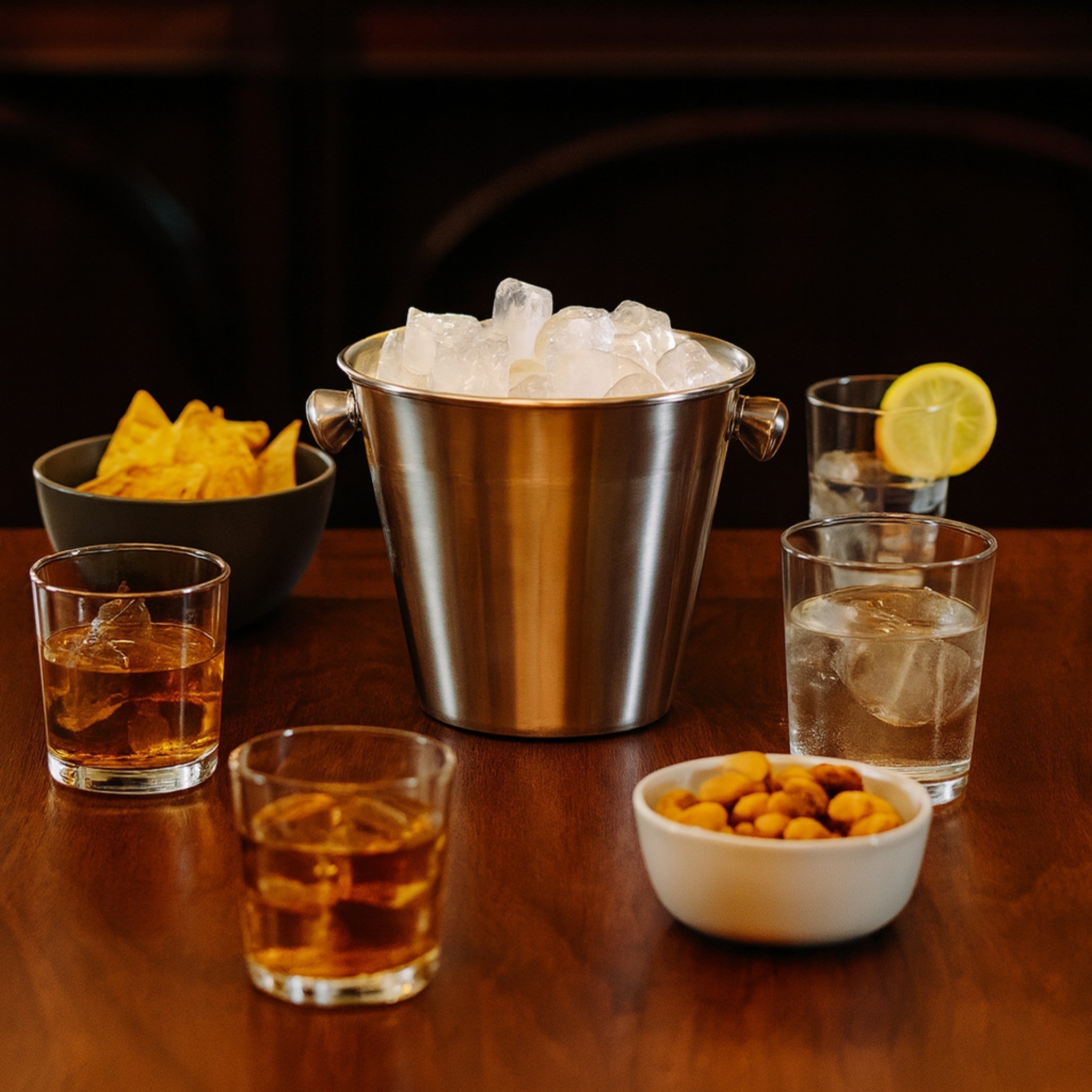 Práctica hielera fabricada en acero inoxidable, ideal para conservar y servir hielos en restaurantes, bares o reuniones. Su diseño resistente asegura durabilidad y fácil limpieza, manteniendo siempre la higiene en el servicio.