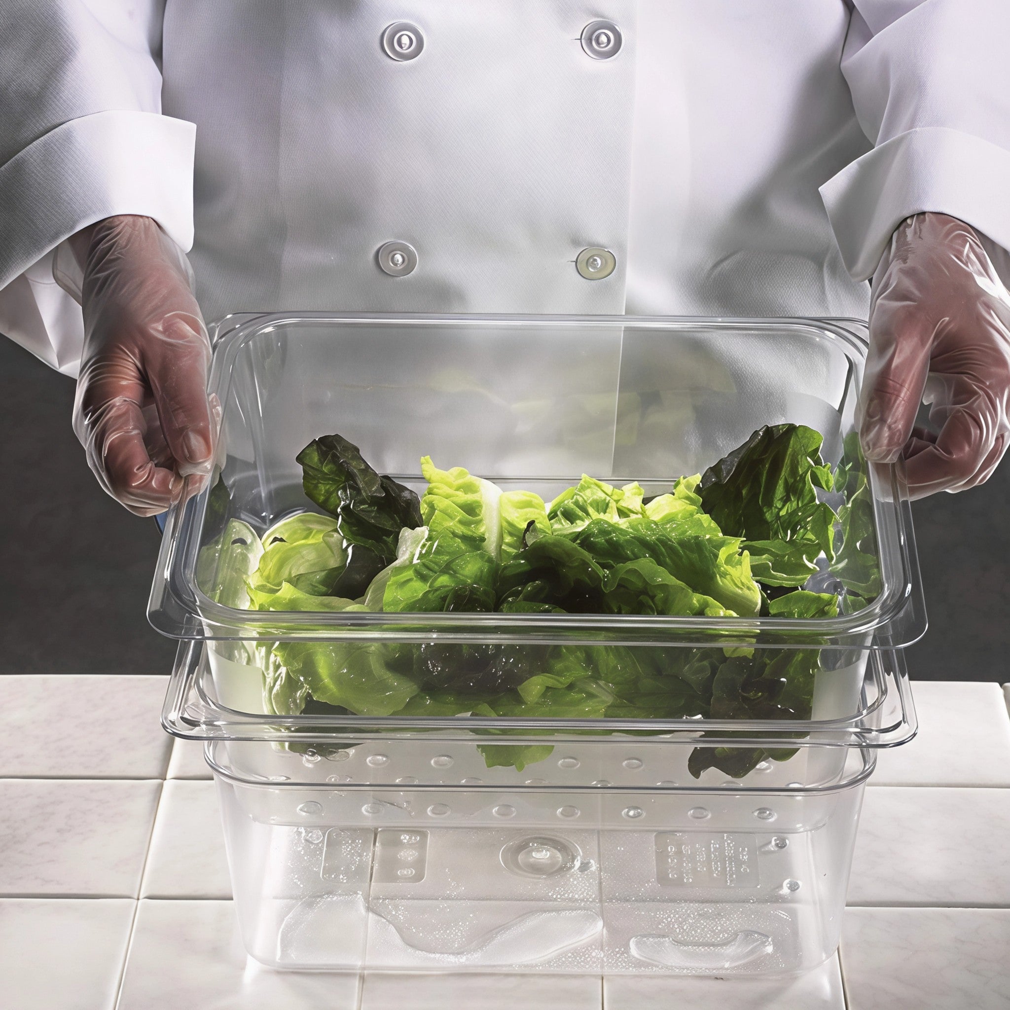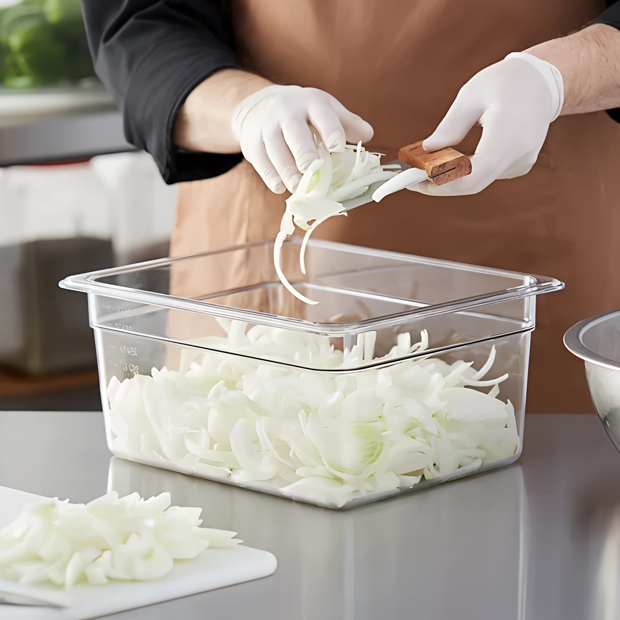 El inserto de policarbonato 1/2 x 6.0" de Thunder es un contenedor resistente y versátil, ideal para el manejo, almacenamiento y servicio de alimentos en cocinas profesionales. Su diseño permite un uso eficiente en buffets, mesas frías y estaciones de servicio.