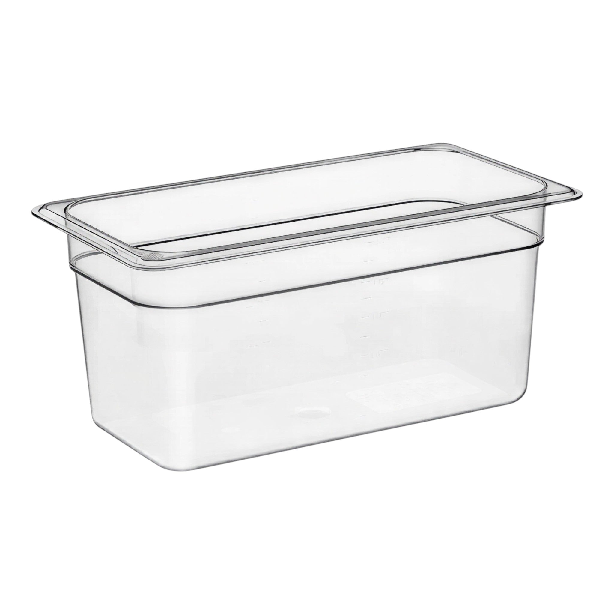 Inserto de policarbonato tamaño 1/3 con 6.0" de profundidad para línea de servicio y almacenamiento de alimentos en cocina profesional. Mantiene ingredientes organizados y visibles, compatible con estaciones frías y mesas de vapor.