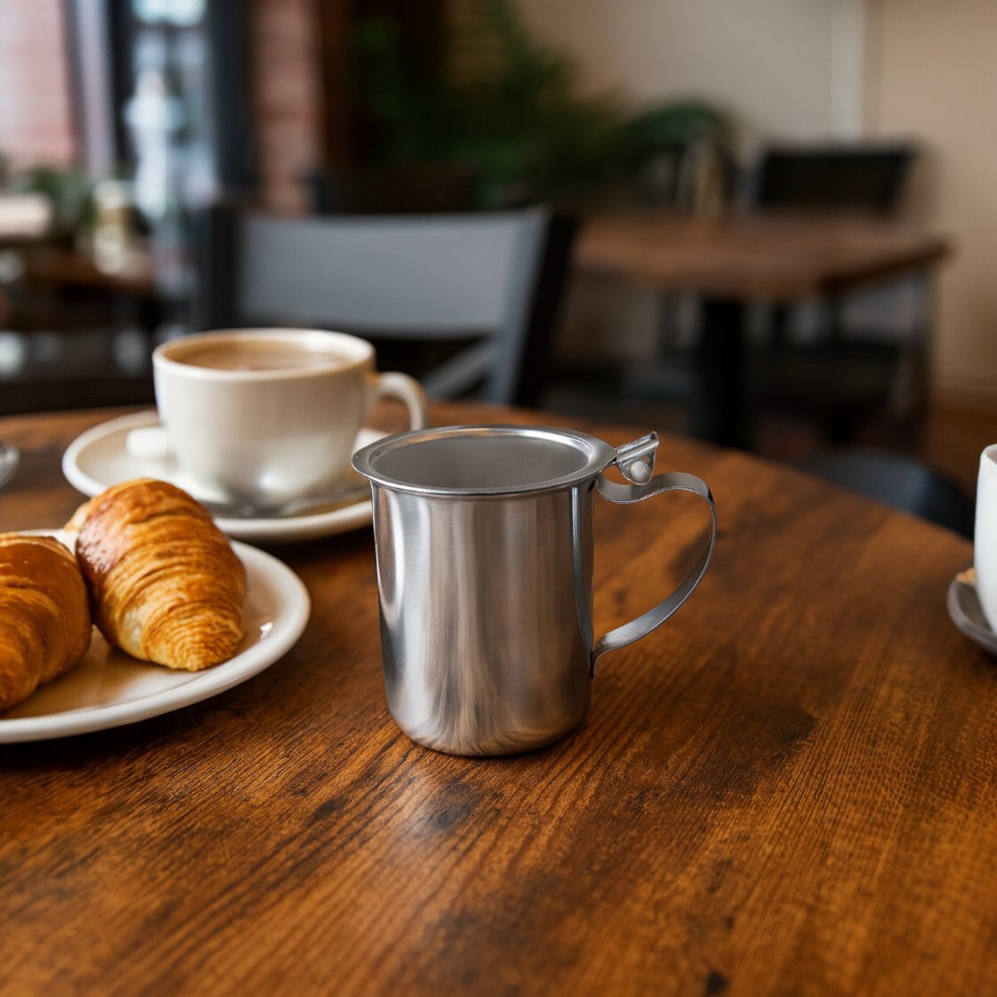 La jarrita cremera de 10 oz con tapa es un accesorio práctico y elegante para el servicio de leche, crema o salsas en mesas de restaurante, cafetería o uso en el hogar. Su diseño compacto facilita el servicio y mantiene el contenido protegido.