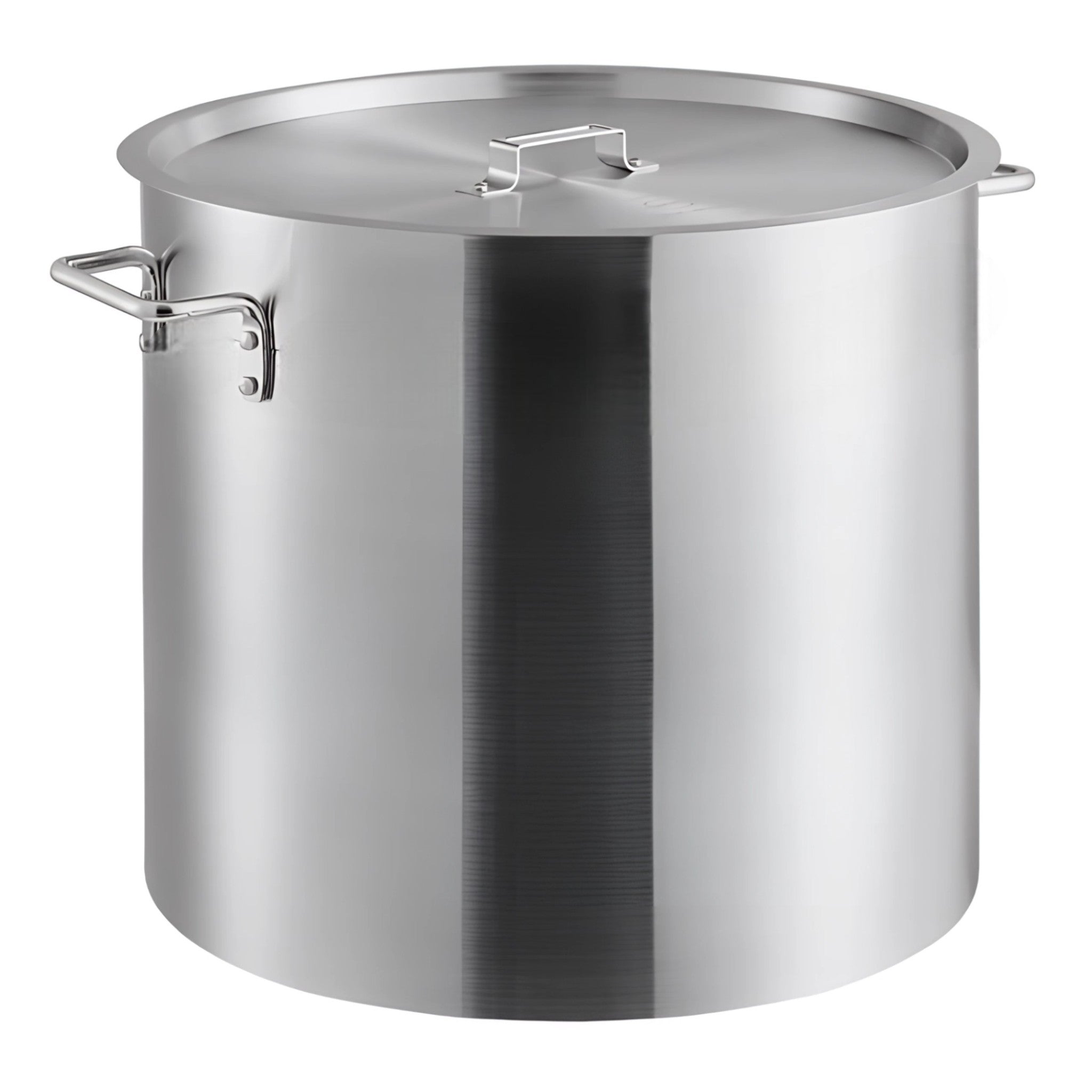 Una olla de aluminio de altísima capacidad, pensada para producción alimentaria a gran escala. Su construcción robusta la convierte en una herramienta esencial para cocinas industriales, comedores o eventos masivos.