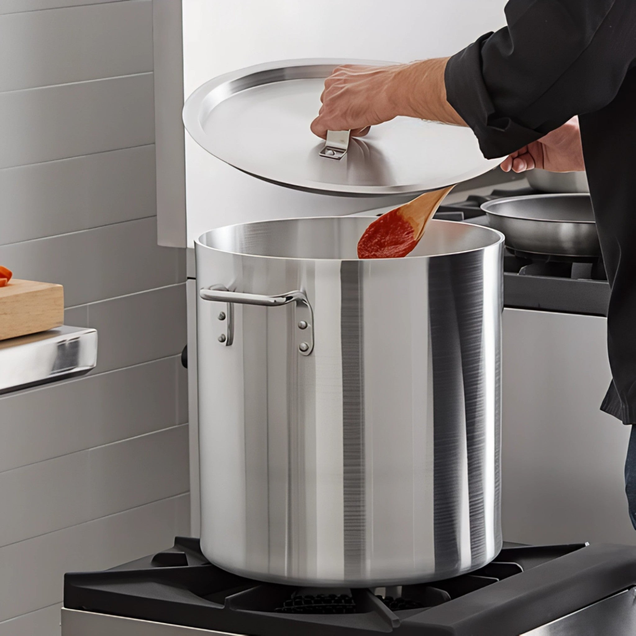 Una olla de aluminio de máxima capacidad, ideal para preparaciones a gran escala con excelente rendimiento térmico. Perfecta para cocinas industriales, eventos o negocios que requieren volumen y eficiencia.