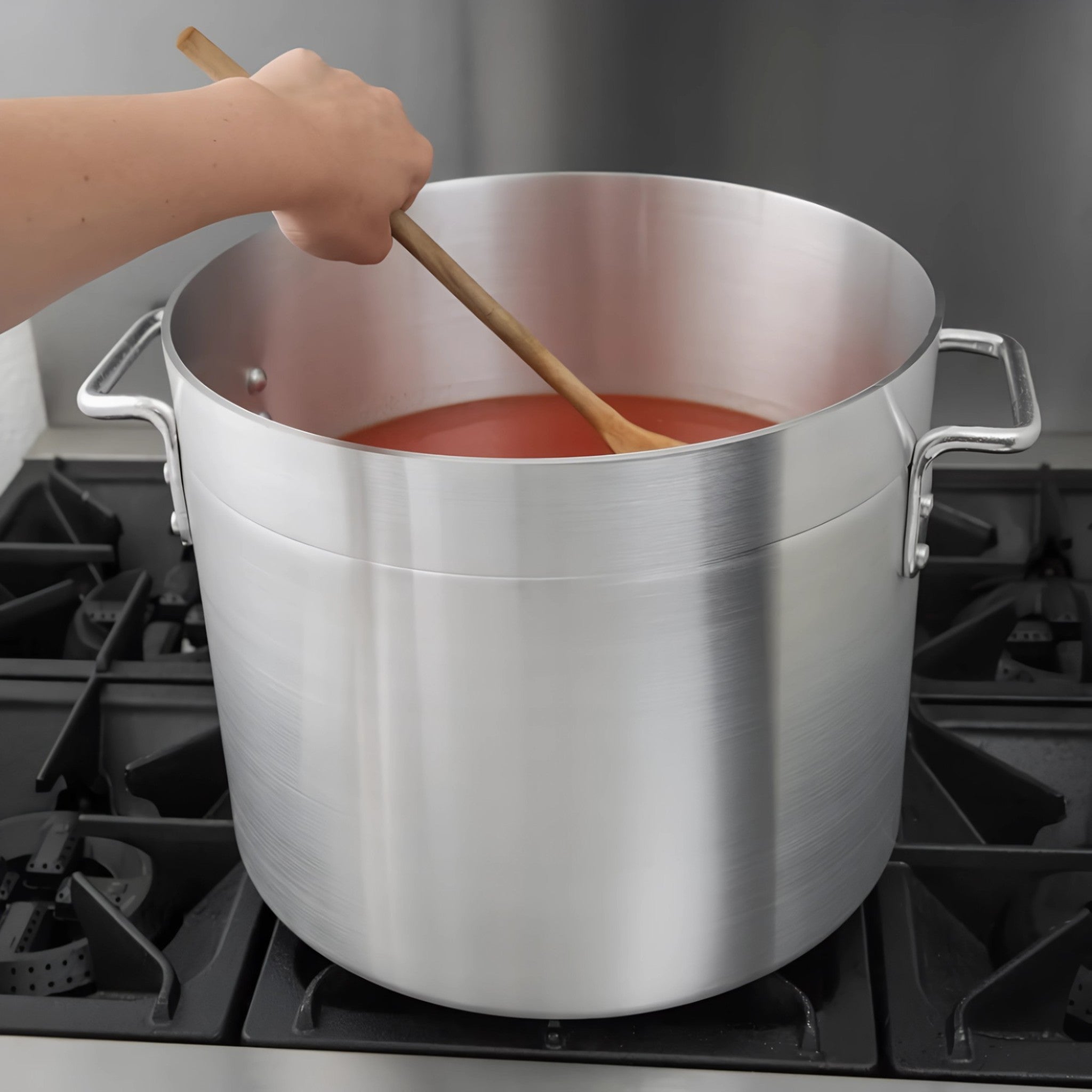 Una olla de aluminio de gran volumen pensada para cocinar grandes cantidades con excelente rendimiento térmico. Ideal para cocinas profesionales, eventos masivos o producción de alimentos en escala.