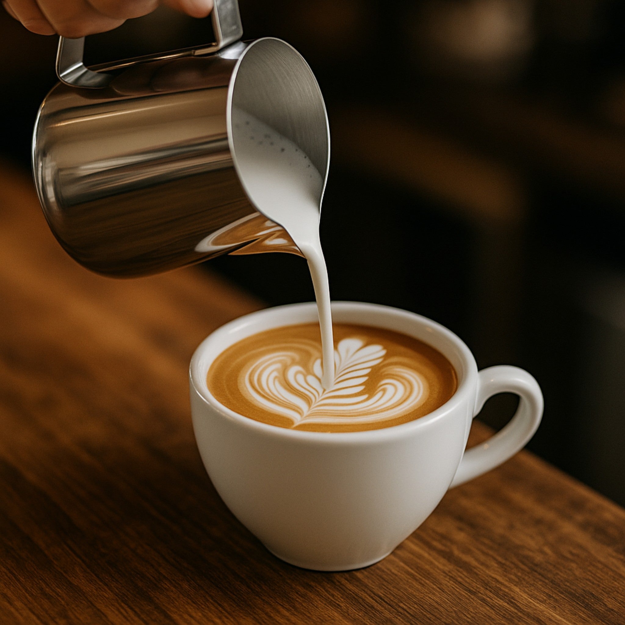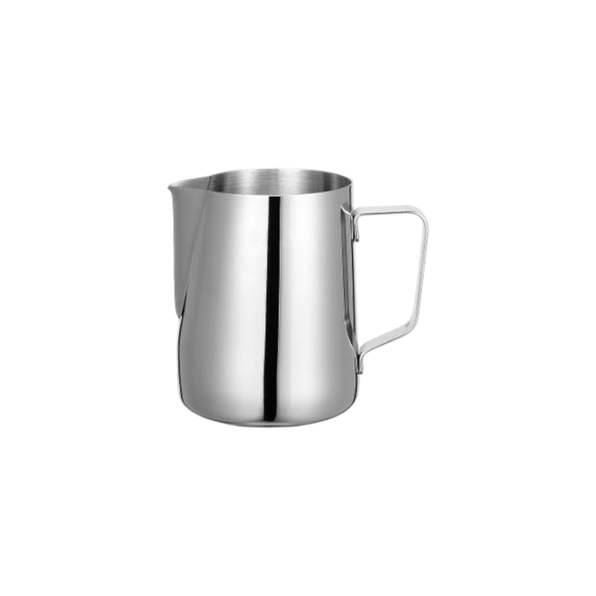Lechera de acero inoxidable de 12 oz diseñada para uso profesional en cafeterías, restaurantes y hoteles. Su estructura resistente y acabado pulido permiten un vertido preciso, ideal para servicio de leche, crema o salsas calientes en mesa.