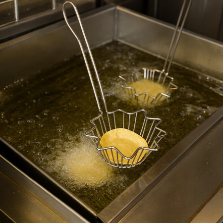 Diseño funcional: Su estructura de acero con mango largo facilita la inmersión en aceite caliente sin riesgo.