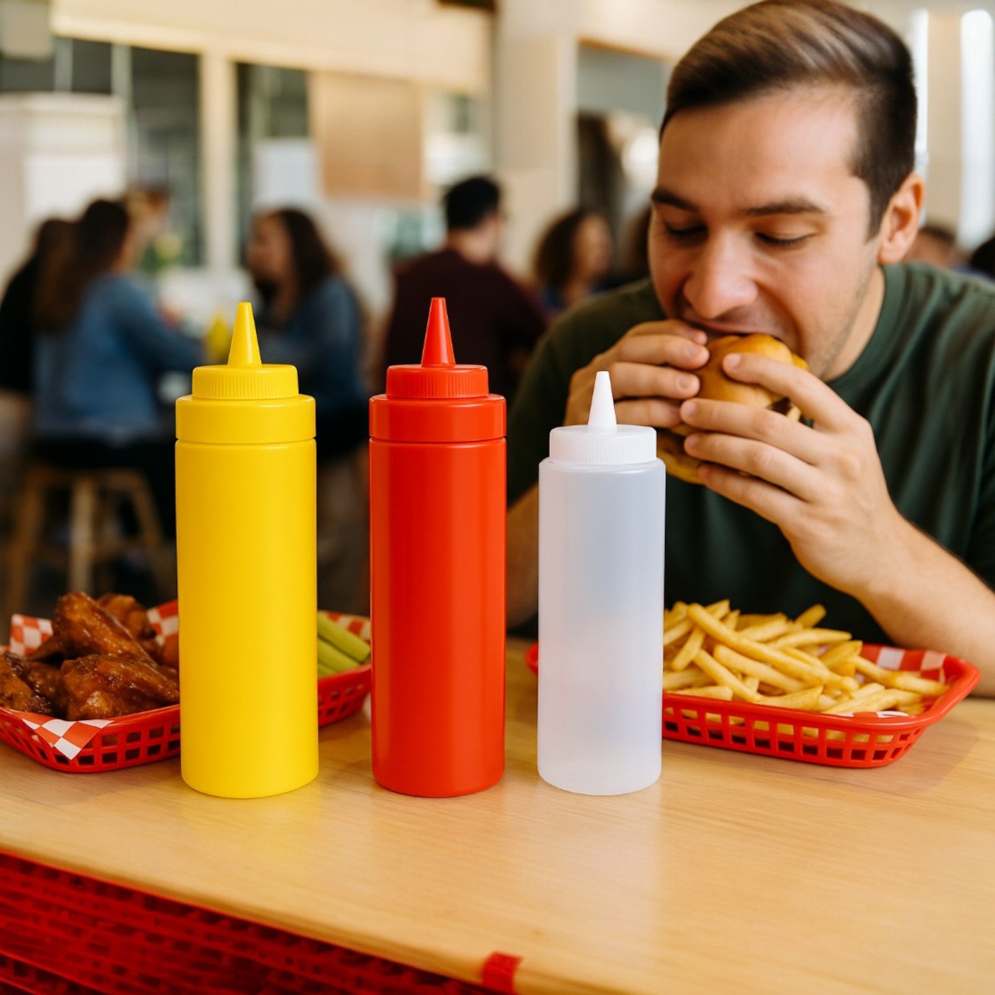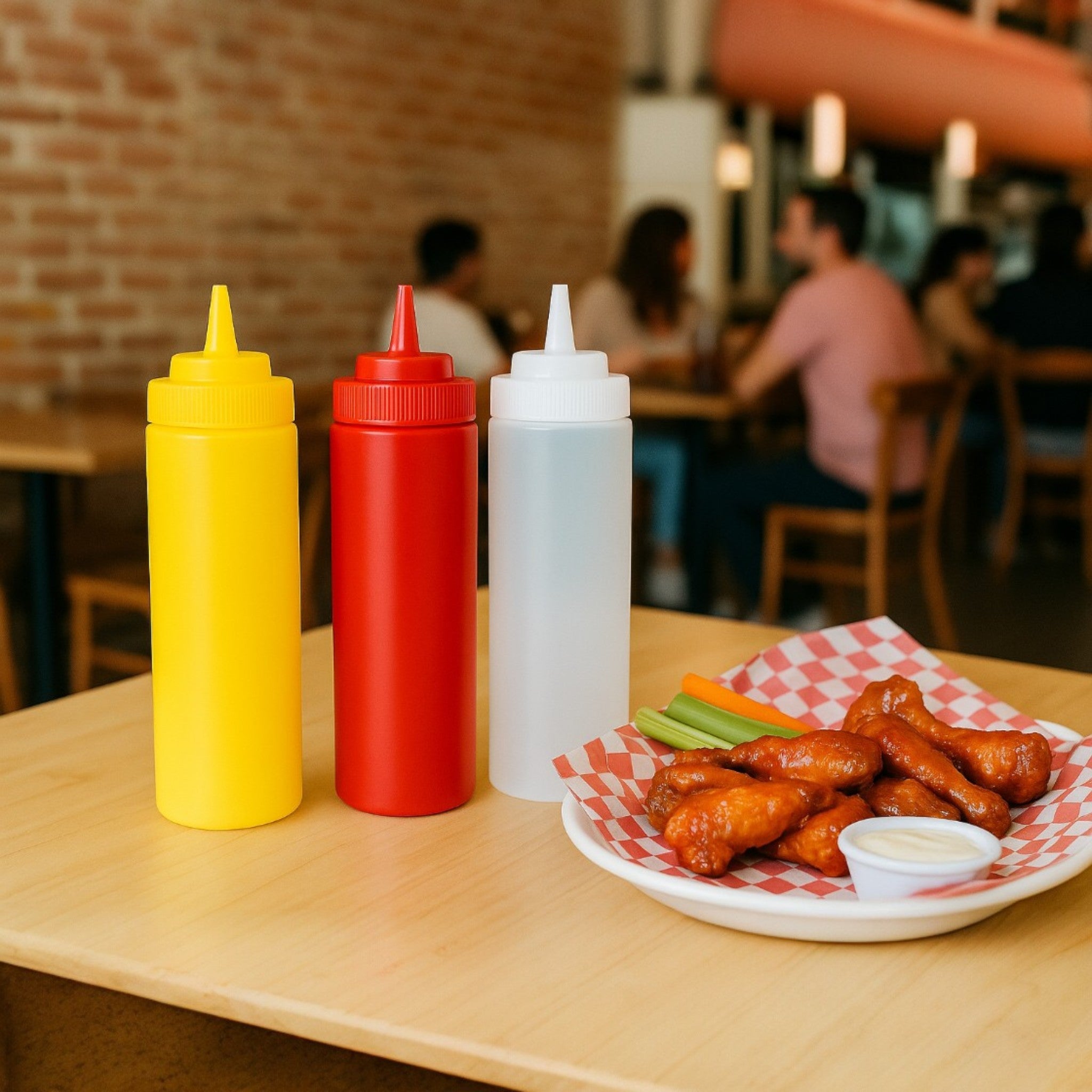 Dispensador profesional de 24 oz ideal para servir aderezos, salsas o condimentos en cocina o barra. Su capacidad generosa y diseño práctico lo hacen perfecto para negocios con alto volumen de servicio.