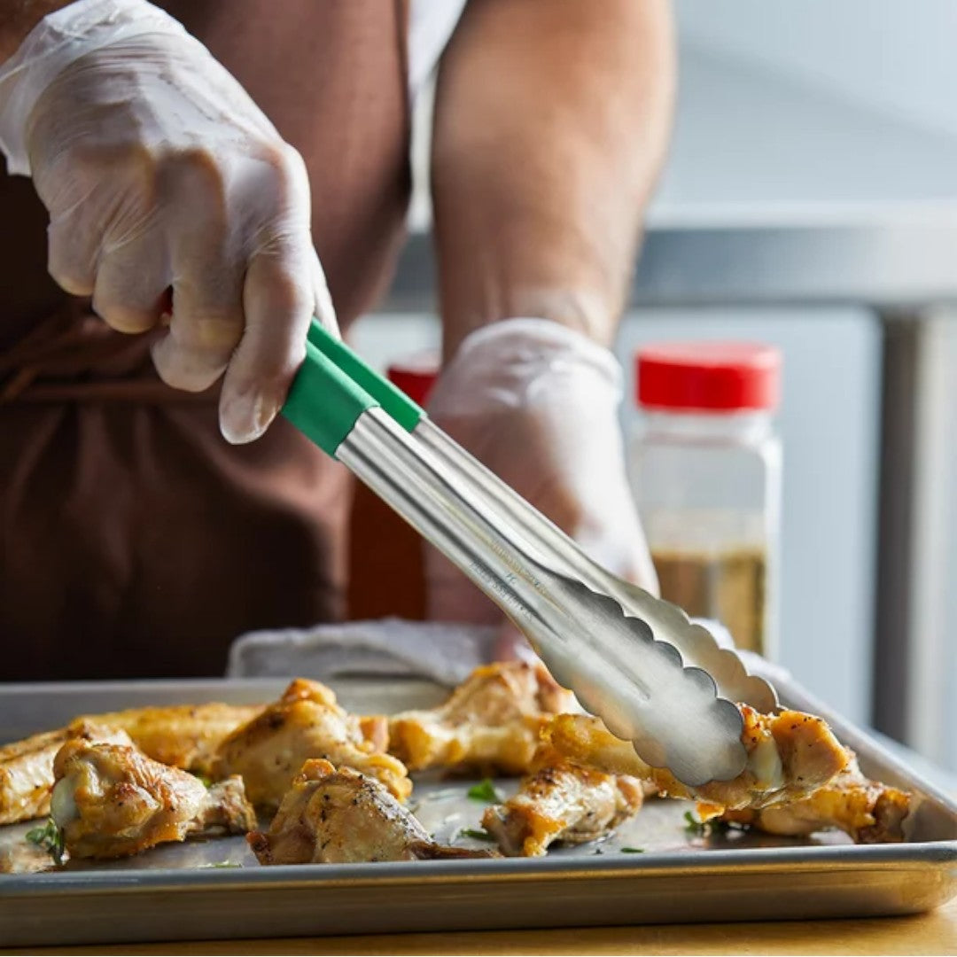 Ya sea para dar vuelta a carnes en la parrilla, servir ensaladas frescas o manipular alimentos calientes, esta pinza es tu compañera perfecta para mantener la higiene y la seguridad en la cocina.