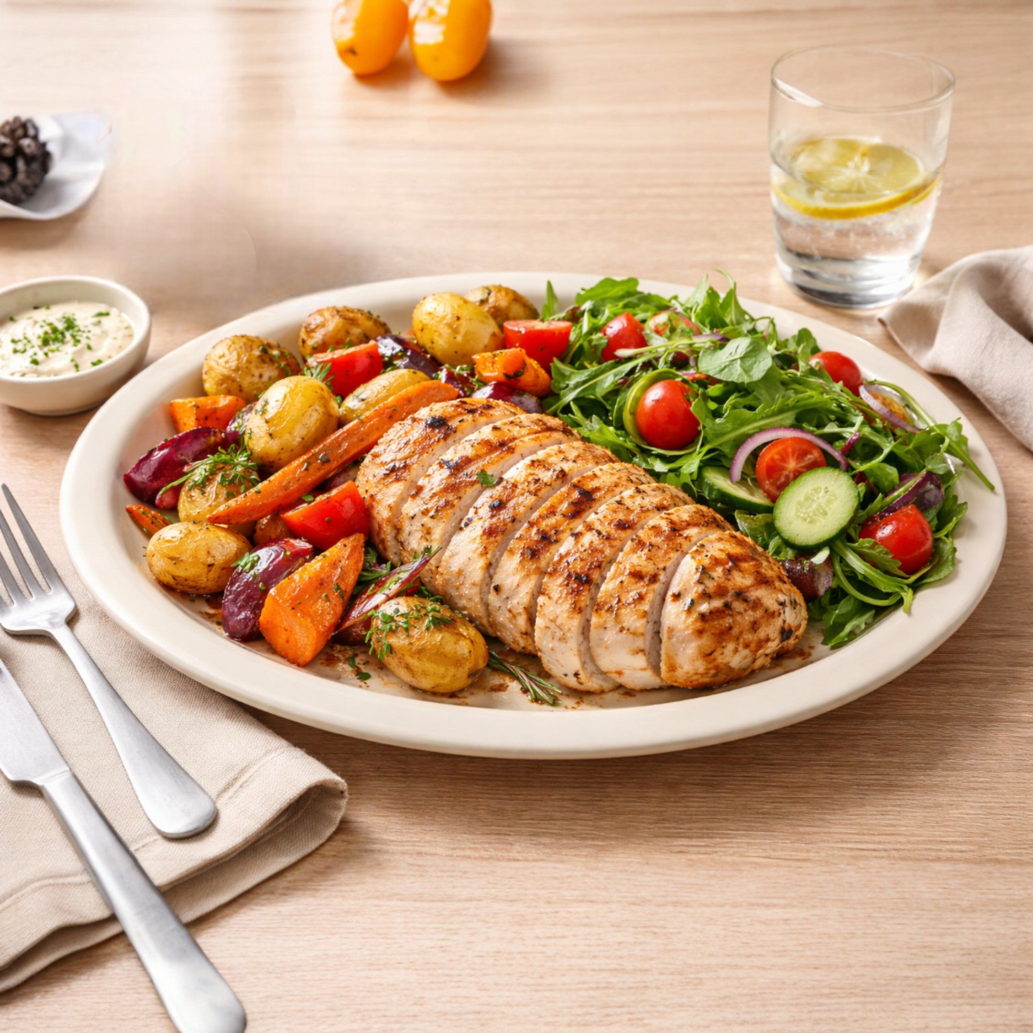 Plato ovalado de 29 cm en tono beige, ideal para presentaciones principales en servicio profesional. Su formato alargado permite emplatar carnes, pescados u especialidades con una estética limpia y ordenada, manteniendo un estilo sobrio y contemporáneo en mesa.