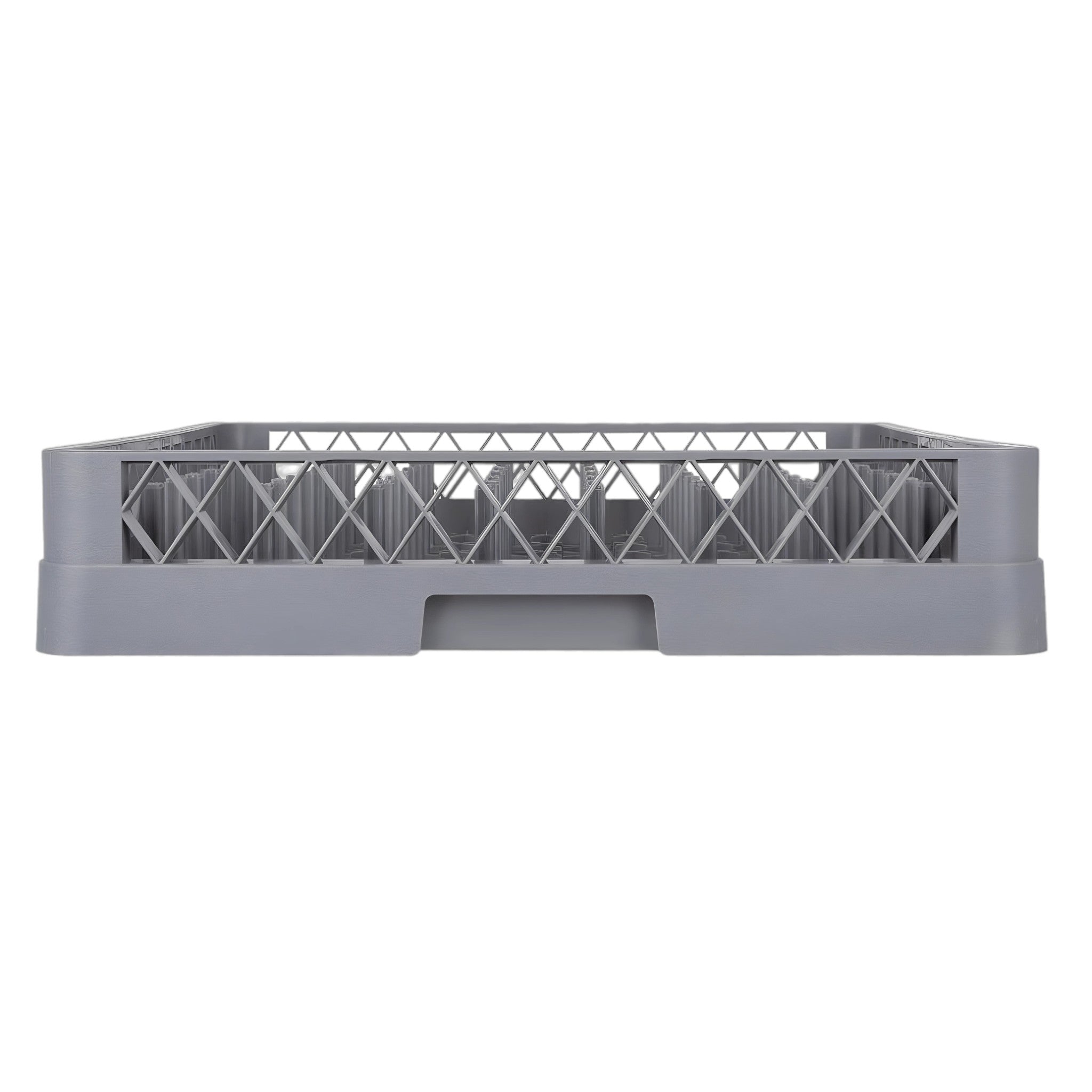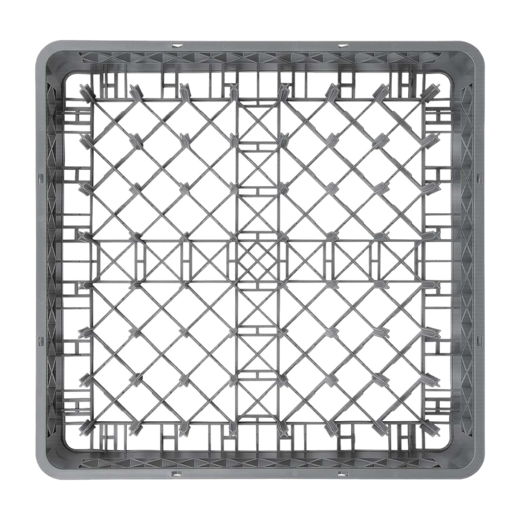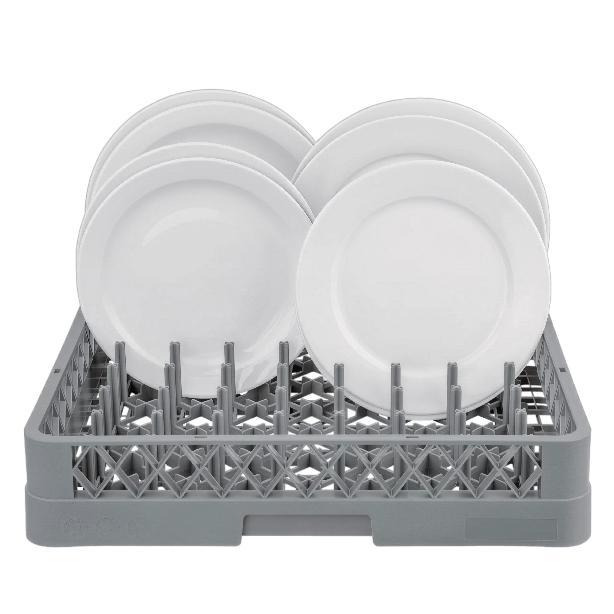 Rack organizador de platos con capacidad para 64 piezas, diseñado en medidas de 50 x 50 x 10 cm. Su estructura resistente facilita el lavado, almacenamiento y transporte en entornos profesionales de cocina.