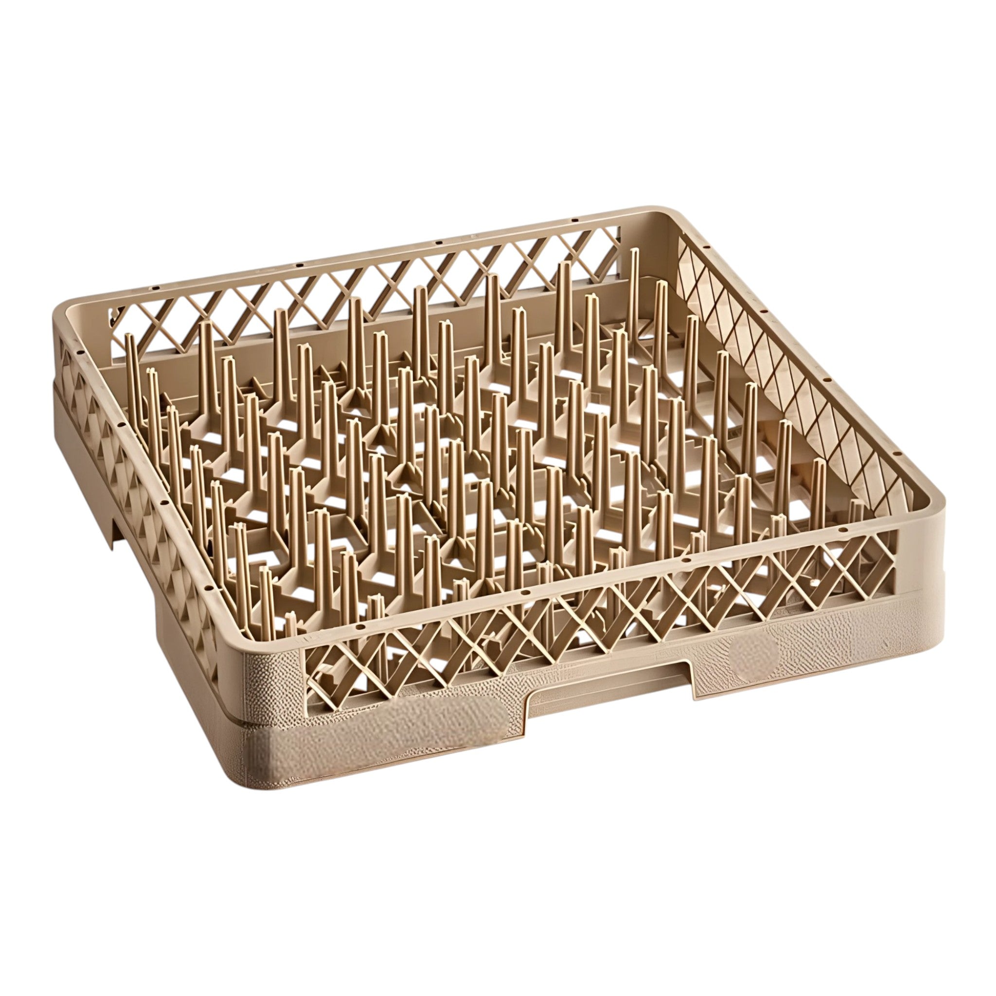 Mantén tus platos seguros y organizados con este resistente rack de 64 compartimentos. Diseñado para uso intensivo en cocinas profesionales, garantiza una limpieza eficiente y transporte sin riesgos. Su estructura facilita el drenado y secado rápido.