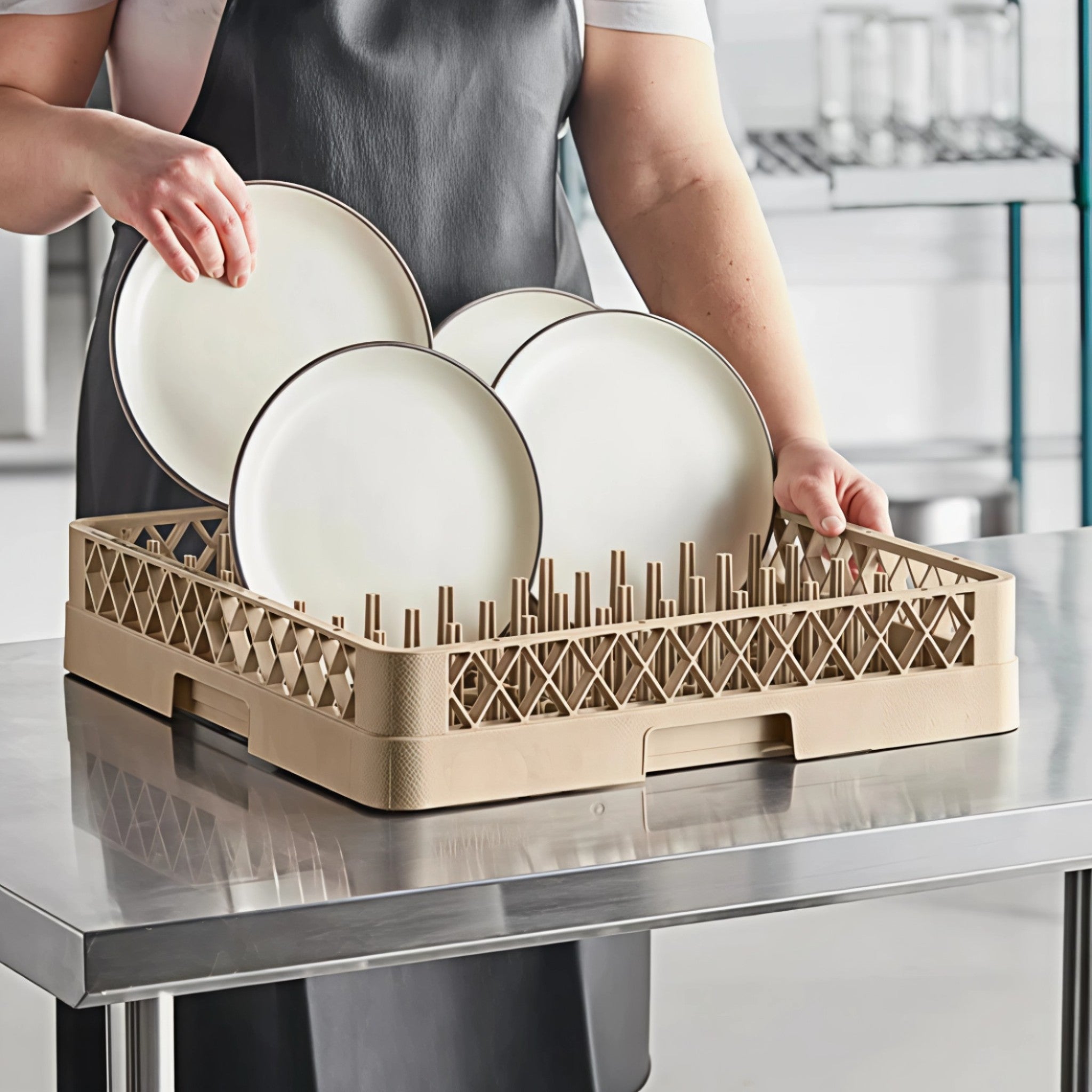 Ideal para cocinas industriales: Compatible con lavavajillas comerciales y apilable para maximizar espacio en operación.