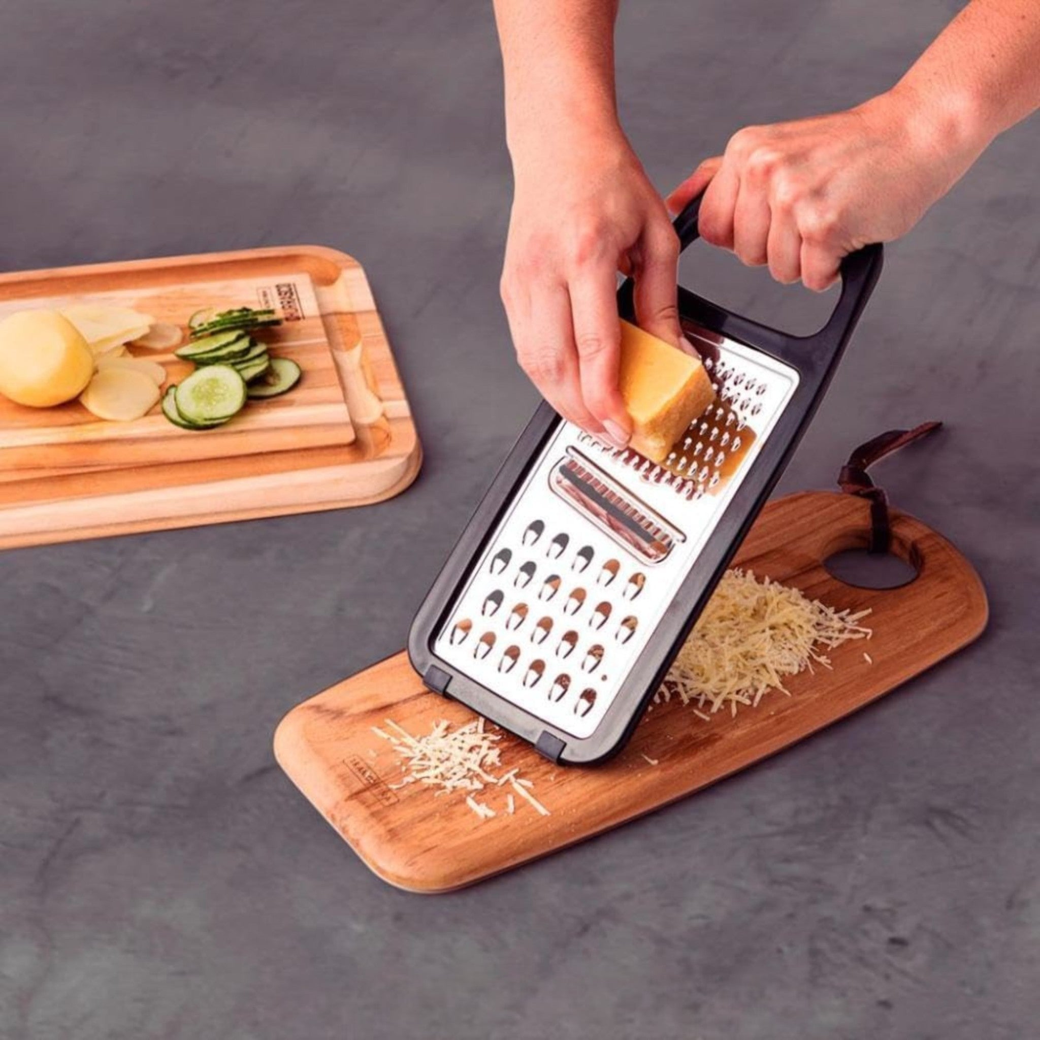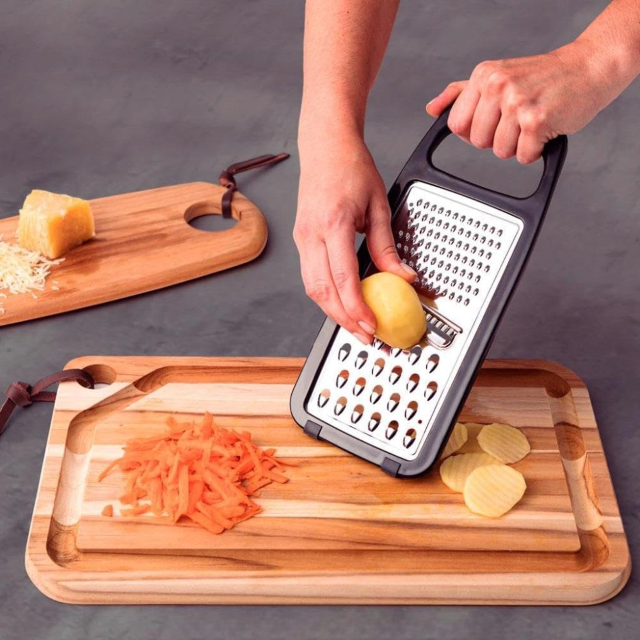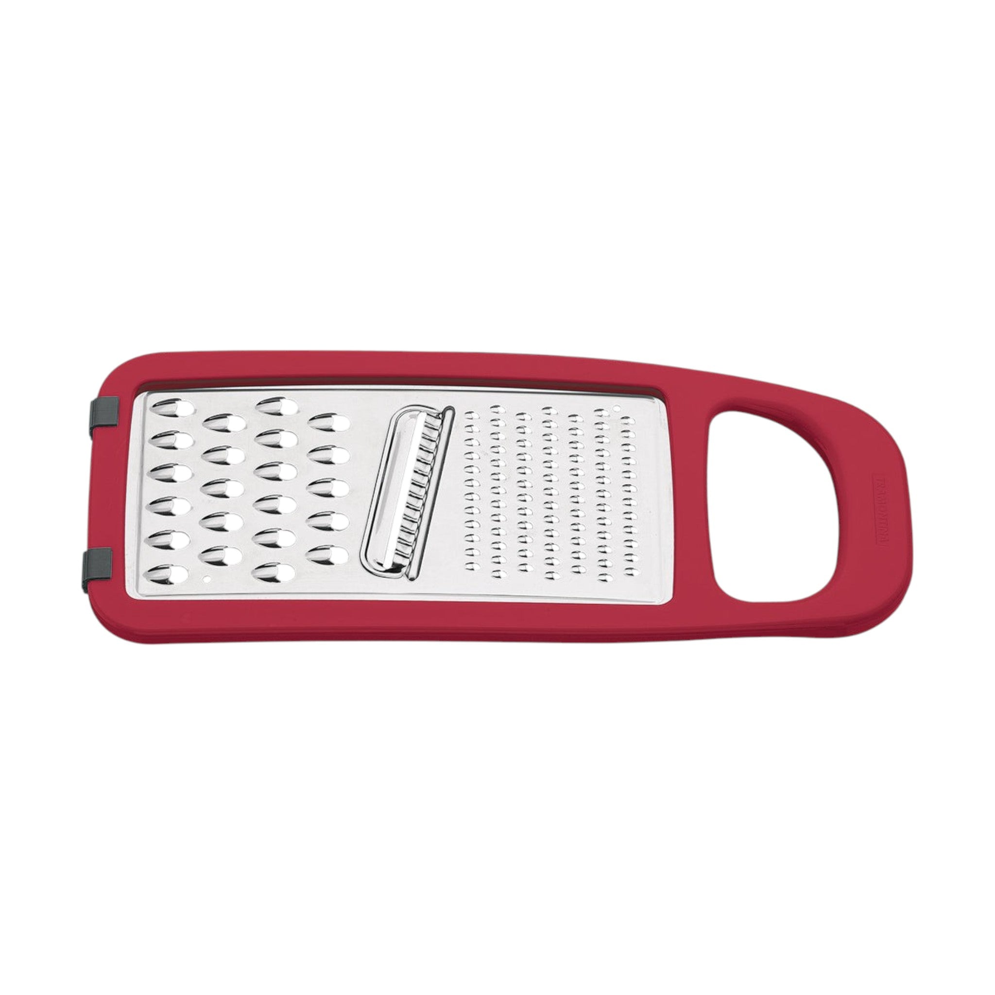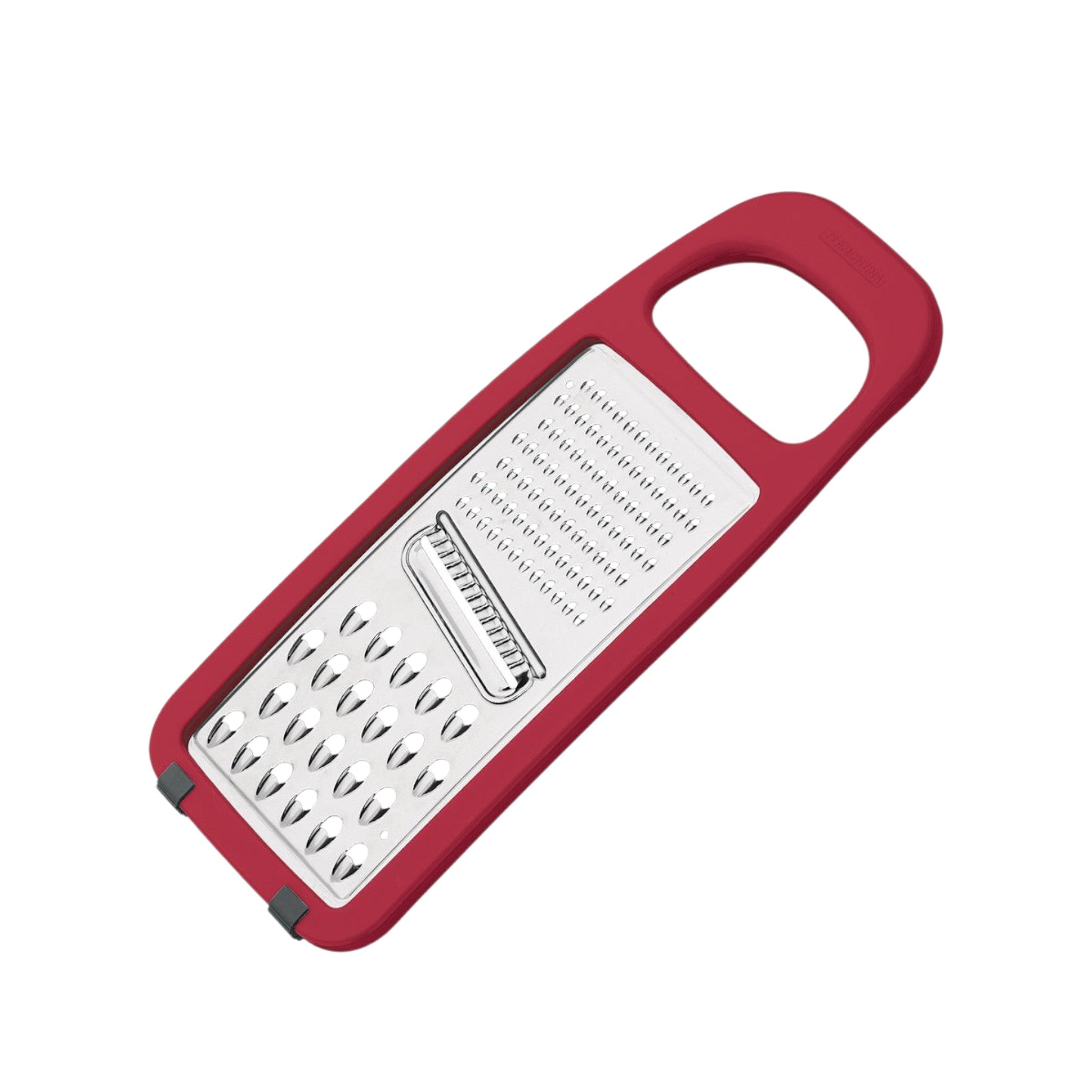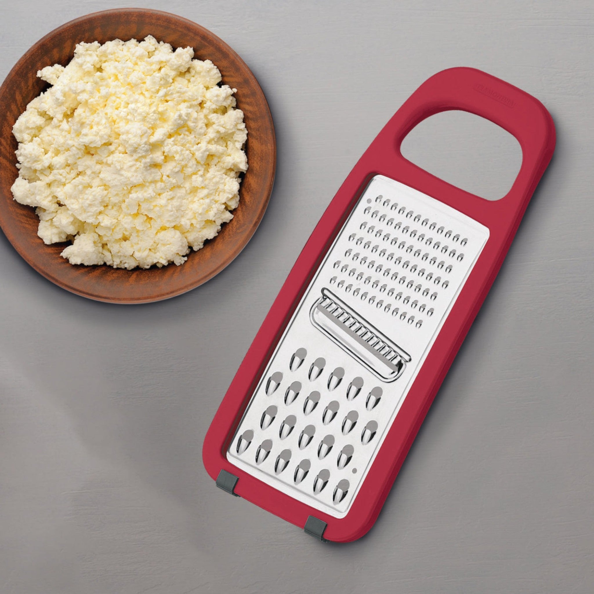 El rallador Utilita de la marca Tramontina combina funcionalidad, estilo y resistencia en una sola herramienta. Disponible en colores rojo y negro, está diseñado para facilitar tus tareas en la cocina diaria con eficiencia y seguridad.