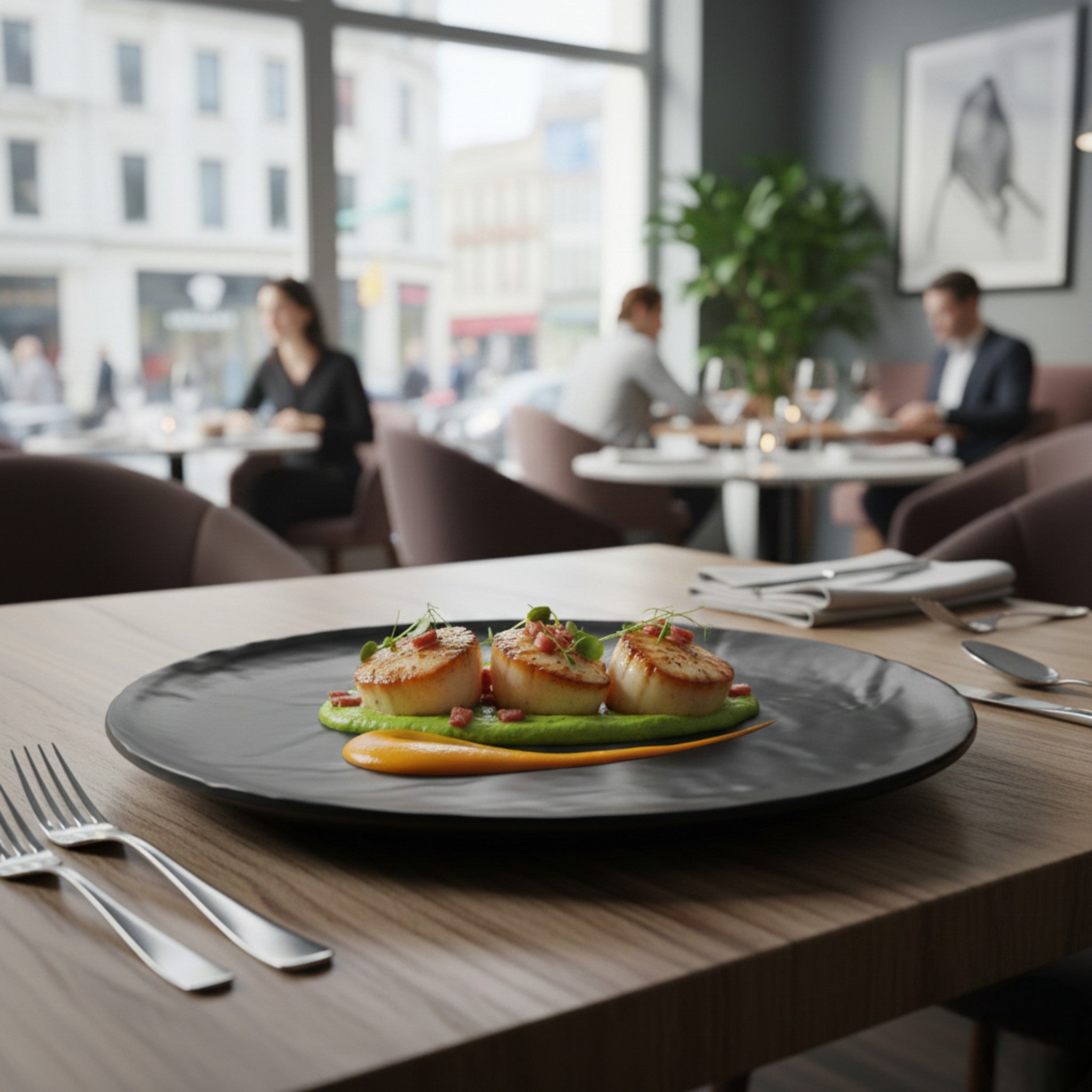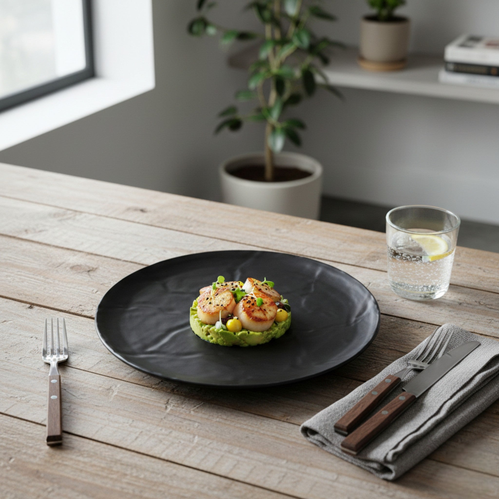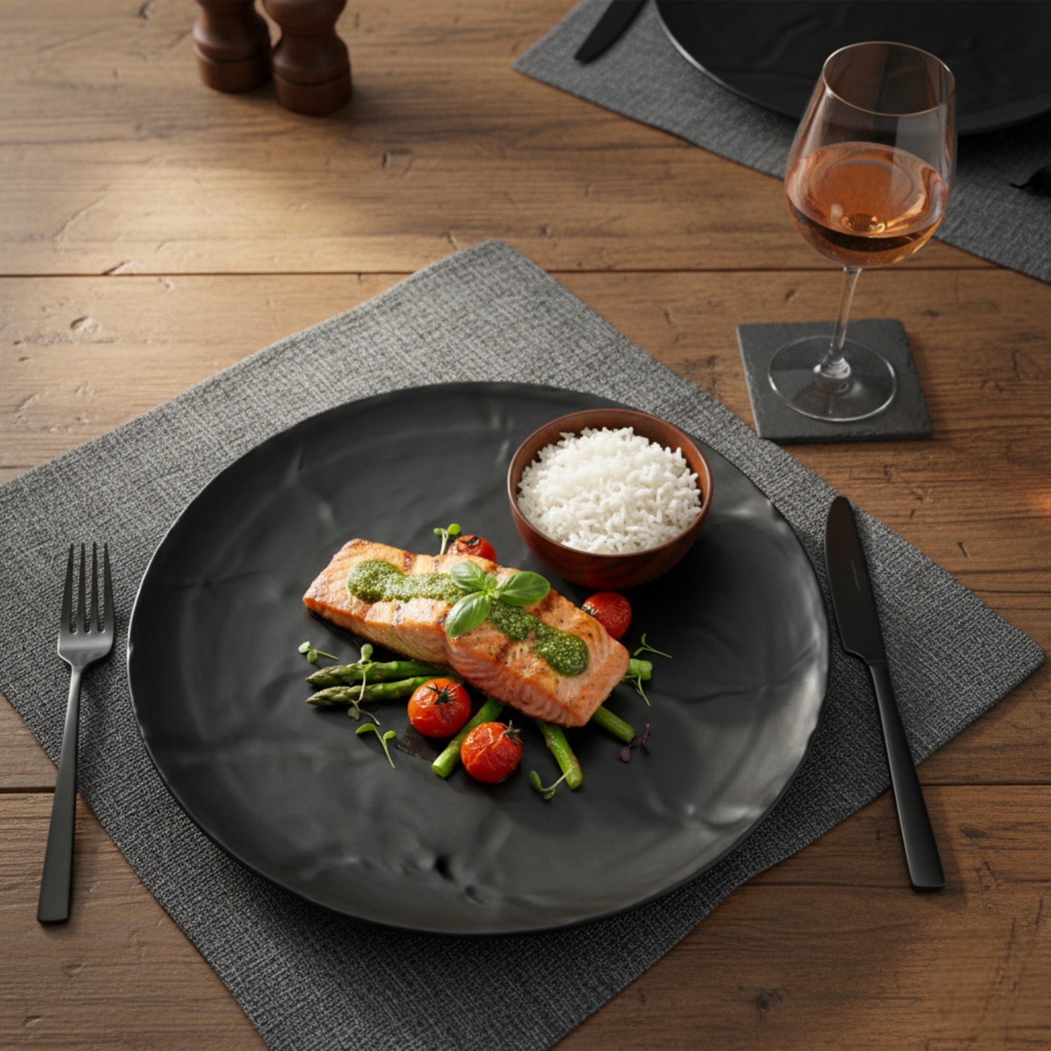 Diseño profesional: Acabado negro mate que realza la presentación de los platillos y aporta una imagen moderna a la mesa.