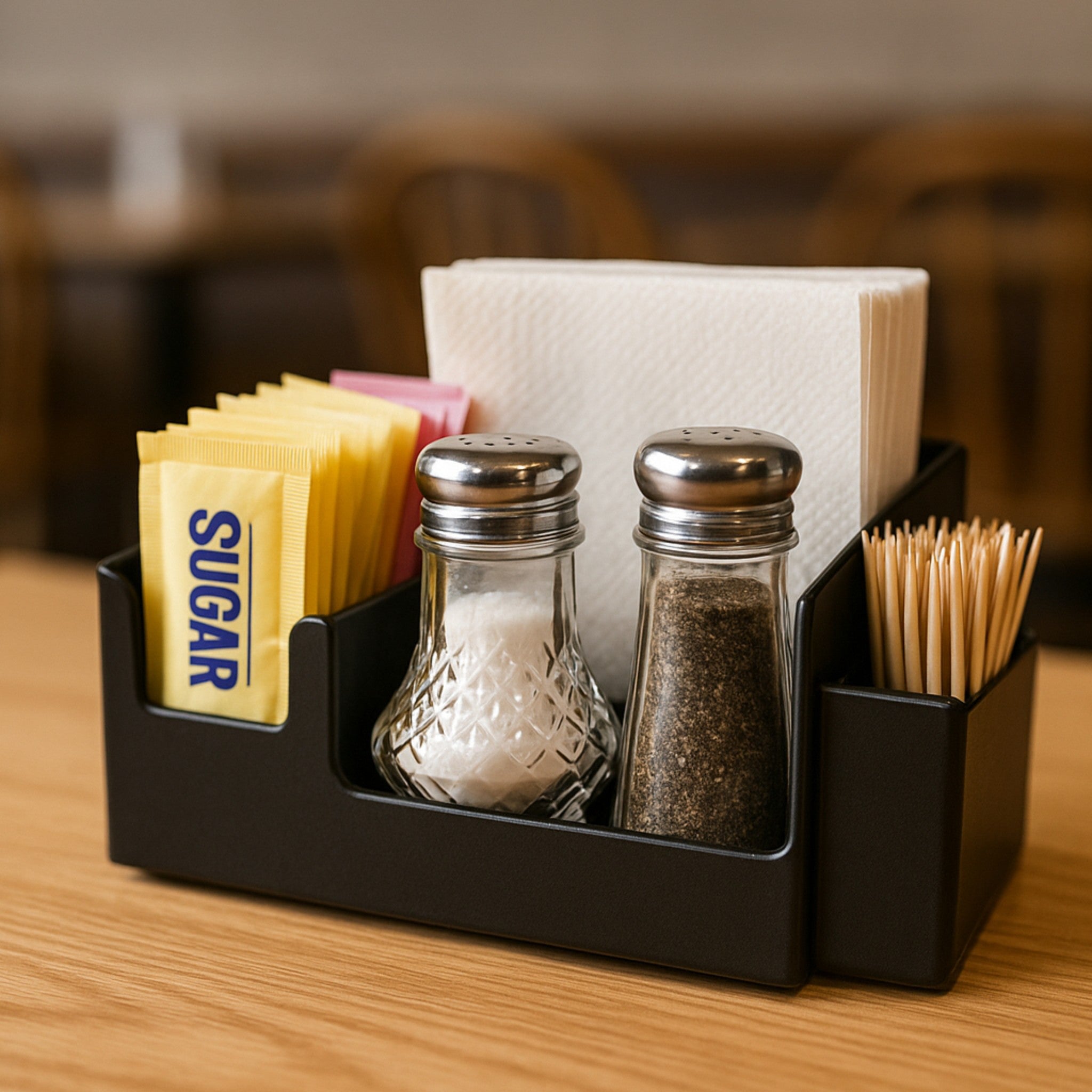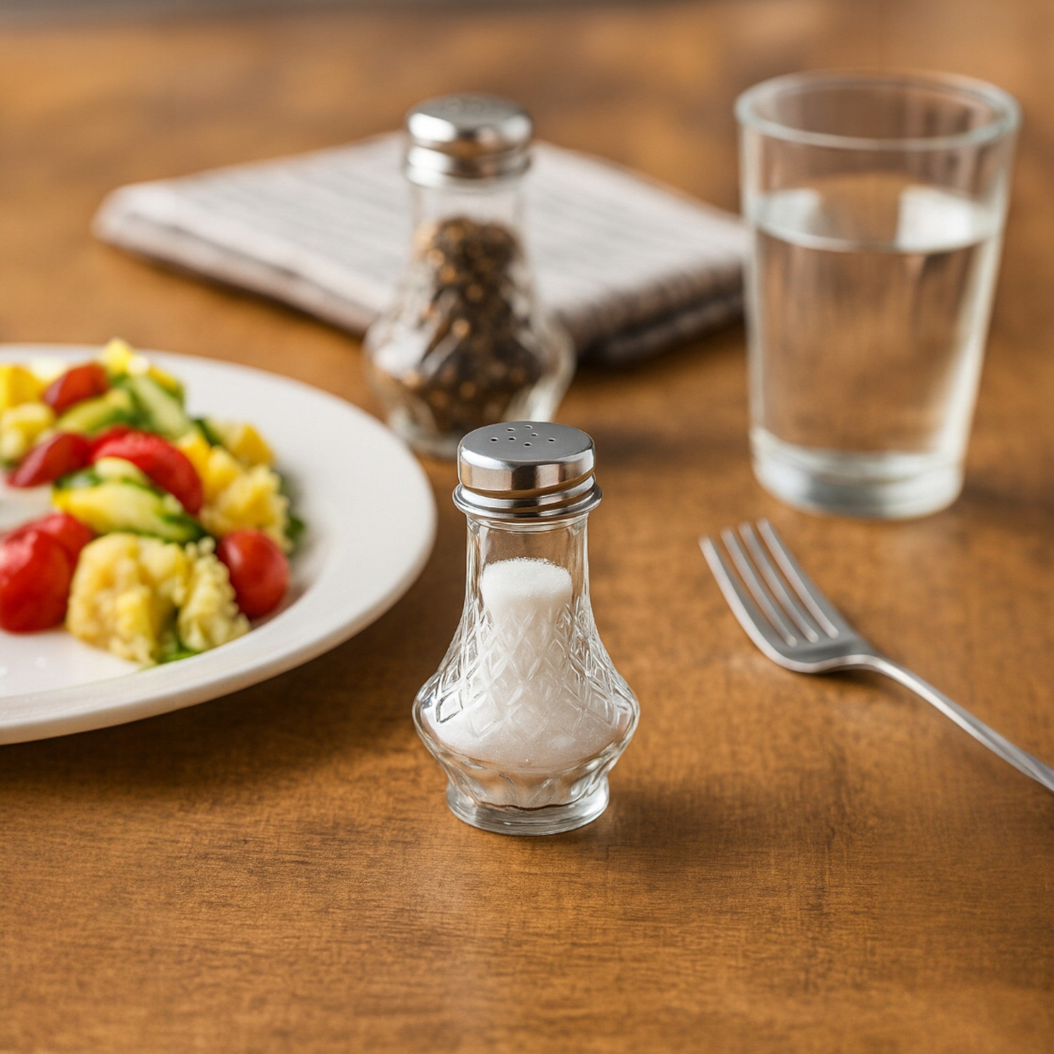 Salero de vidrio Persa en diseño compacto y funcional, ideal para mesas de restaurantes, cafeterías y servicios de comida rápida. Su cuerpo de vidrio transparente permite visualizar el contenido con claridad y aporta una presentación limpia y profesional. Fabricado para uso intensivo y fácil integración en rutinas operativas diarias.