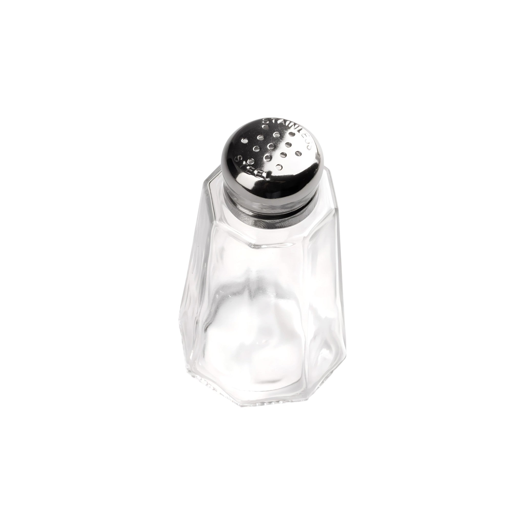 Este salero de vidrio con tapa plana de color rojo combina diseño clásico y funcionalidad. Su tamaño compacto de 2 oz lo hace ideal para el hogar, negocios de comida o como parte de un set de condimentos.